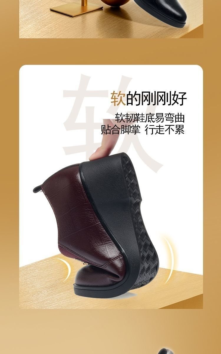 소프트 가죽 여성 싱글 레이어 신발 미끄럼 방지 소프트 솔 봄 및 가을 새로운 도착 웨지 여성 신발 중년 엄마를위한 세련된 가죽 신발스토어 가기