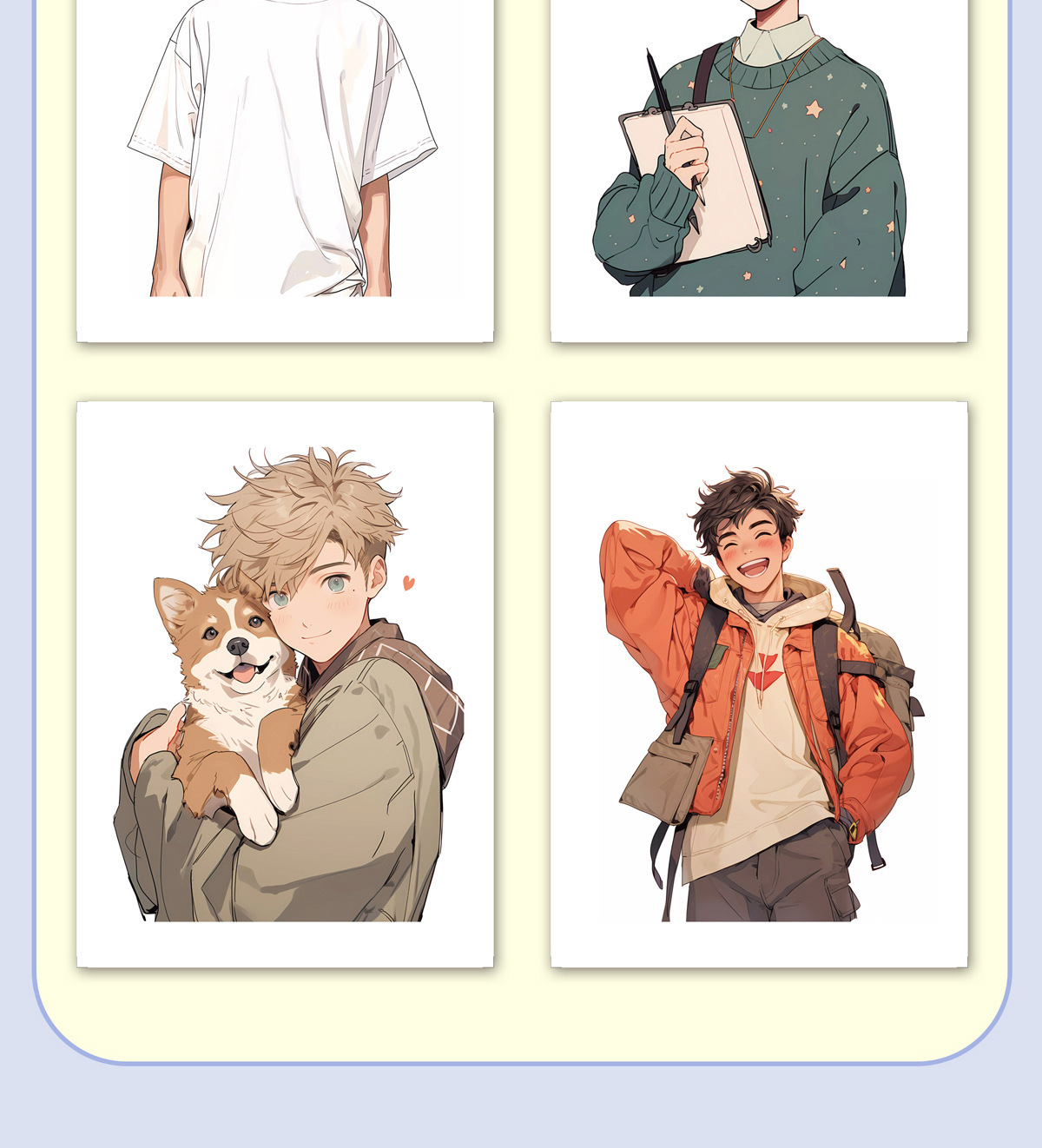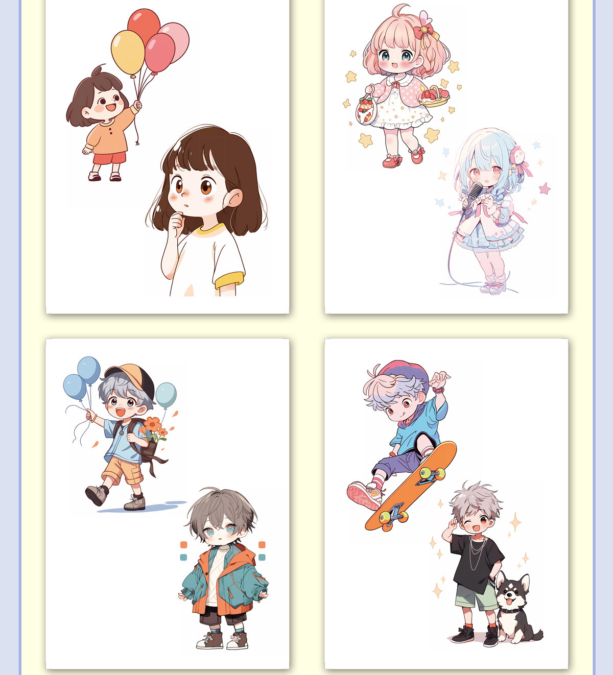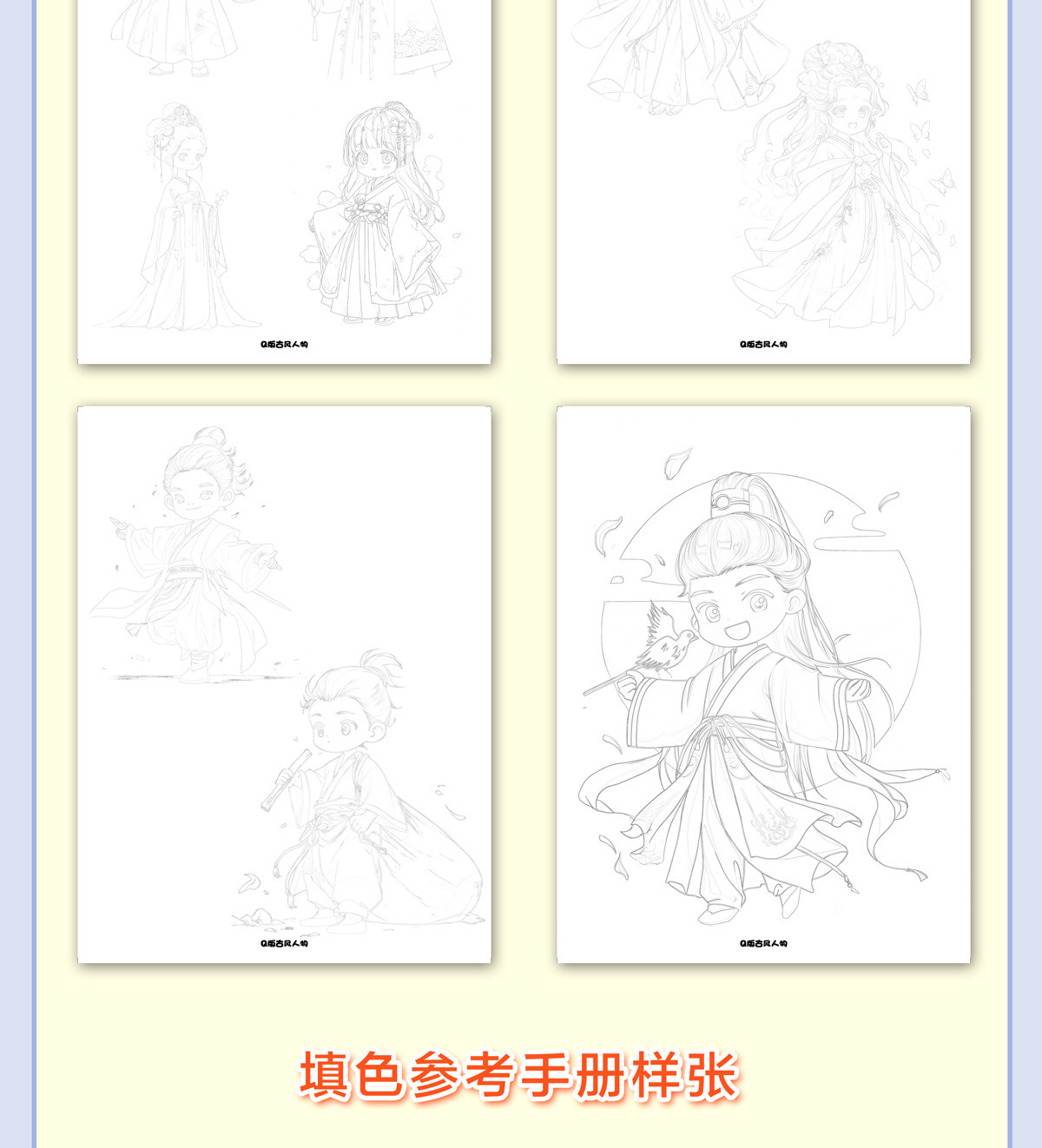 • [단권] 고대풍 캐릭터의 Q버전에는 컬러링 참고 매뉴얼이 함께 제공됩니다.
