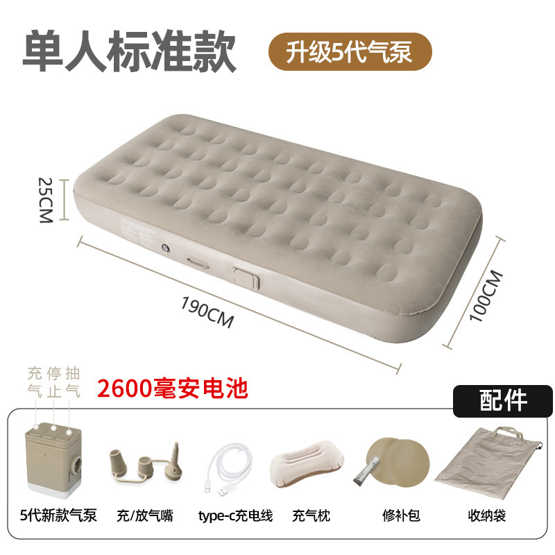 • 싱글 [표준모델] 190*100*25cm + 업그레이드된 5세대 전동펌프
