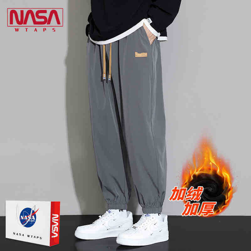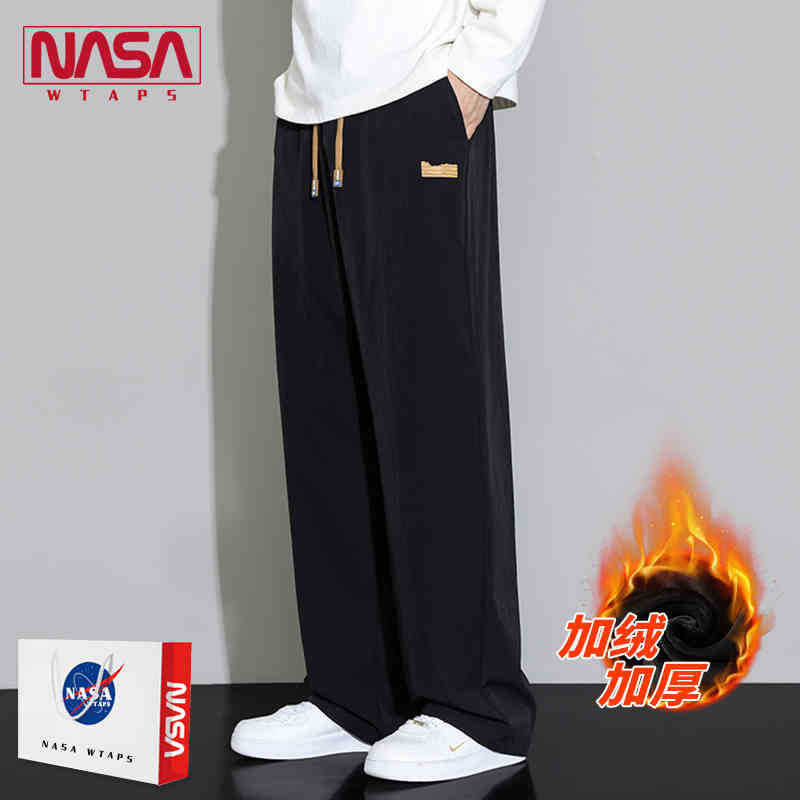 NASA 캐주얼 바지 남자의 가을과 겨울 유행 기모 두꺼운 새로운 스타일 캐주얼 따뜻한 스트레이트 바지 유행 미국 스타일 올 매치스토어 가기