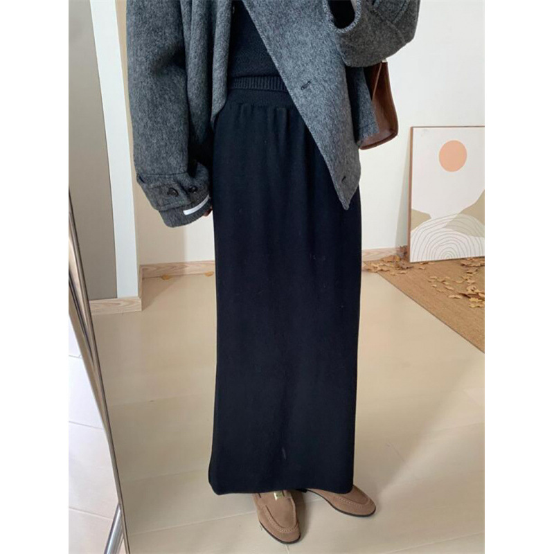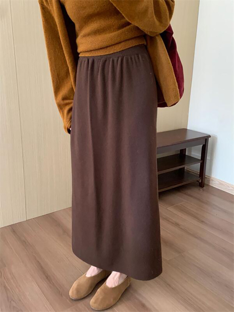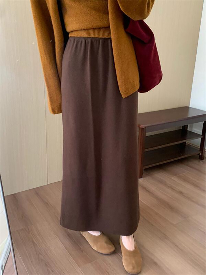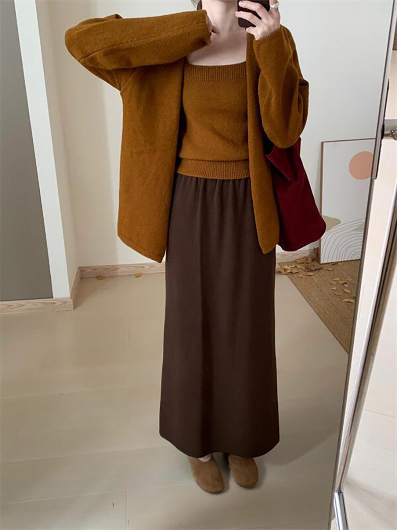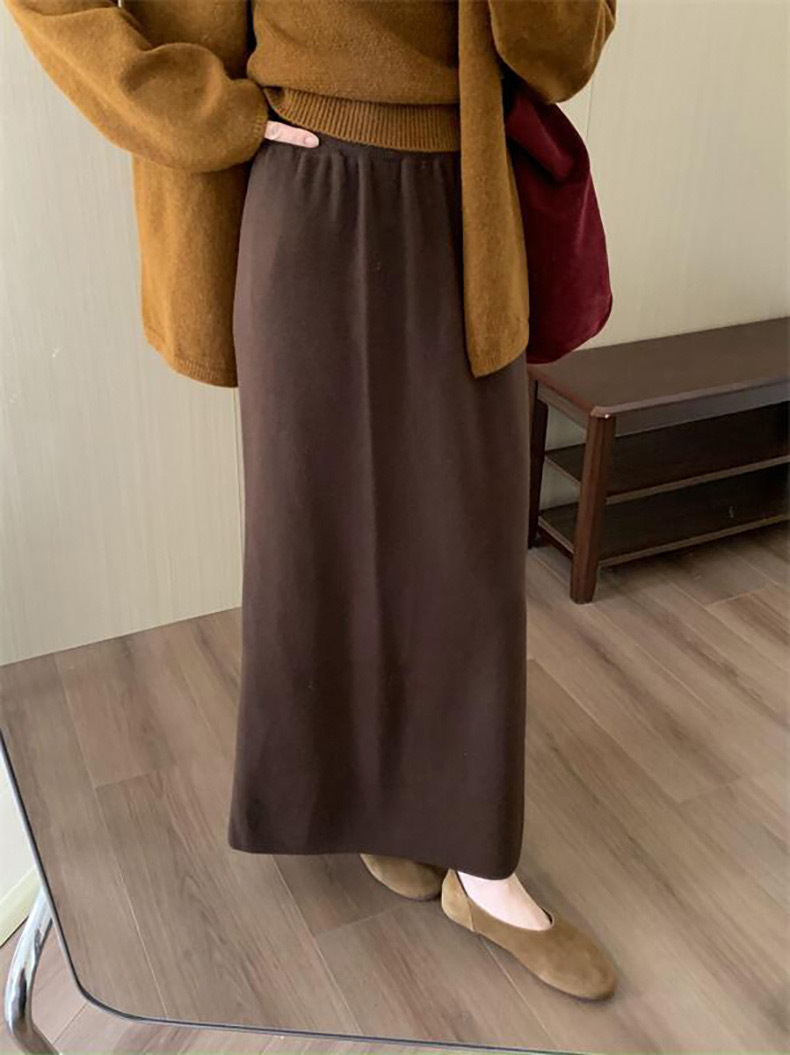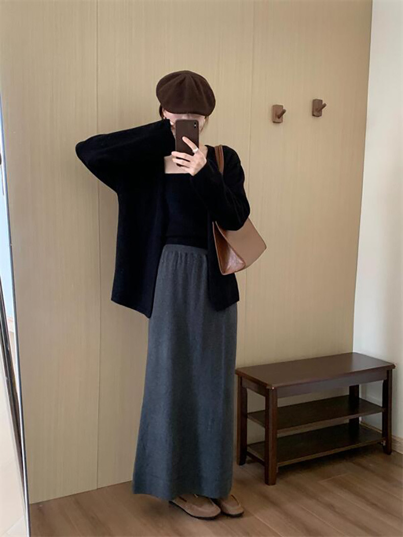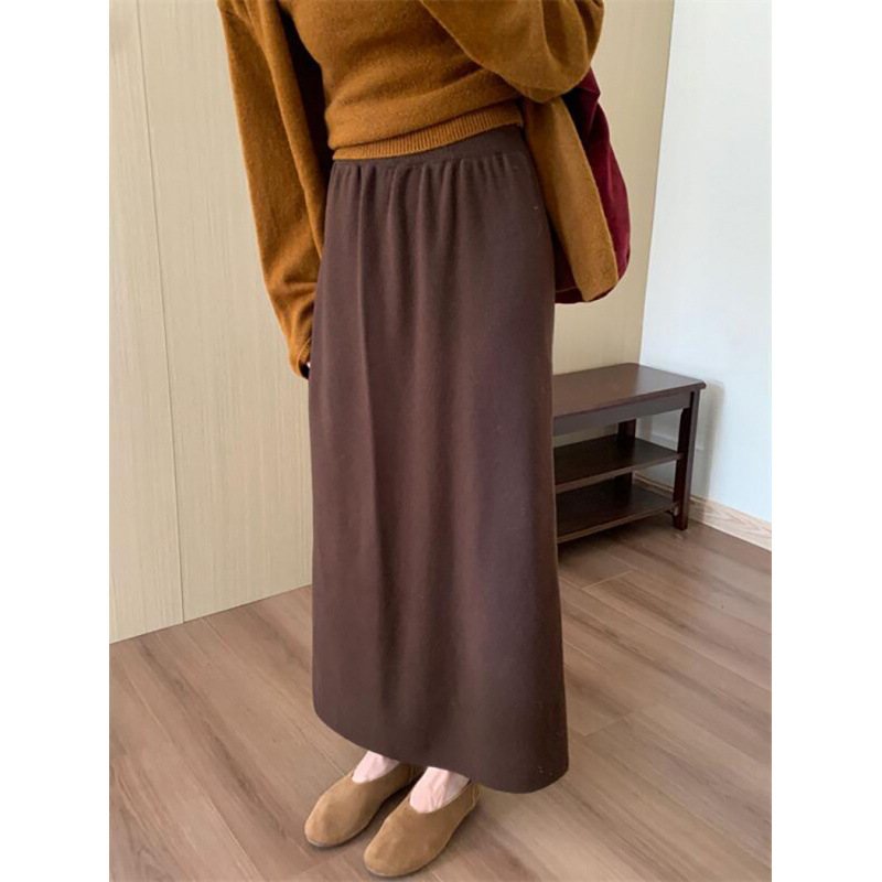 한국 스타일 간단한 캐주얼 높은 허리 니트 원피스 여성 2024 가을과 겨울 새로운 스타일 캐릭터 스트레이트 하프 길이 원피스 트렌디스토어 가기