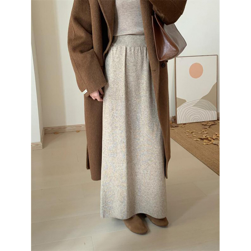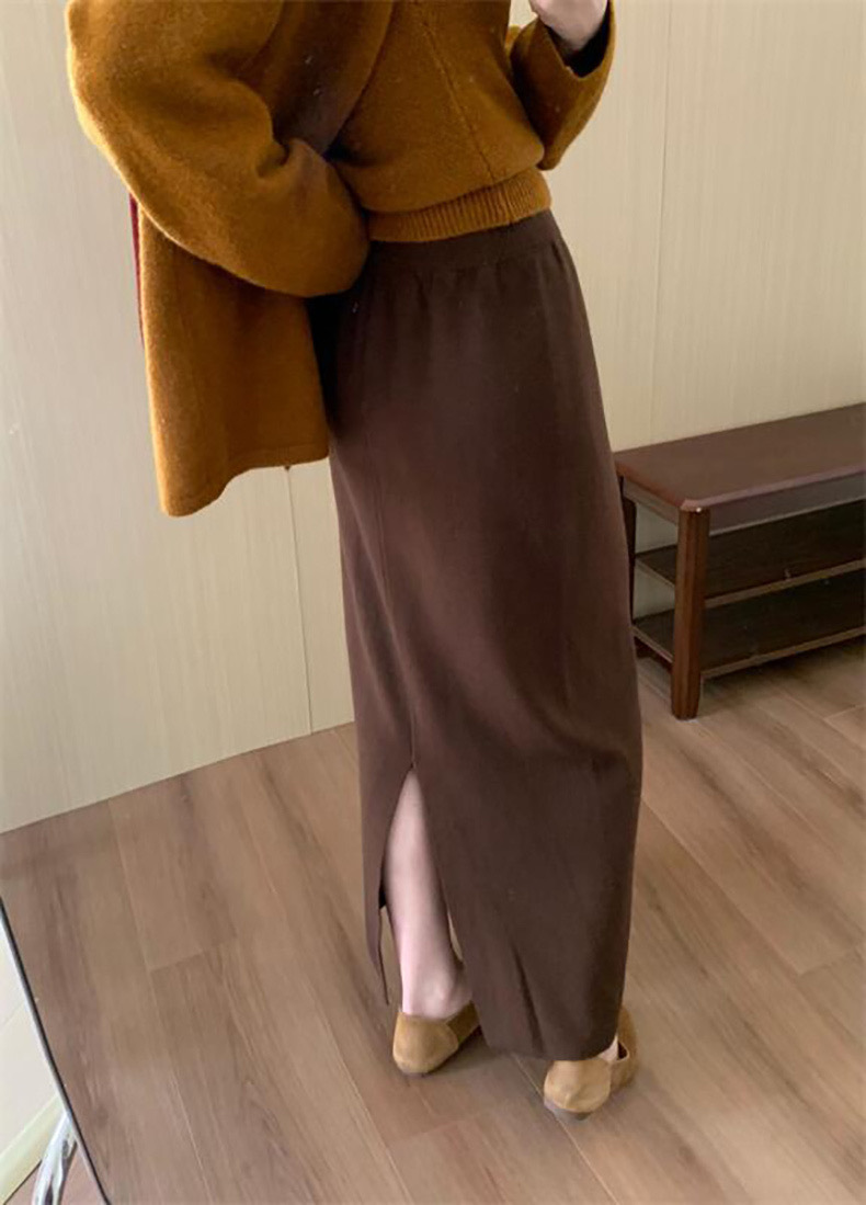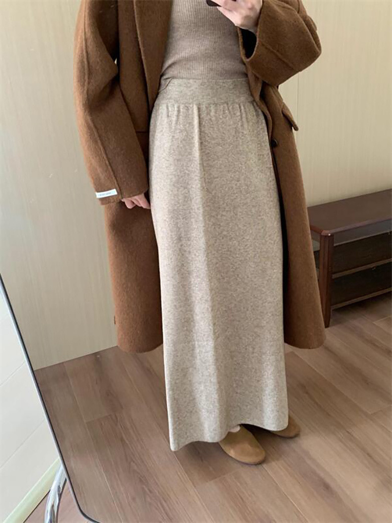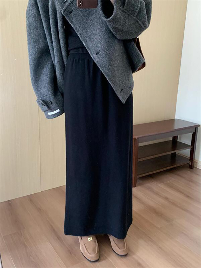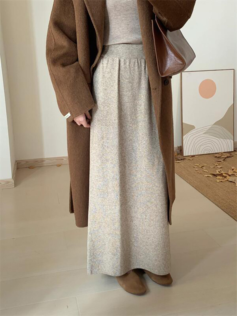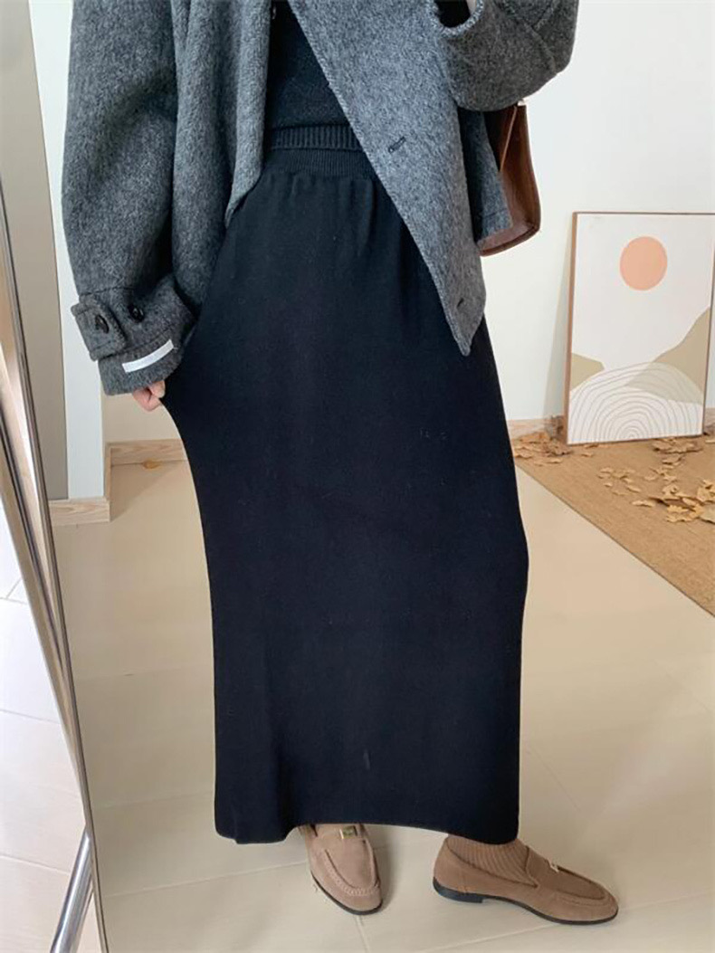 한국 스타일 간단한 캐주얼 높은 허리 니트 원피스 여성 2024 가을과 겨울 새로운 스타일 캐릭터 스트레이트 하프 길이 원피스 트렌디스토어 가기