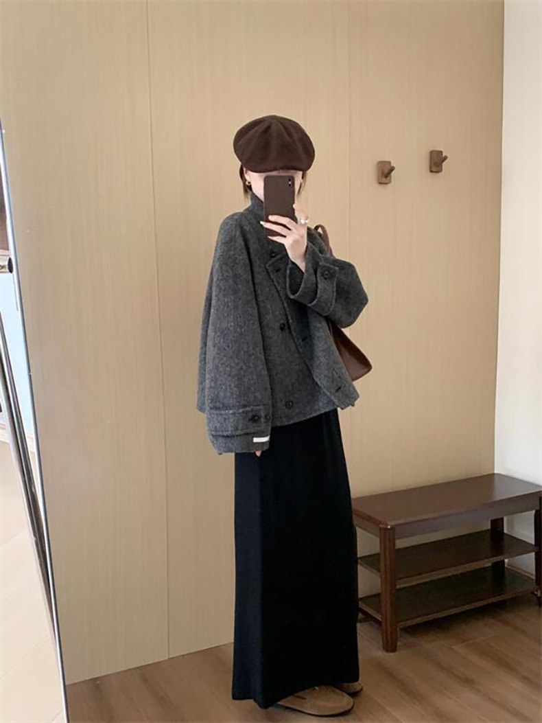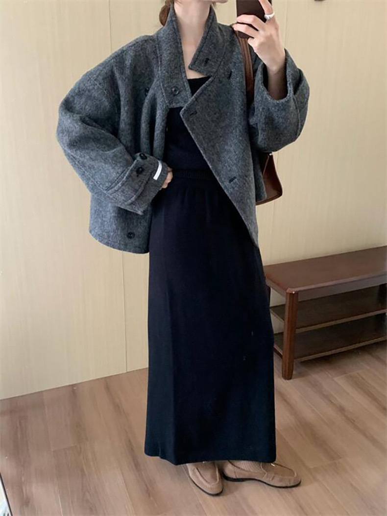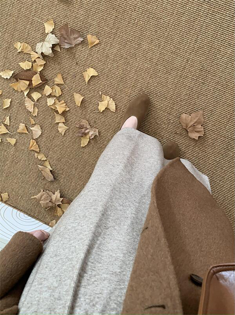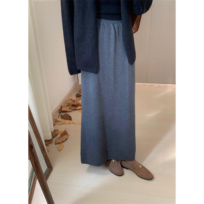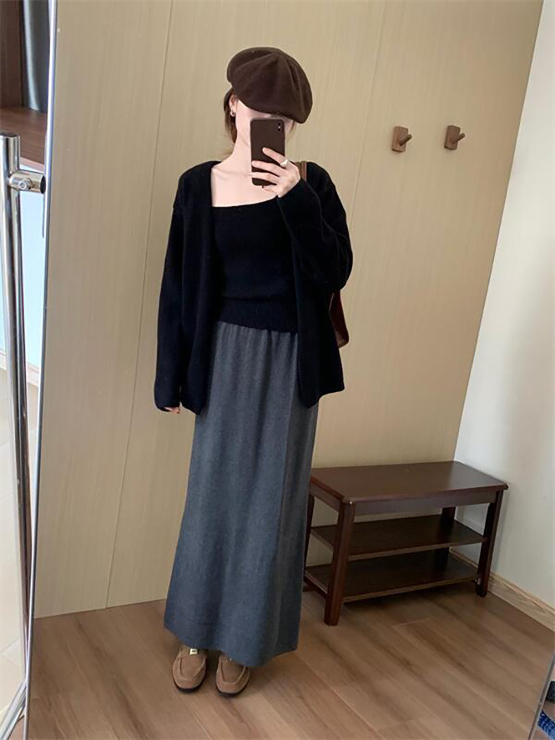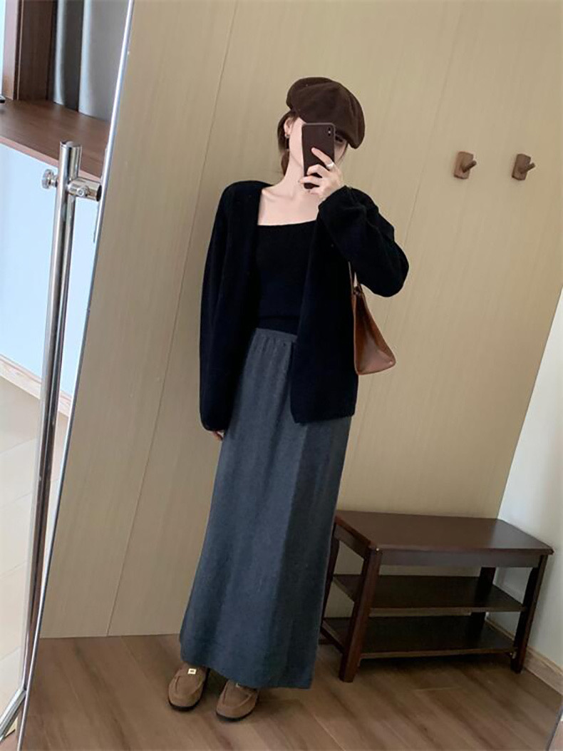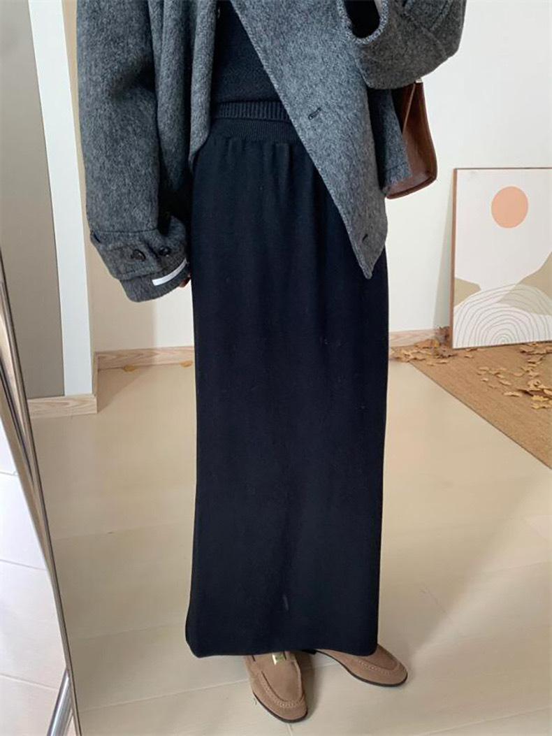 한국 스타일 간단한 캐주얼 높은 허리 니트 원피스 여성 2024 가을과 겨울 새로운 스타일 캐릭터 스트레이트 하프 길이 원피스 트렌디스토어 가기