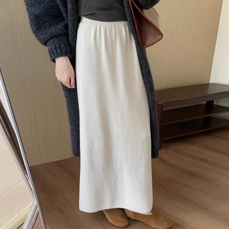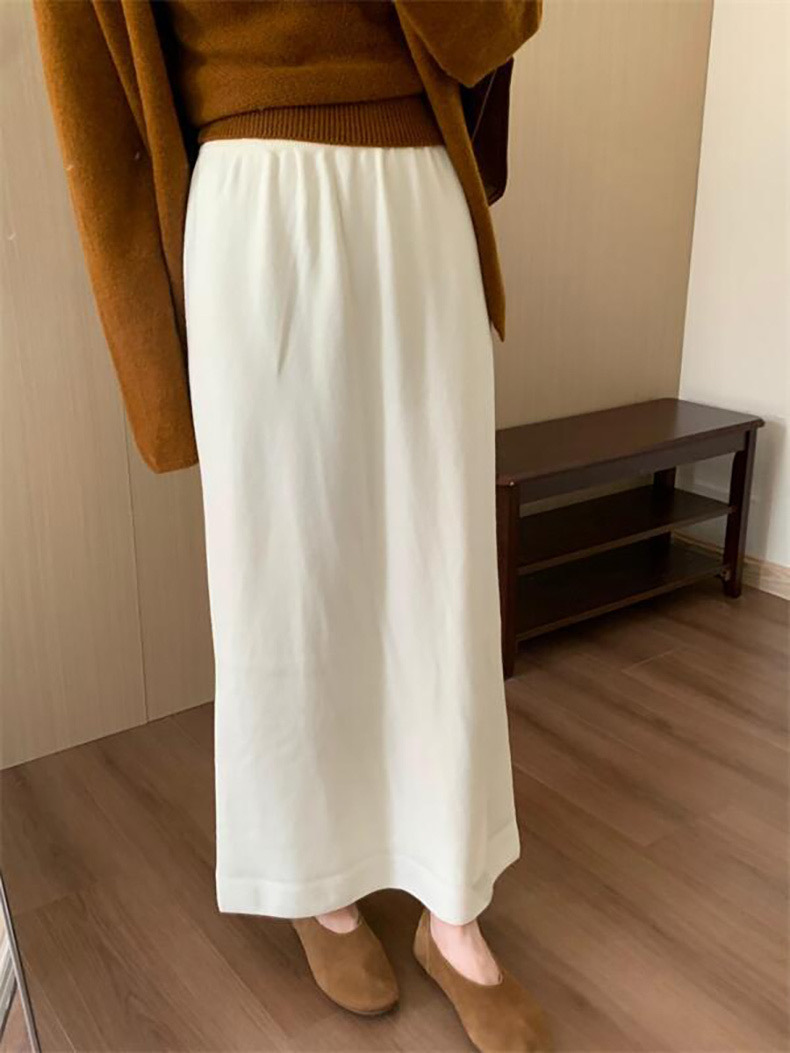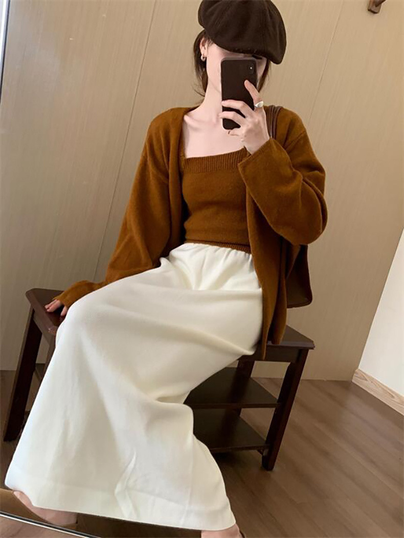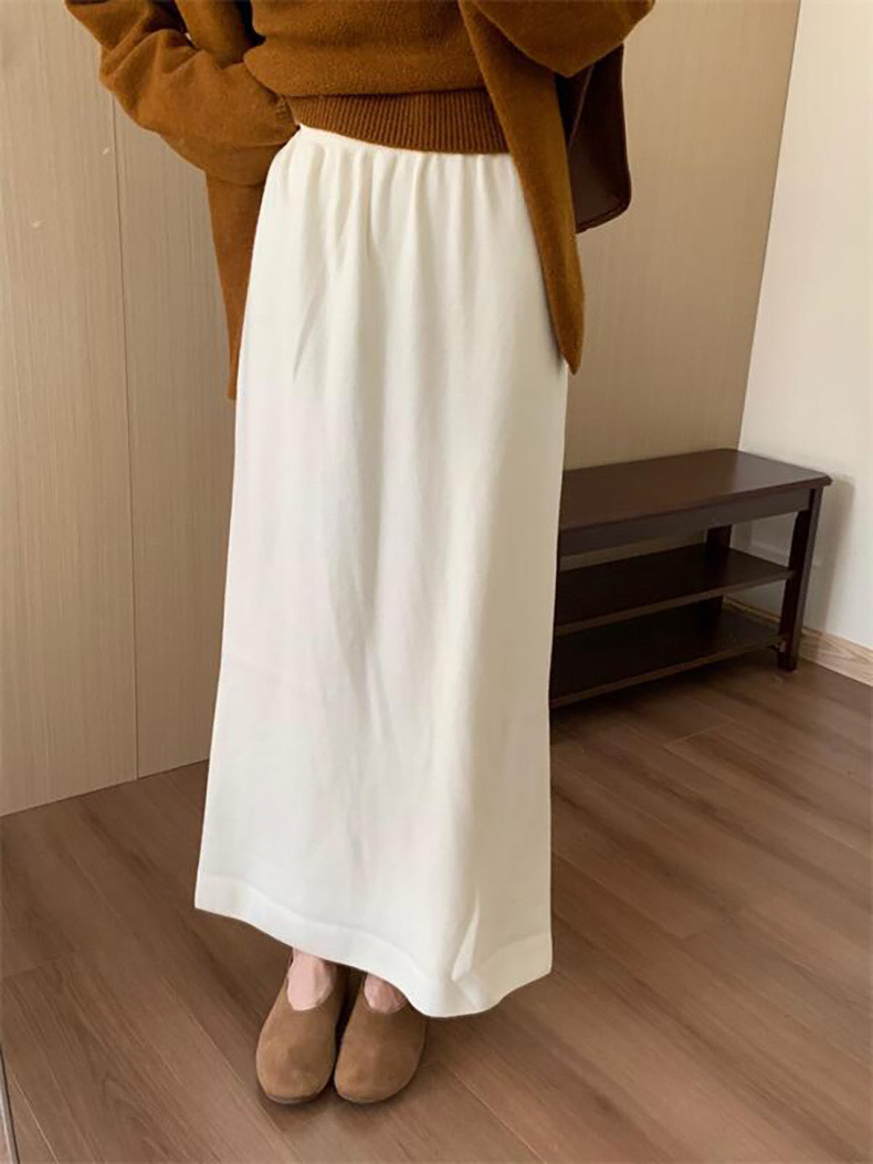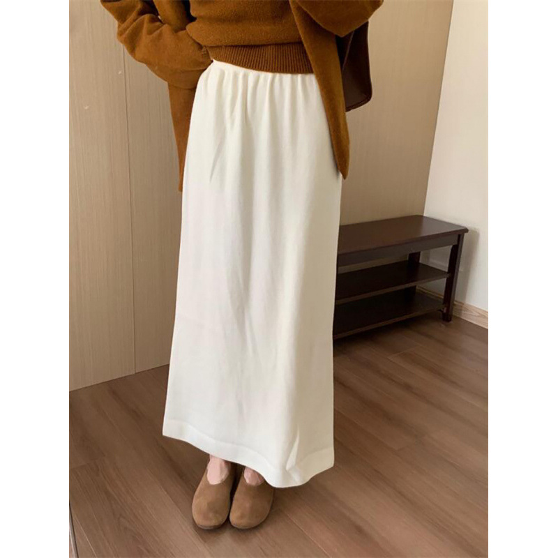 한국 스타일 간단한 캐주얼 높은 허리 니트 원피스 여성 2024 가을과 겨울 새로운 스타일 캐릭터 스트레이트 하프 길이 원피스 트렌디