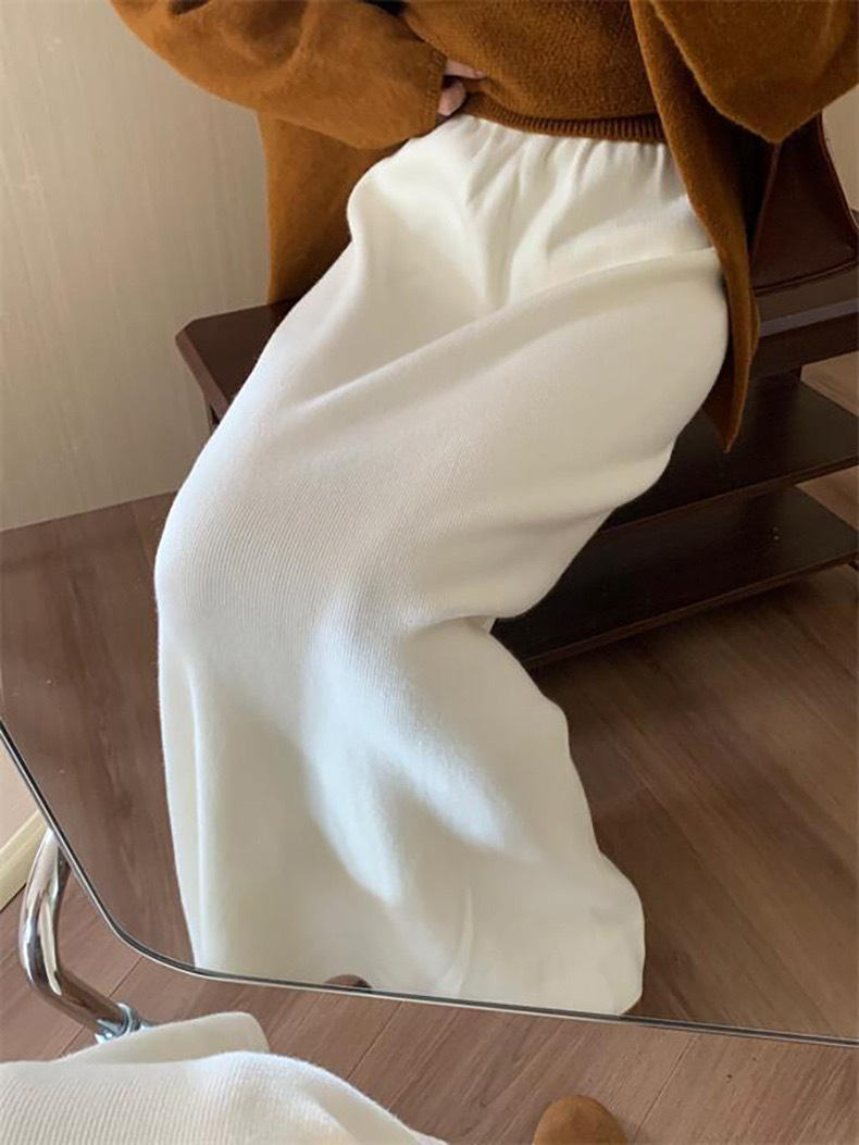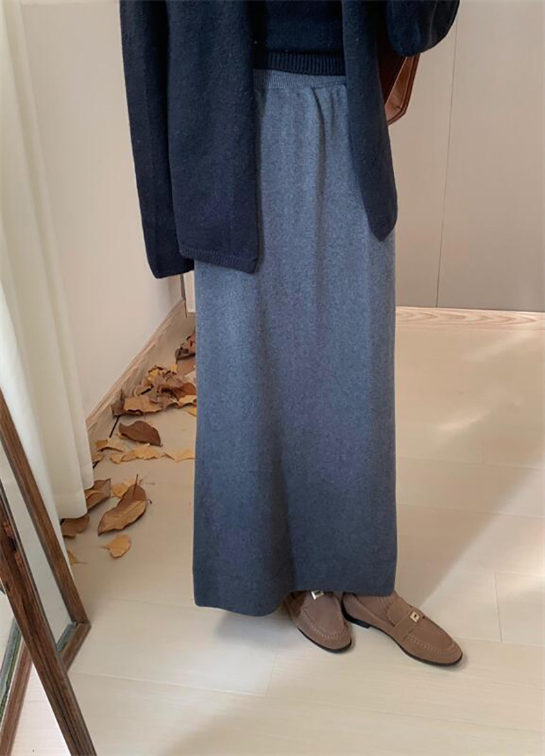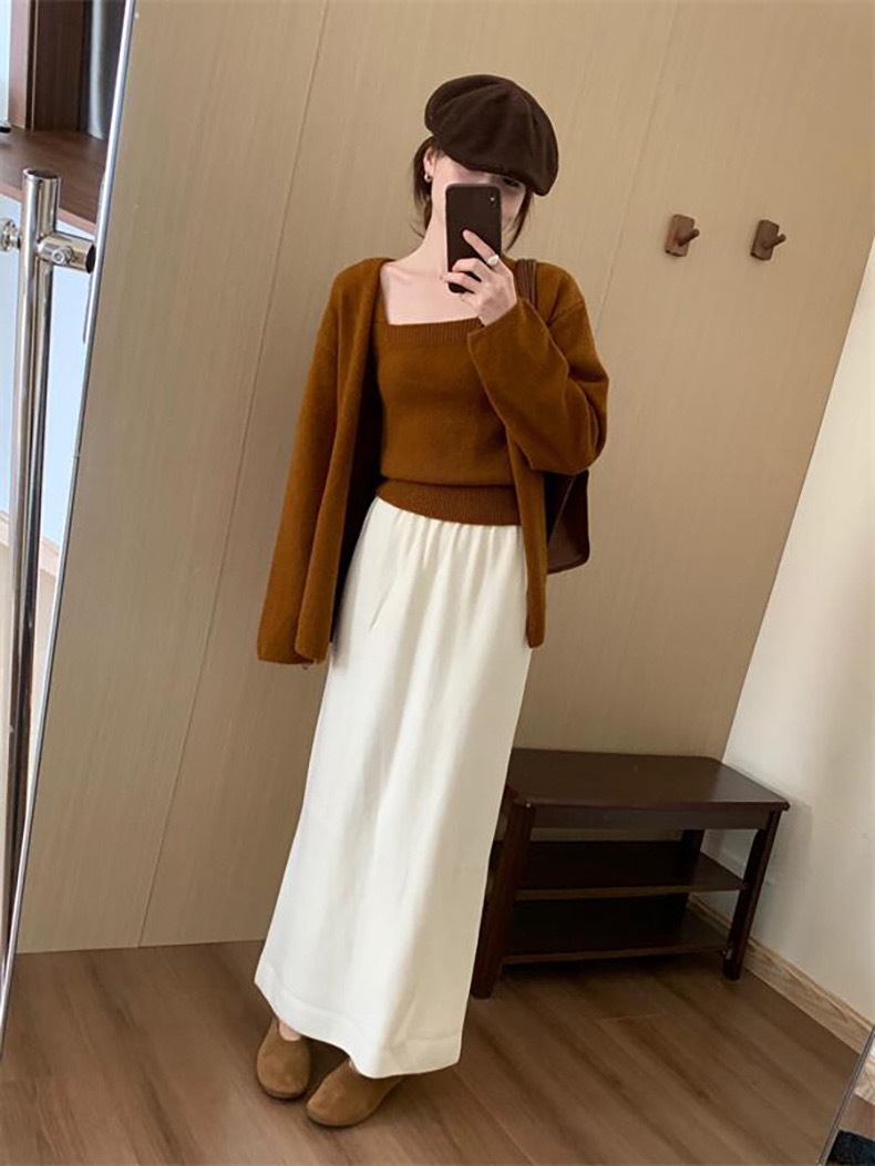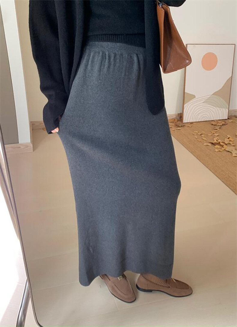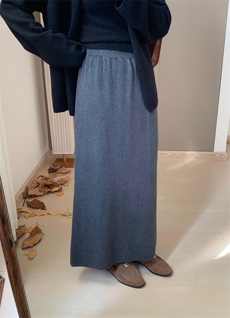 한국 스타일 간단한 캐주얼 높은 허리 니트 원피스 여성 2024 가을과 겨울 새로운 스타일 캐릭터 스트레이트 하프 길이 원피스 트렌디