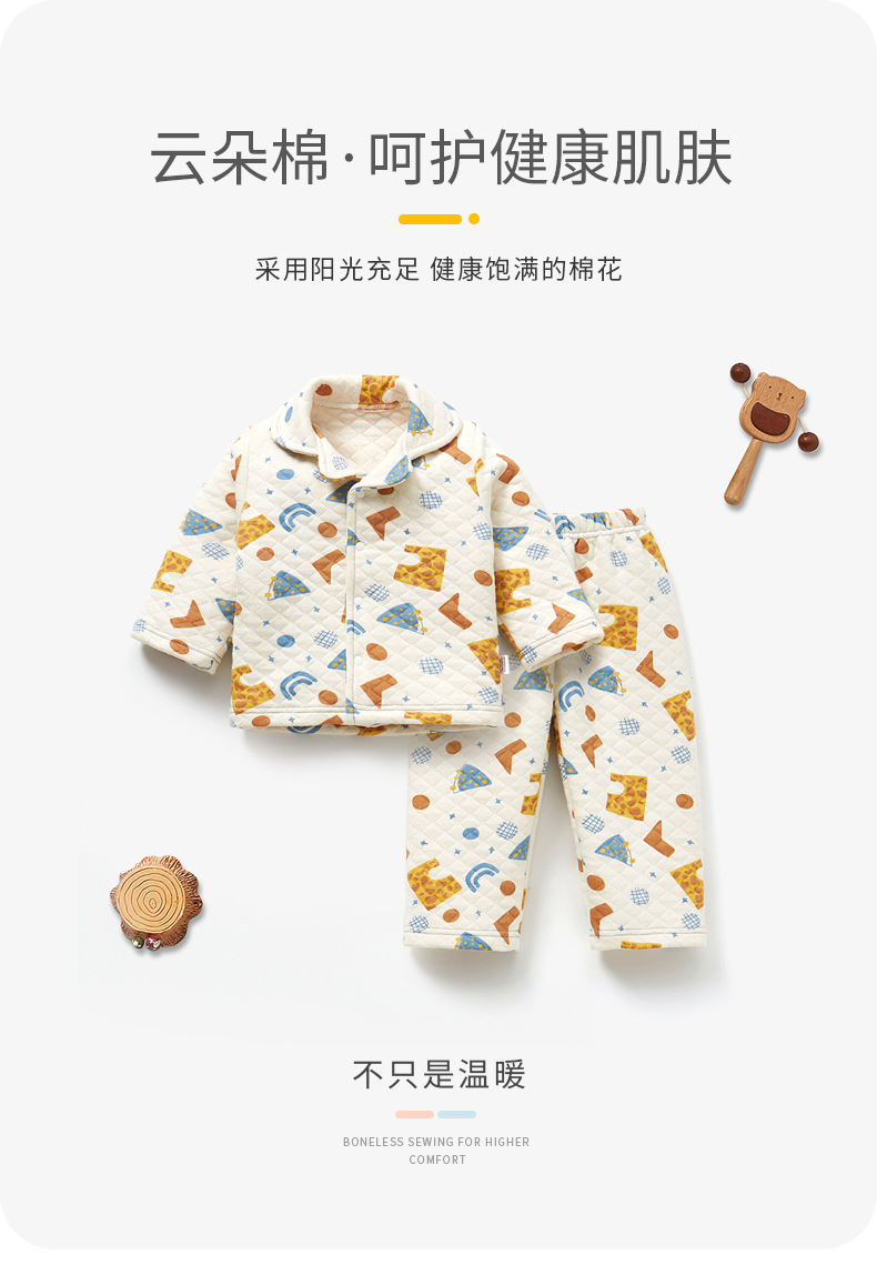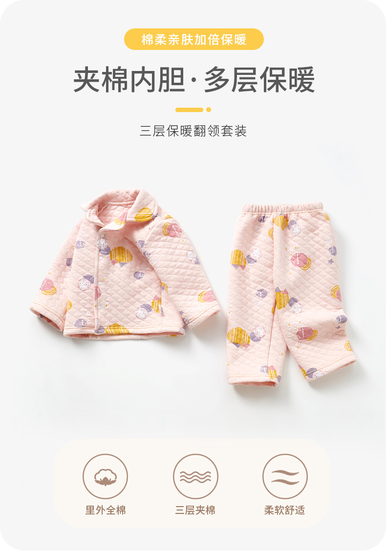 소녀 잠옷 세트 가을과 겨울 면화 소년의 홈 옷 옷깃 따뜻한 아기 투피스 얇은 면 분할 속옷