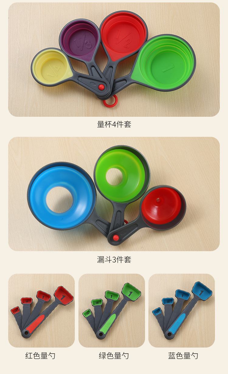 4 조각 접이식 측정 컵 개폐식 깔때기 측정 컵 세트 커피 밀가루 저울 베이킹 측정 도구 주방 도구스토어 가기