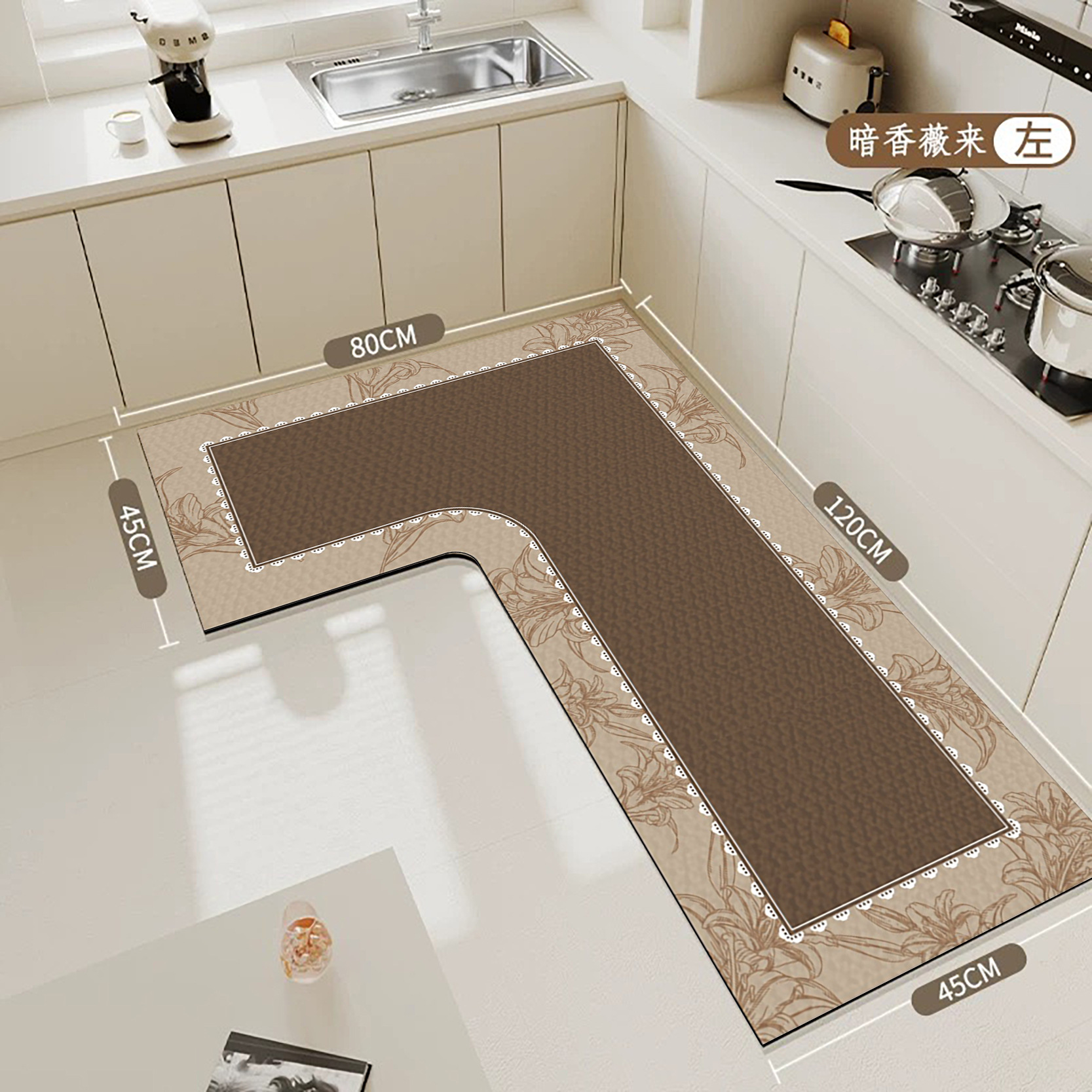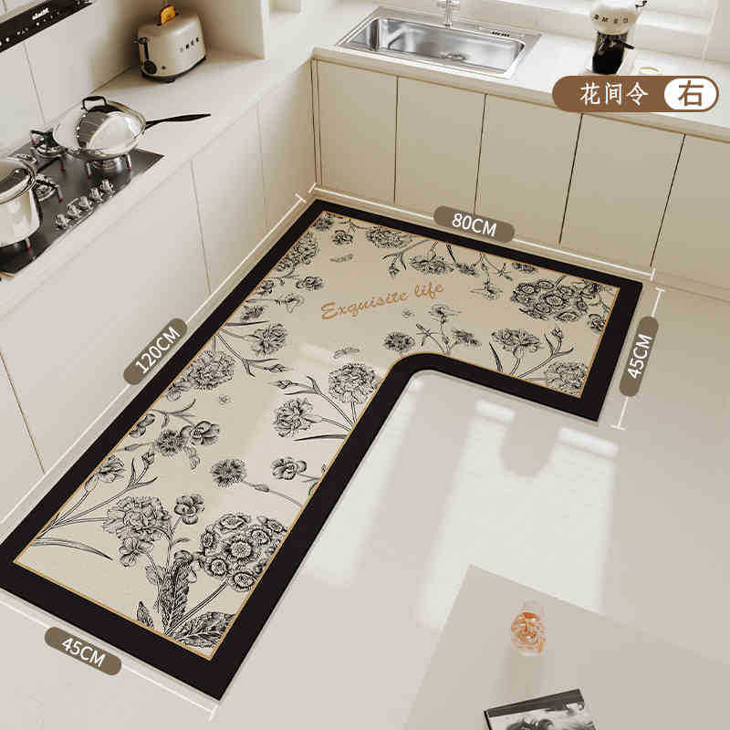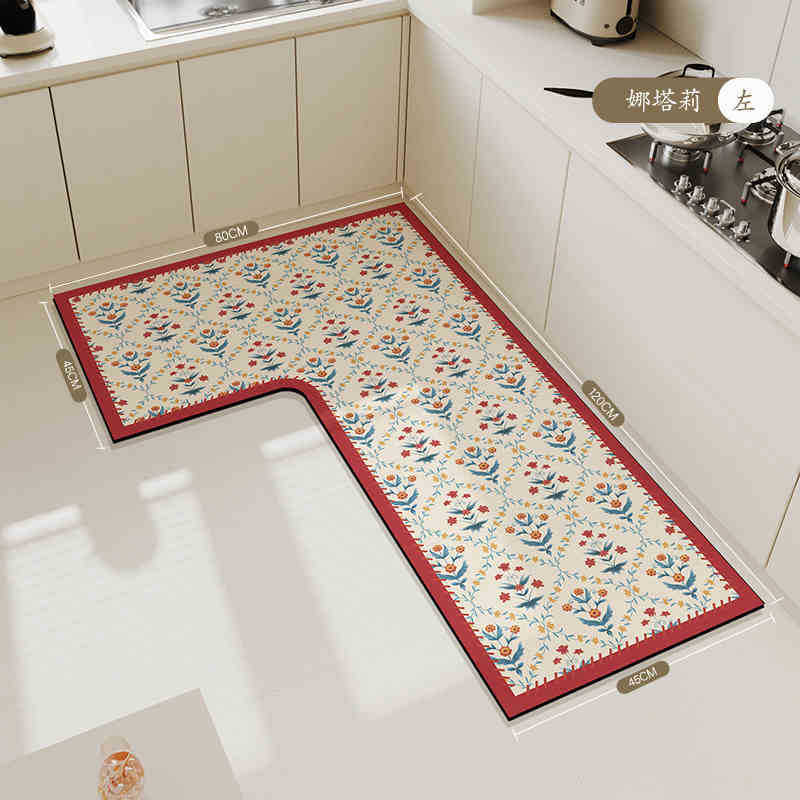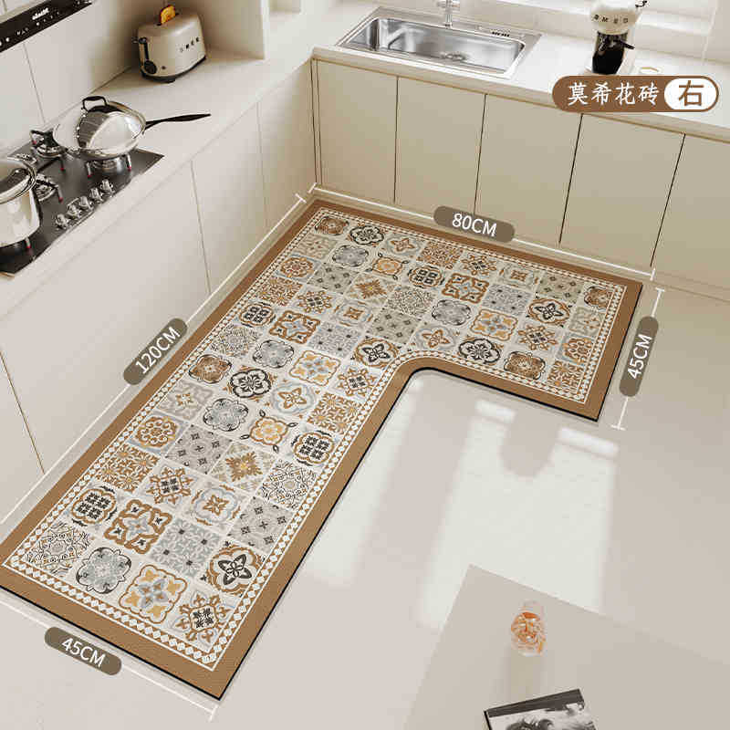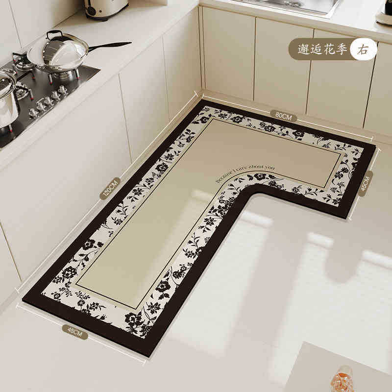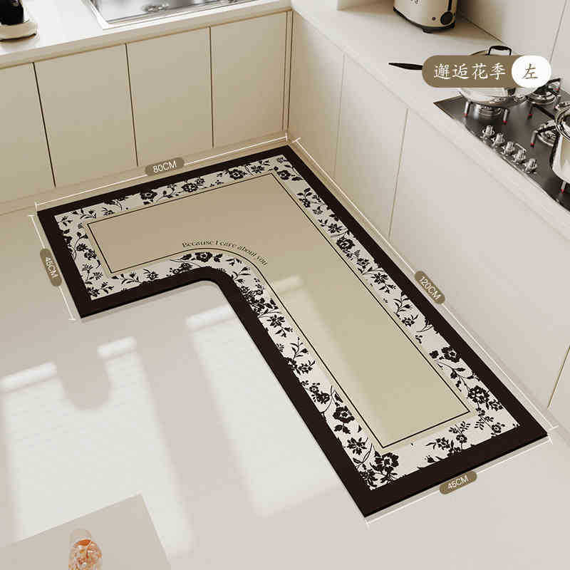 가벼운 럭셔리 고급 현대 L 자형 주방 바닥 매트 미끄럼 방지 먼지 방지 쉬운 관리 발 매트 가구 흡수성 이질 진흙 바닥 매트스토어 가기