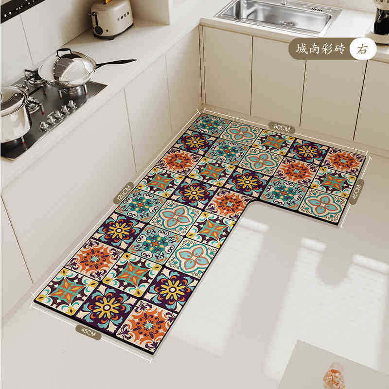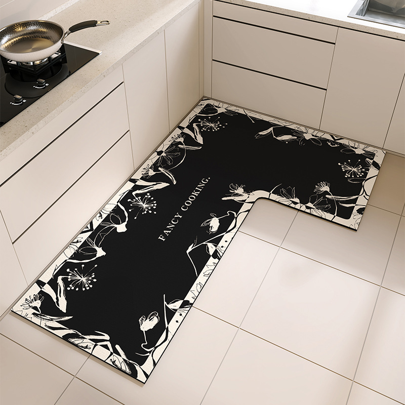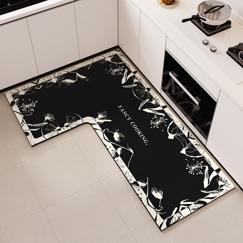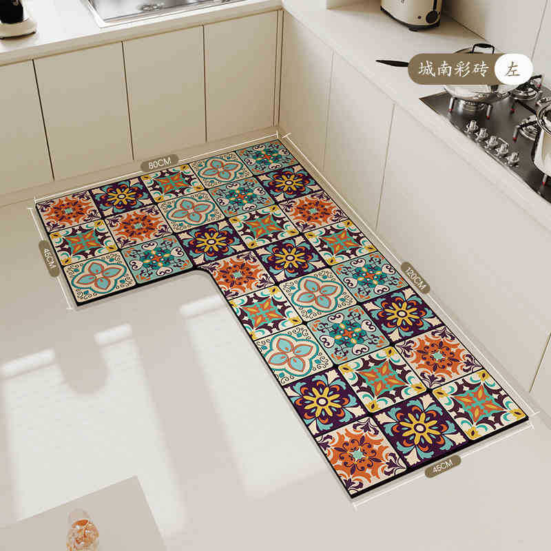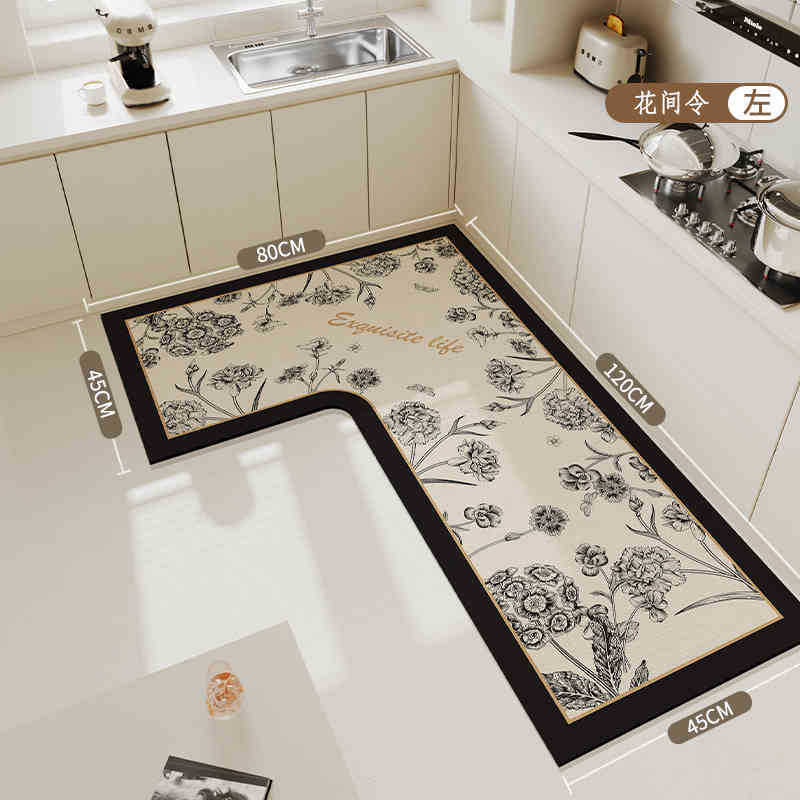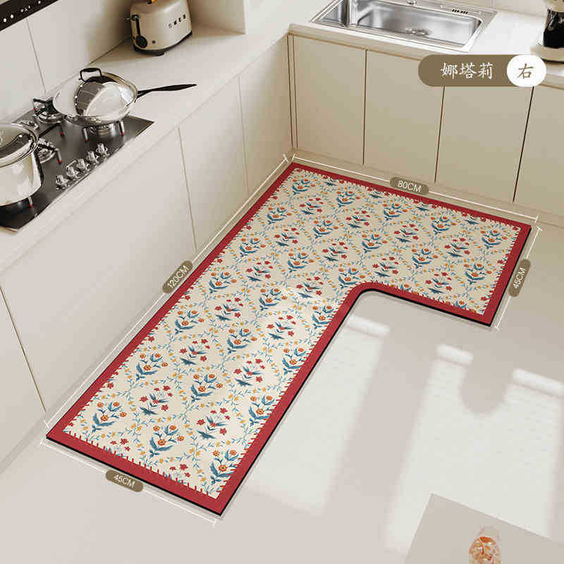 가벼운 럭셔리 고급 현대 L 자형 주방 바닥 매트 미끄럼 방지 먼지 방지 쉬운 관리 발 매트 가구 흡수성 이질 진흙 바닥 매트스토어 가기
