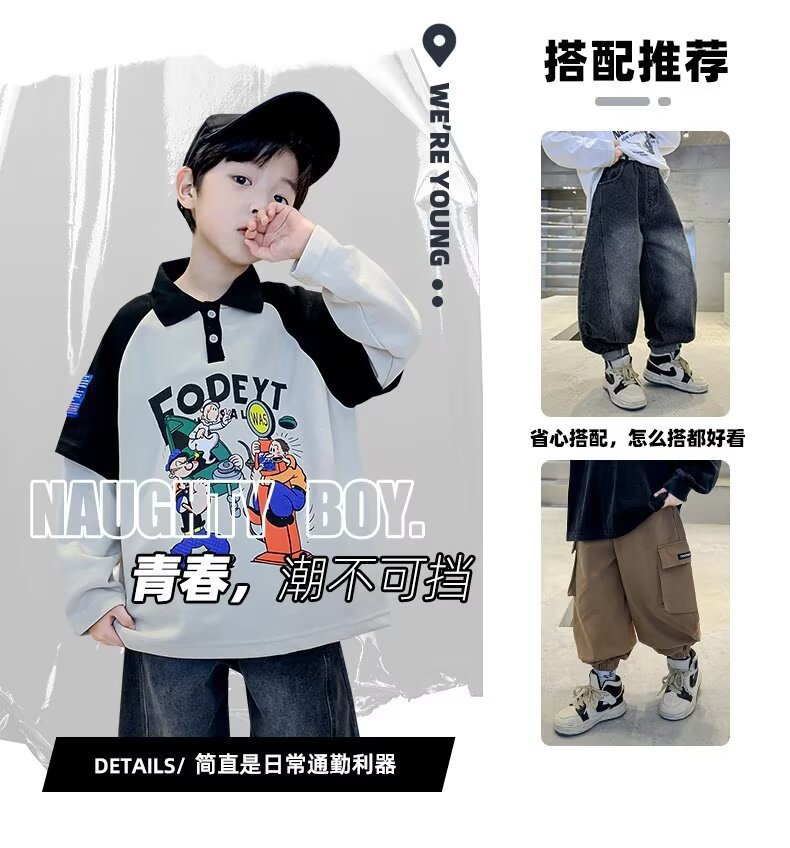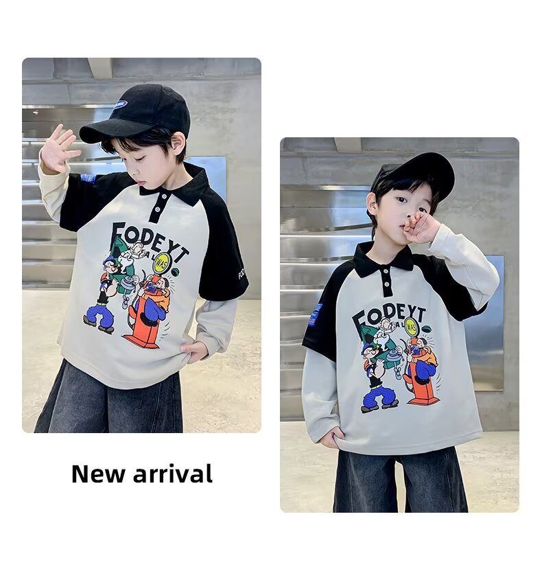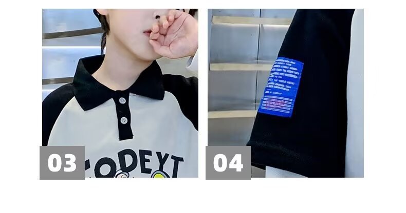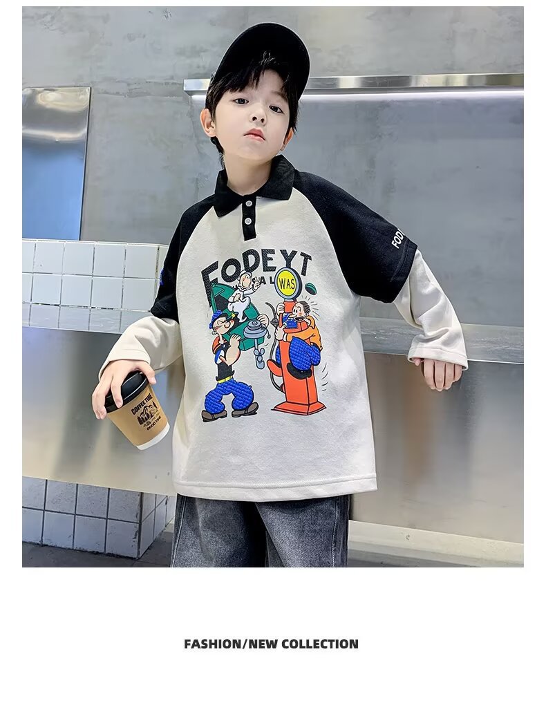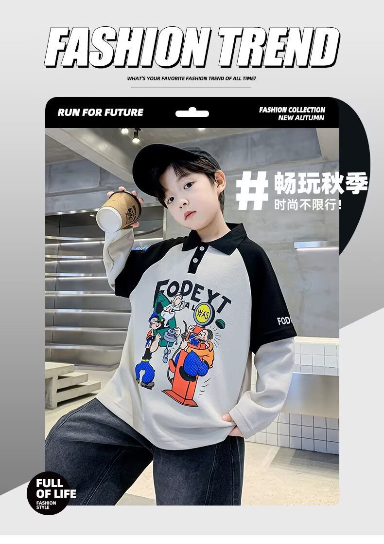 소년의 가짜 투피스 스웨터 봄과 가을 2024 새로운 아동복 큰 소년 가을 폴로 셔츠 긴 소매 티셔츠 조수스토어 가기
