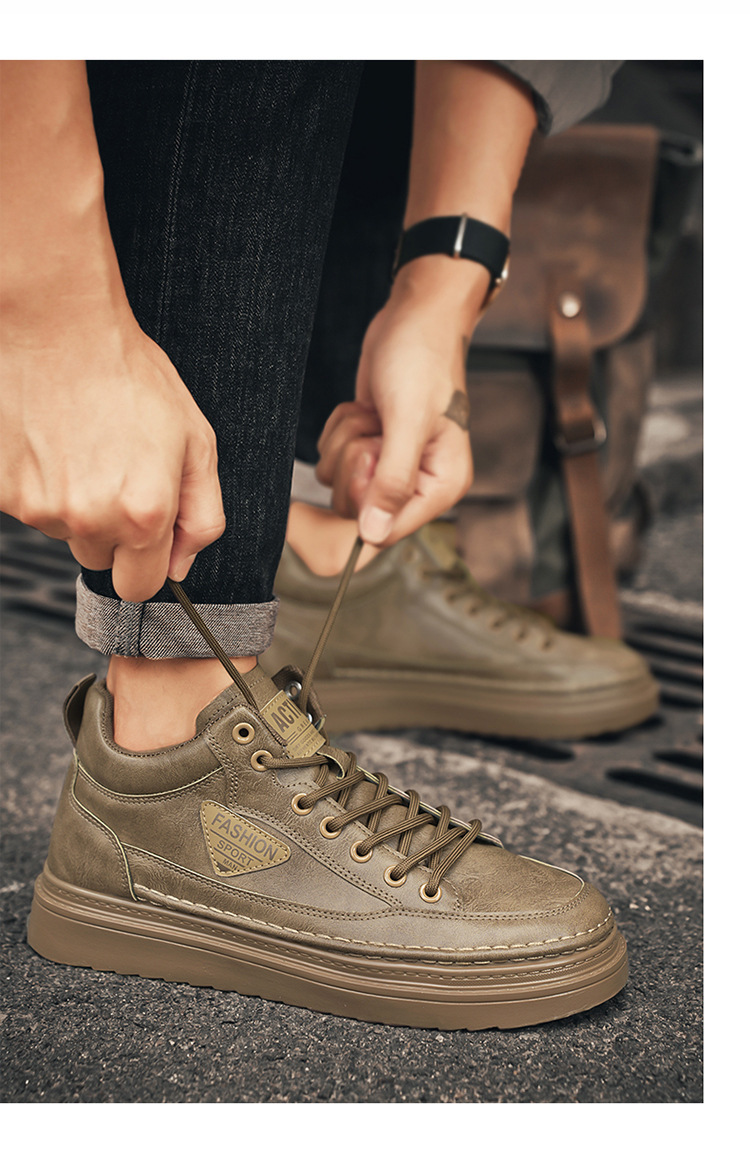2024 년 가을 새로운 최고급 마틴 부츠 남자 트렌디 올매치 두꺼운 밑창 캐주얼 가죽 신발 작업복 스케이트 신발 남성 노동 보험 신발스토어 가기
