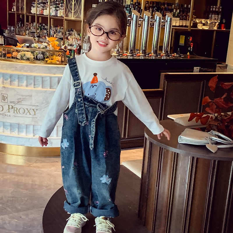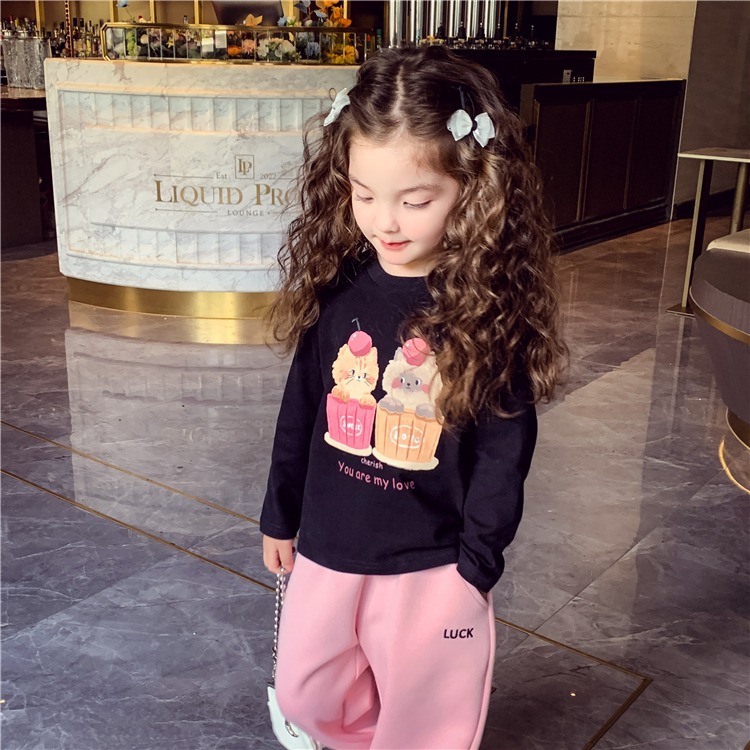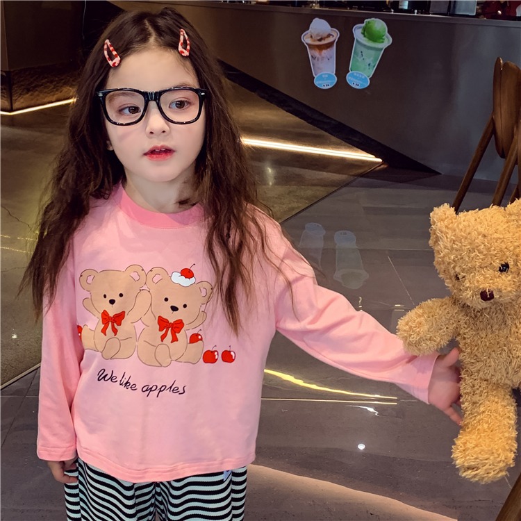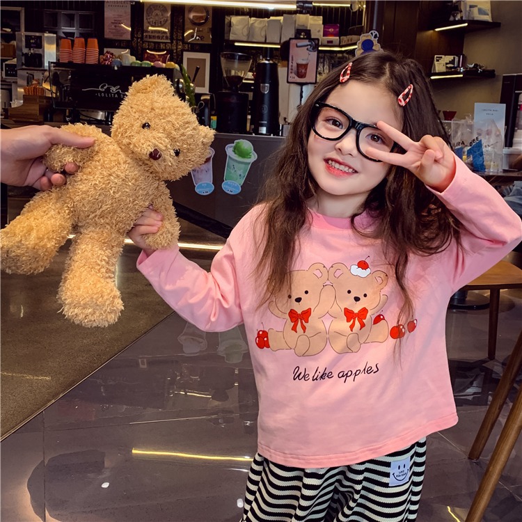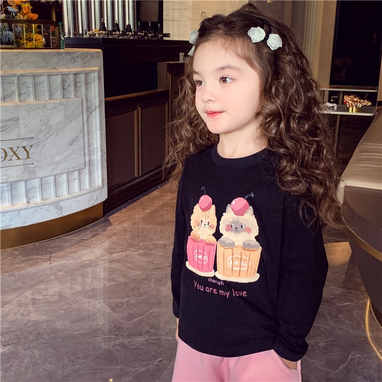 여자 긴팔 티셔츠 가을 2024 새로운 스타일 어린이 만화 프린트 탑 어린 소녀 캐주얼 바닥 셔츠스토어 가기