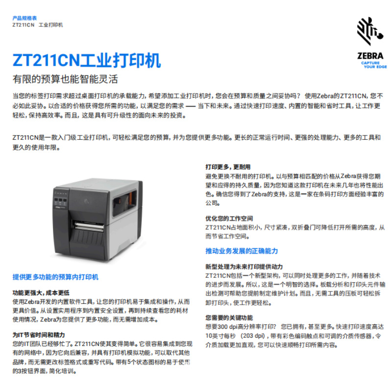 ZEBRAzebra ZT210 업그레이드 된 ZT211 산업 등급 203/300DPI 라벨 프린터