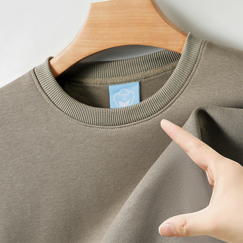• 카키 라운드넥 [두꺼운 벨벳] 솔리드 컬러