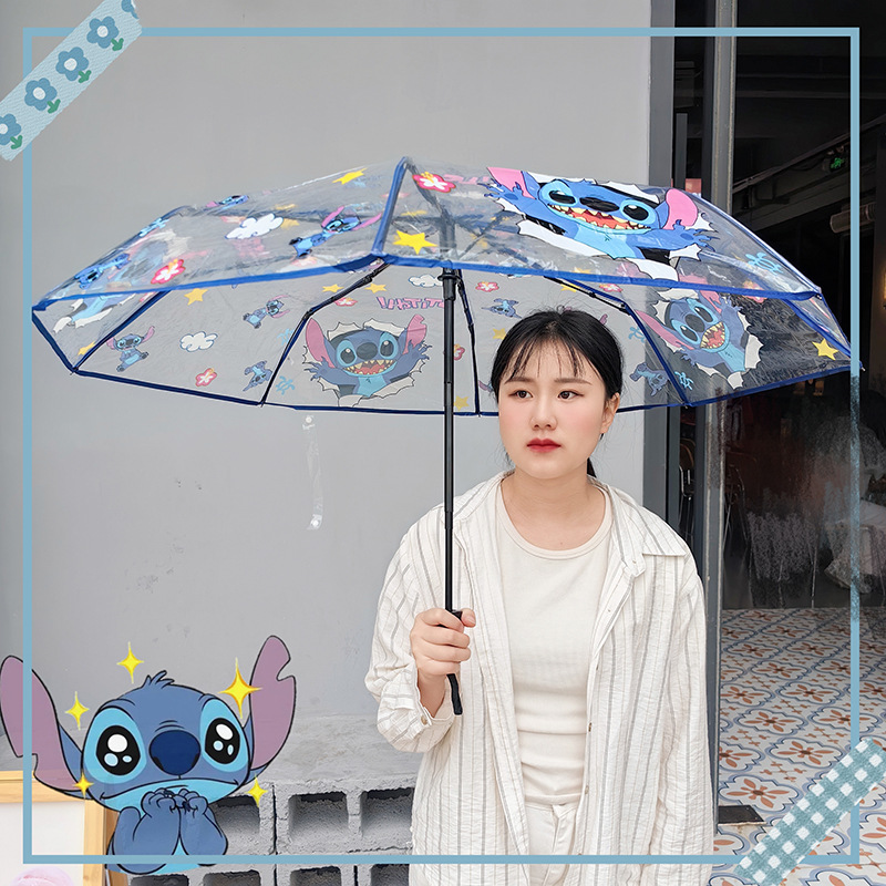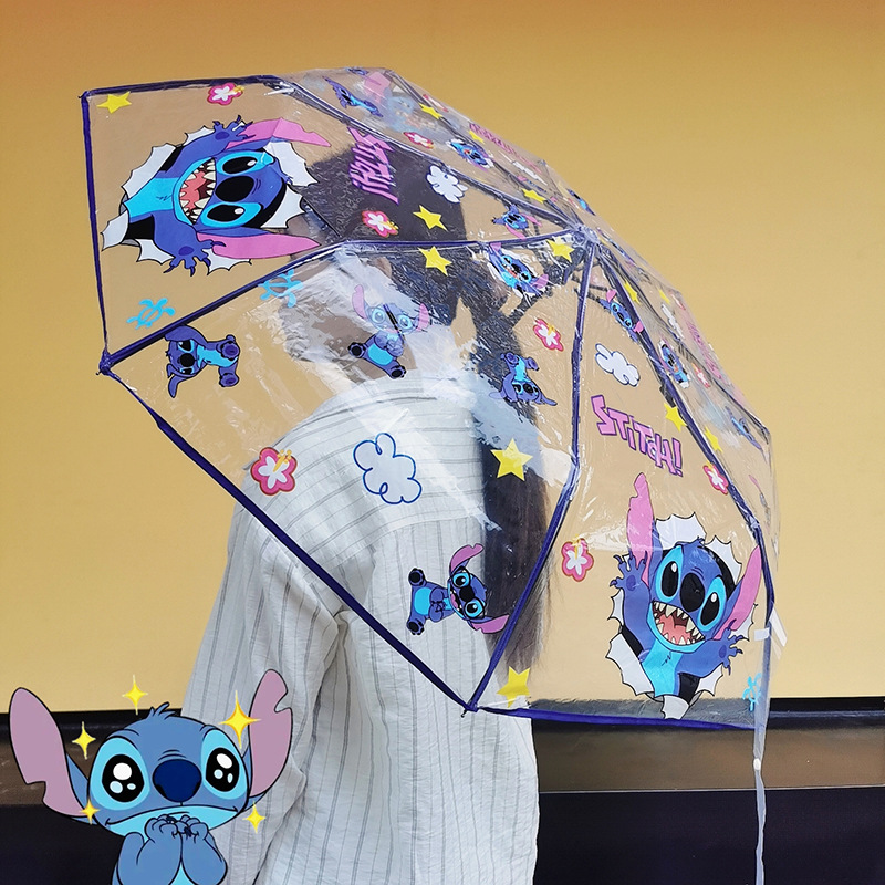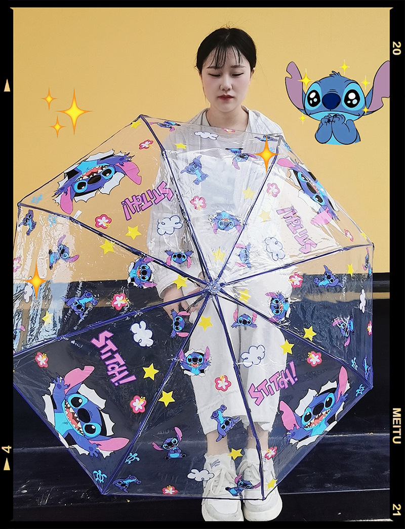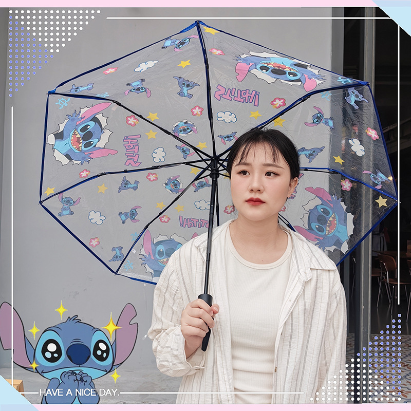 만화 애니메이션 스티치 완전 자동 투명 우산 사이버 기념 접기 3 배 우산 수동 스티치 어린이 남녀스토어 가기