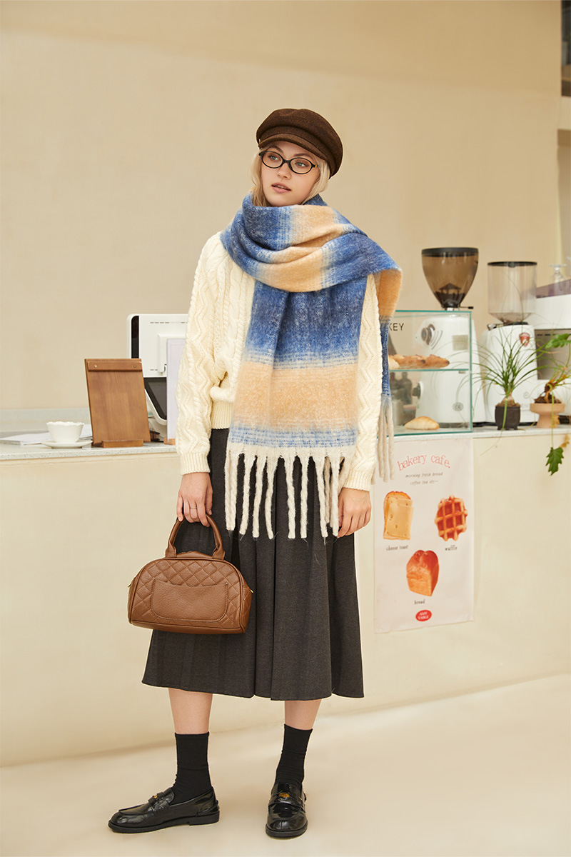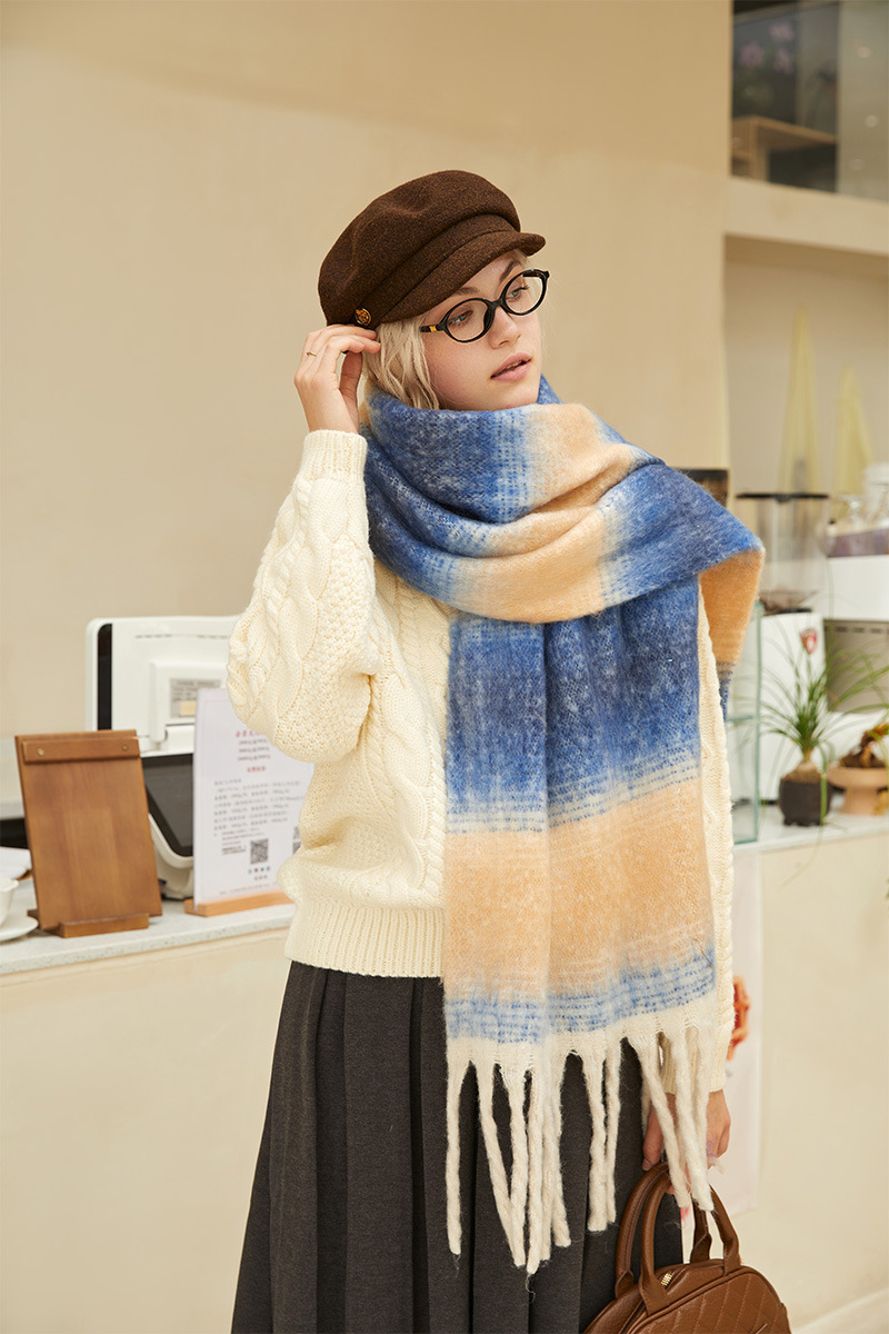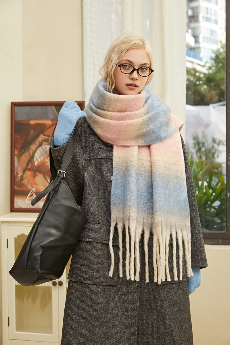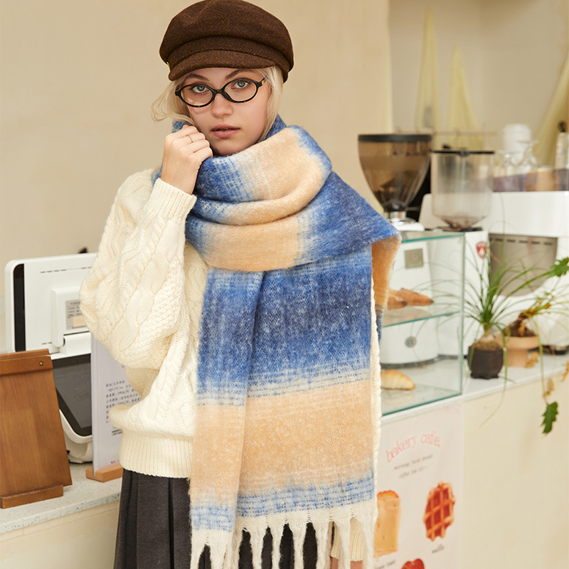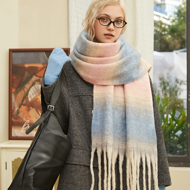 겨울 새 여성의 하이 엔드 센스 두꺼운 스카프 그라디언트 술 모방 캐시미어 따뜻한 스카프 초대형 폭 목도리