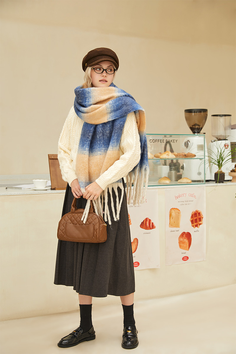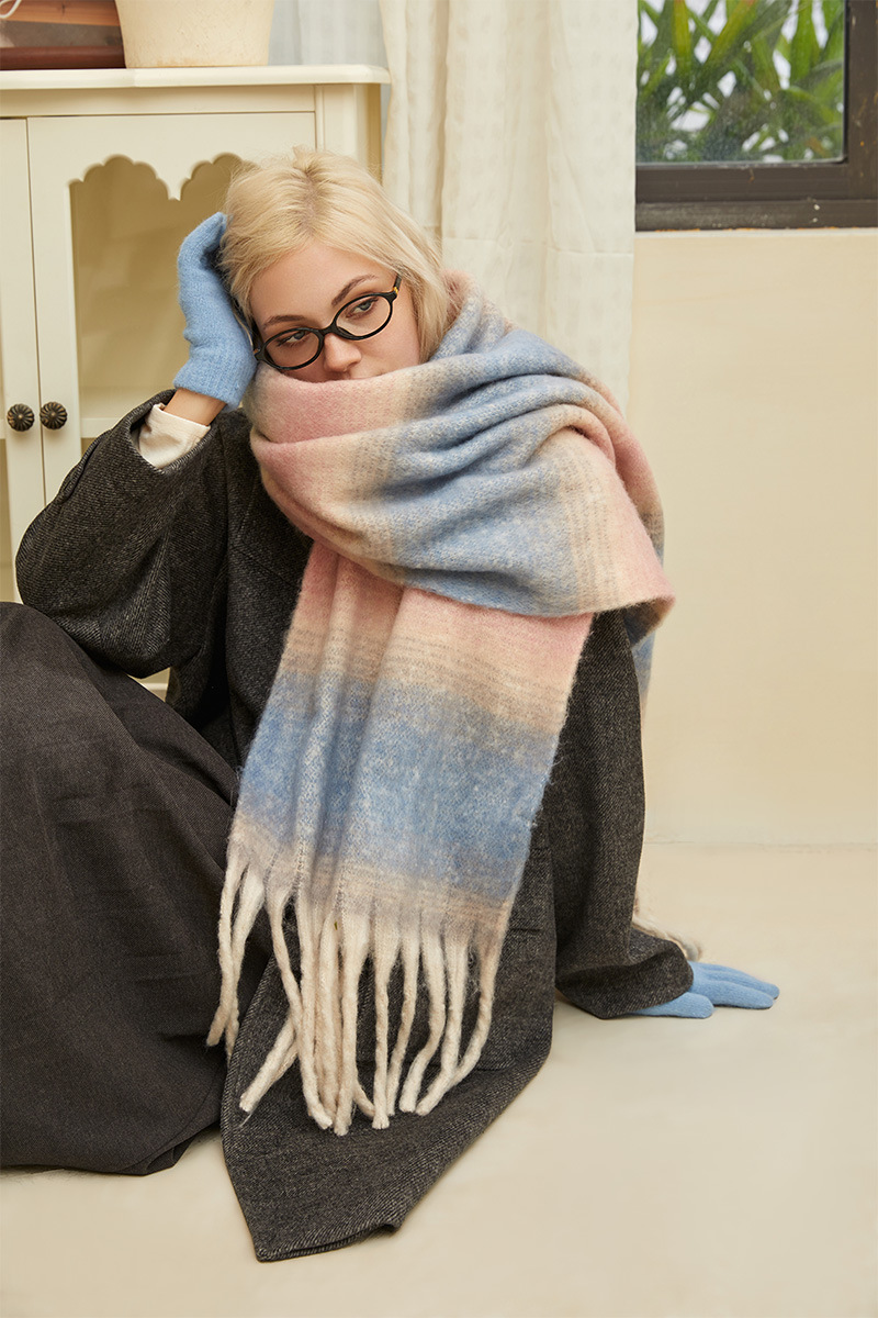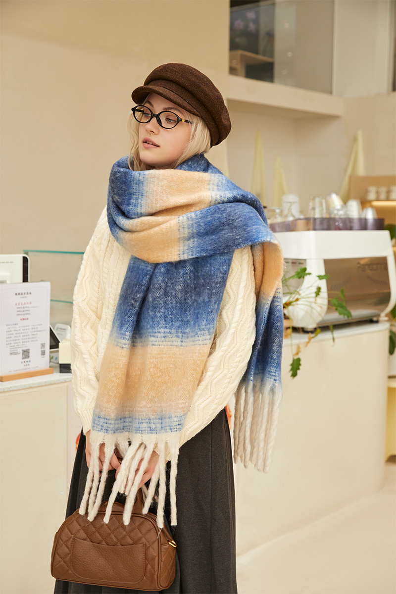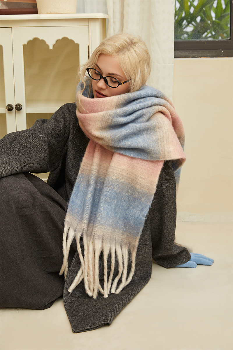 겨울 새 여성의 하이 엔드 센스 두꺼운 스카프 그라디언트 술 모방 캐시미어 따뜻한 스카프 초대형 폭 목도리