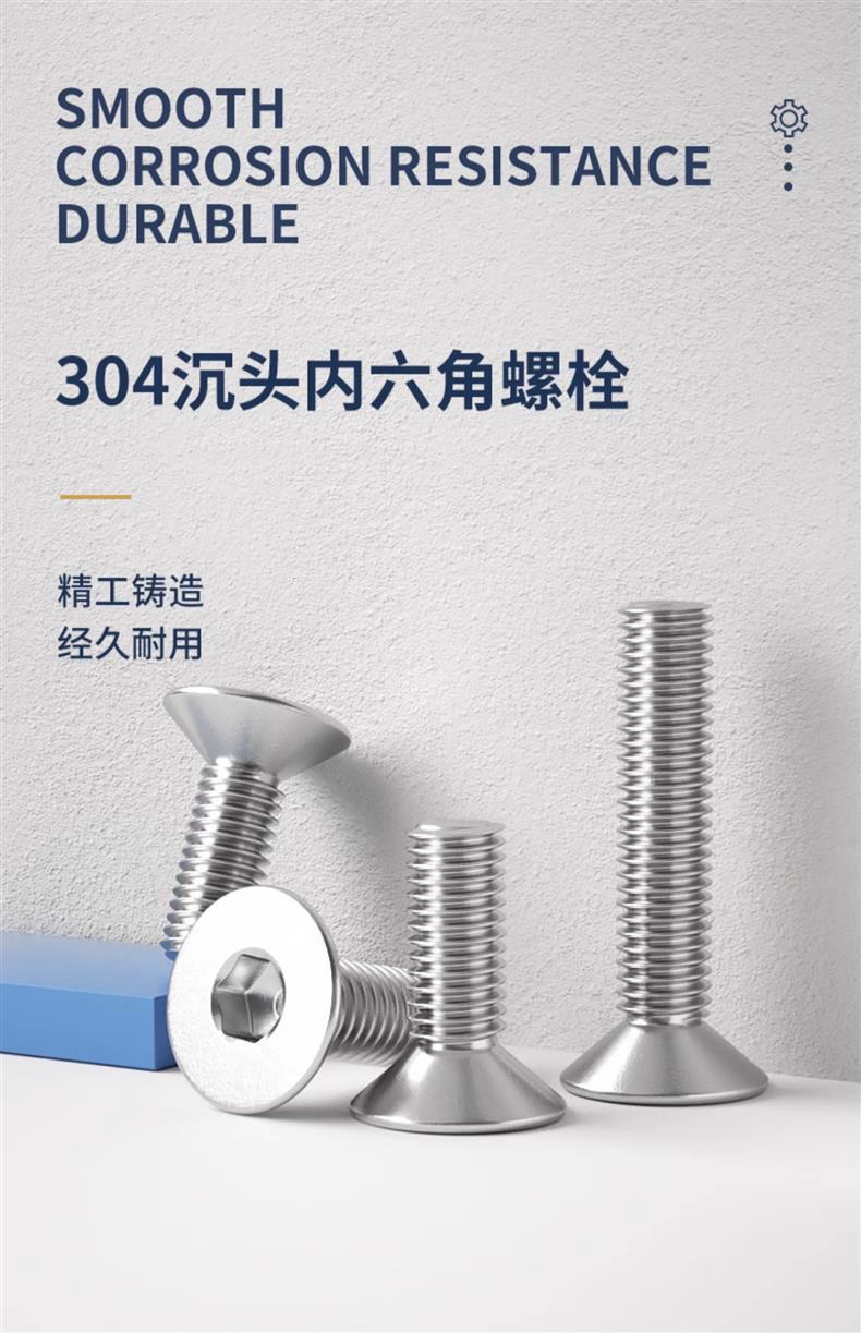 플랫 헤드 육각 소켓 나사 304 스테인레스 스틸 카운터 침몰 헤드 플랫 컵 나사 육각 소켓 볼트 M5M6. 공장 도매스토어 가기
