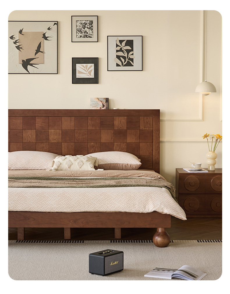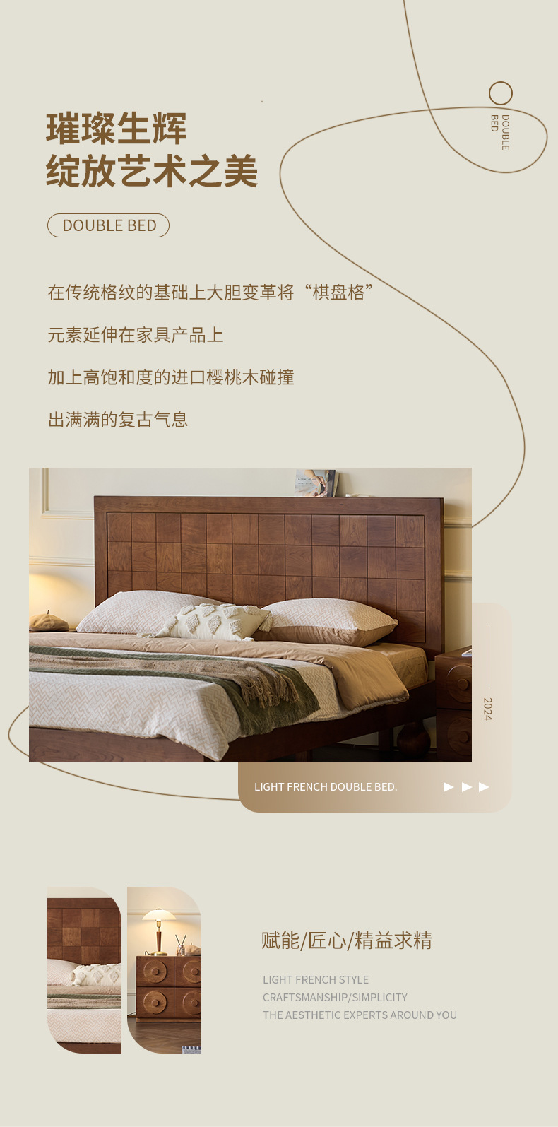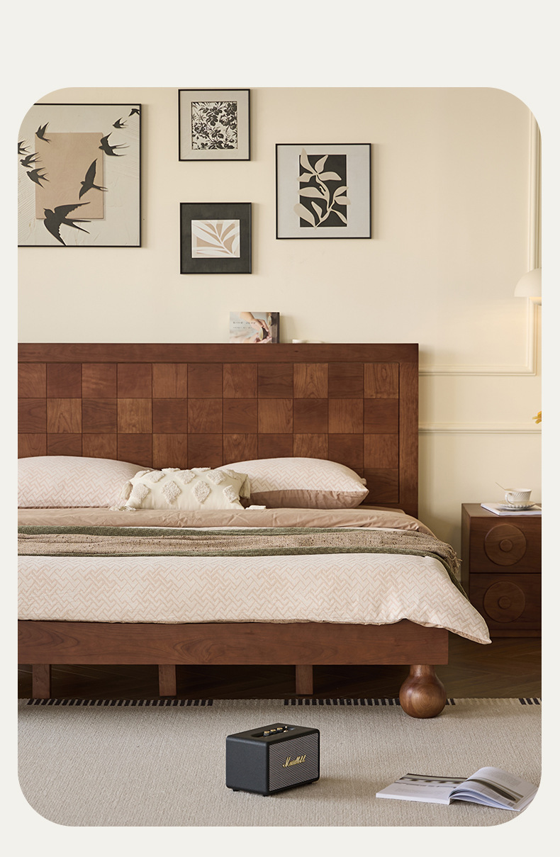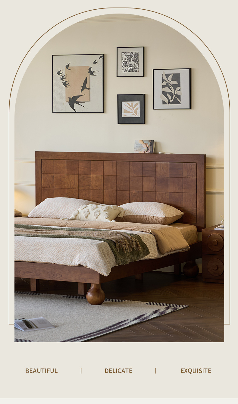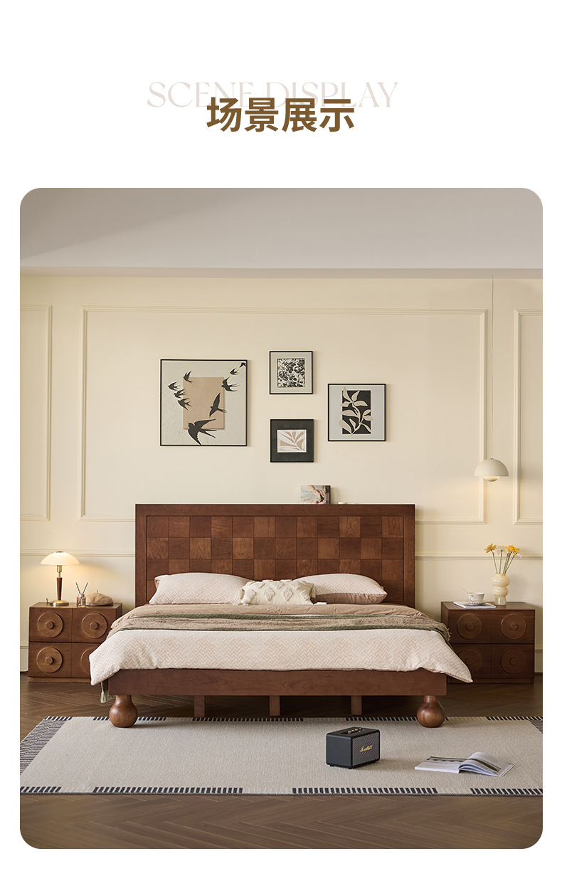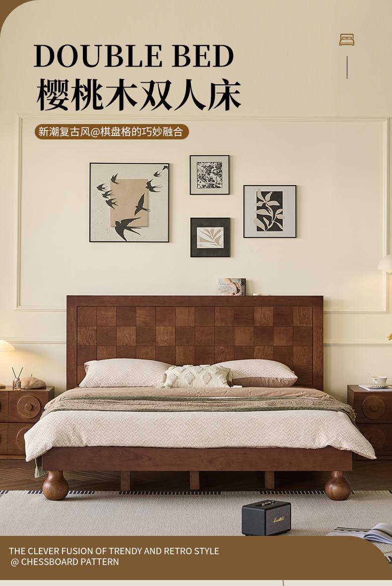 솔리드 우드 침대 북미 체리 우드 로그 프렌치 빈티지 패치 워크 하이 등받이 침대 라이트 럭셔리 골동품 1.8 더블 침대스토어 가기