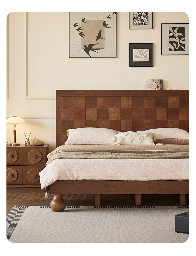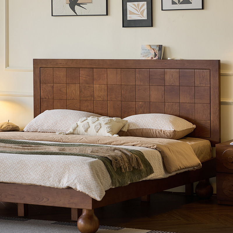 솔리드 우드 침대 북미 체리 우드 로그 프렌치 빈티지 패치 워크 하이 등받이 침대 라이트 럭셔리 골동품 1.8 더블 침대
