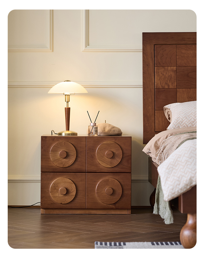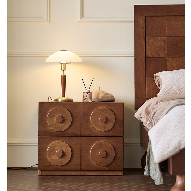 • 벚나무 복고풍 색상의 침대협탁 2개