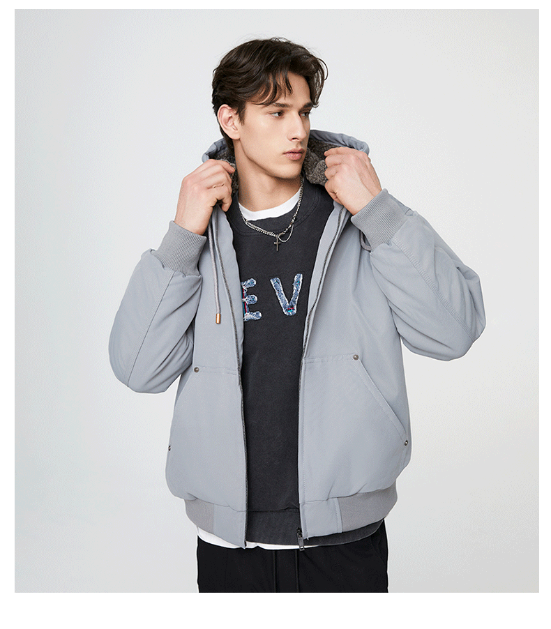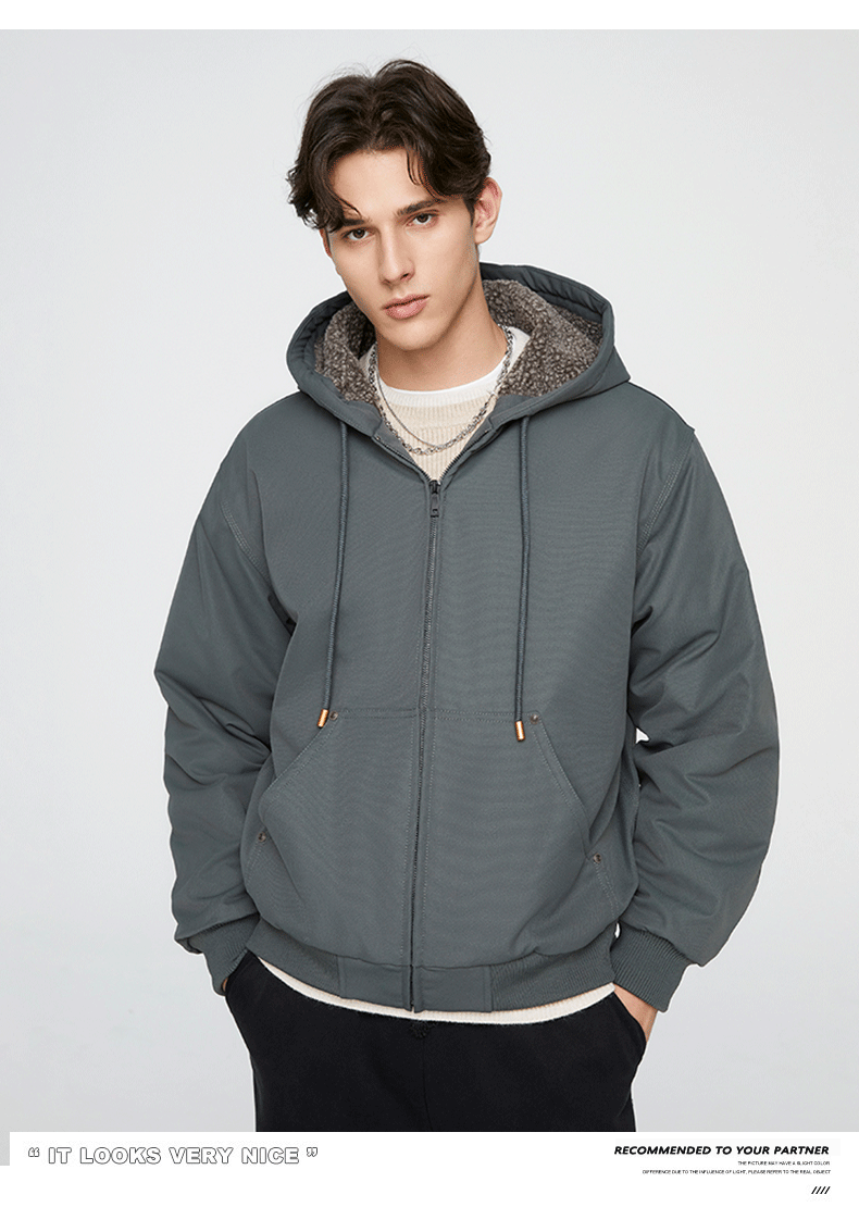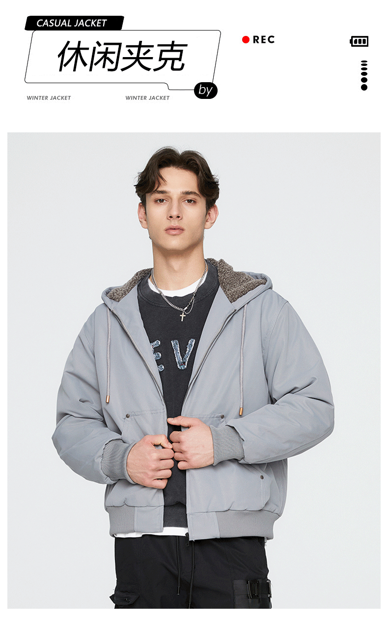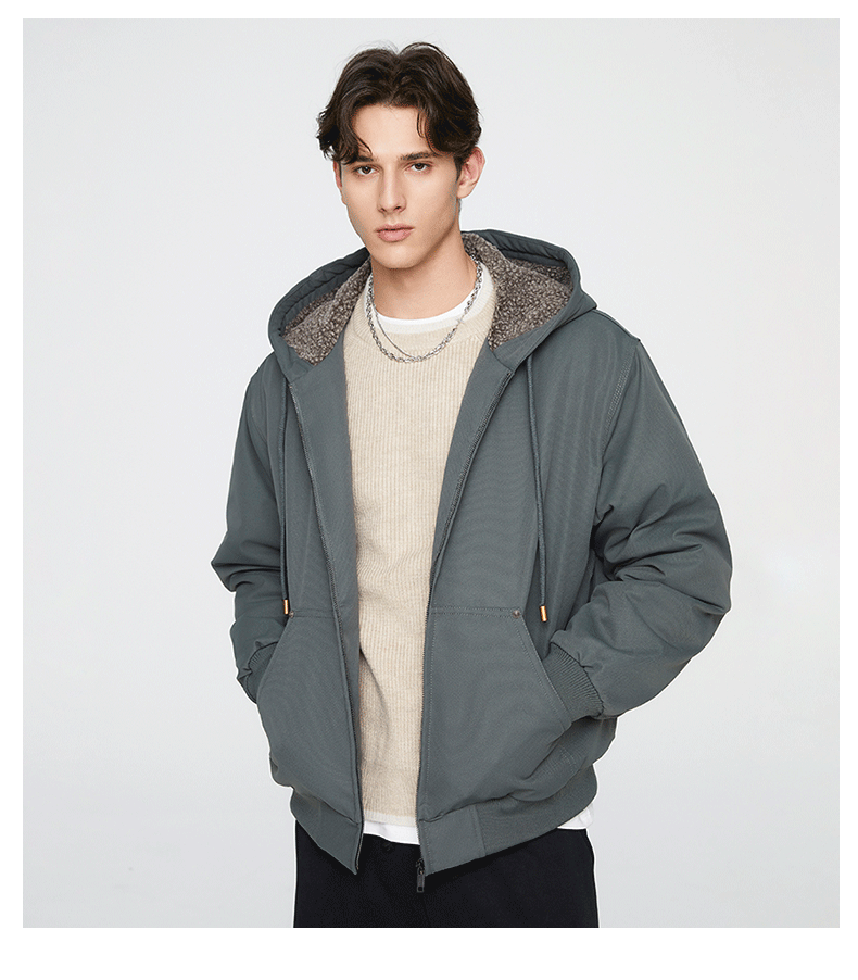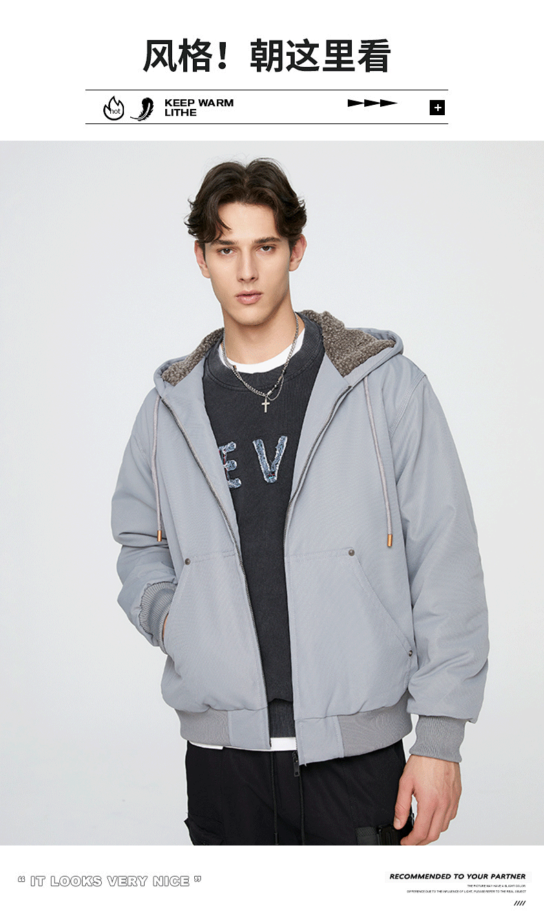 OLA 冬季新款男士加厚连帽开衫卫衣个性简约宽松外套时尚休闲
