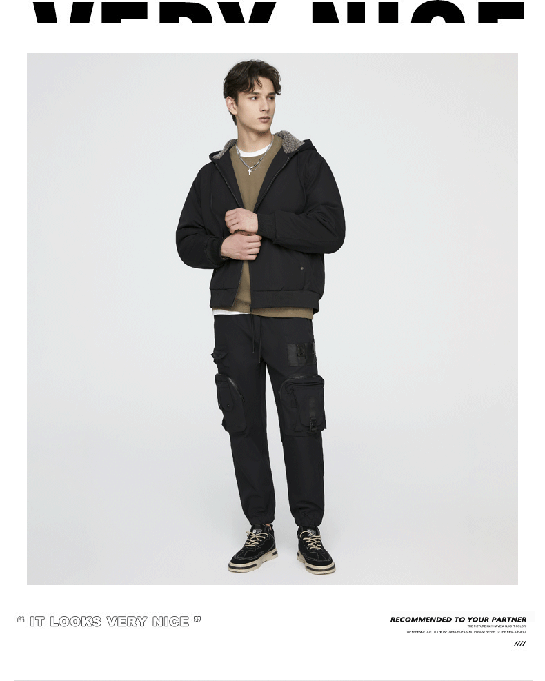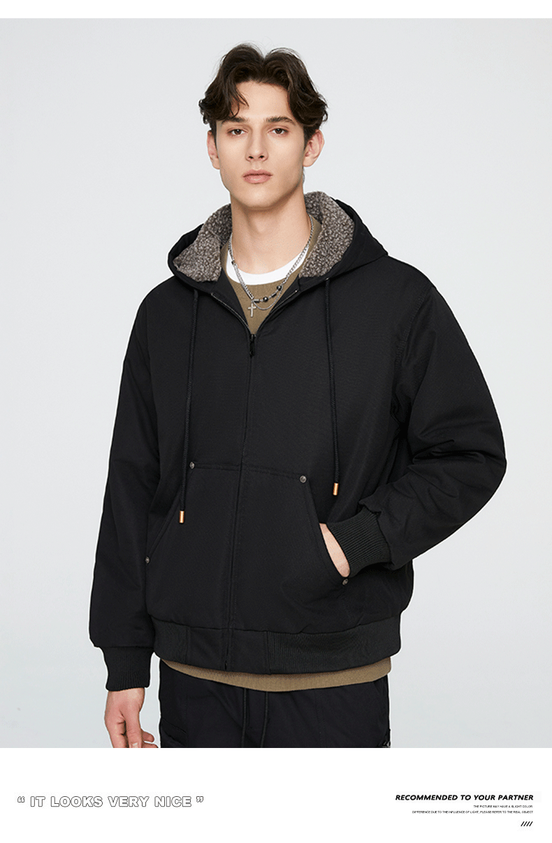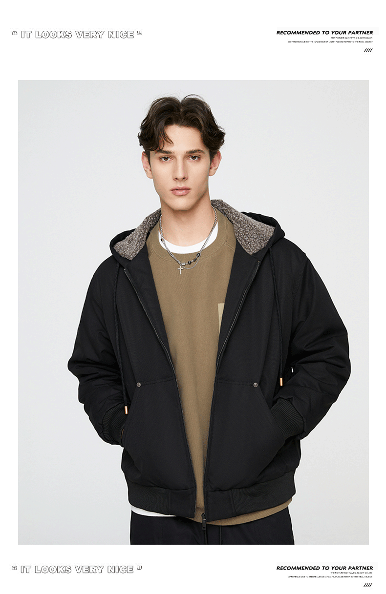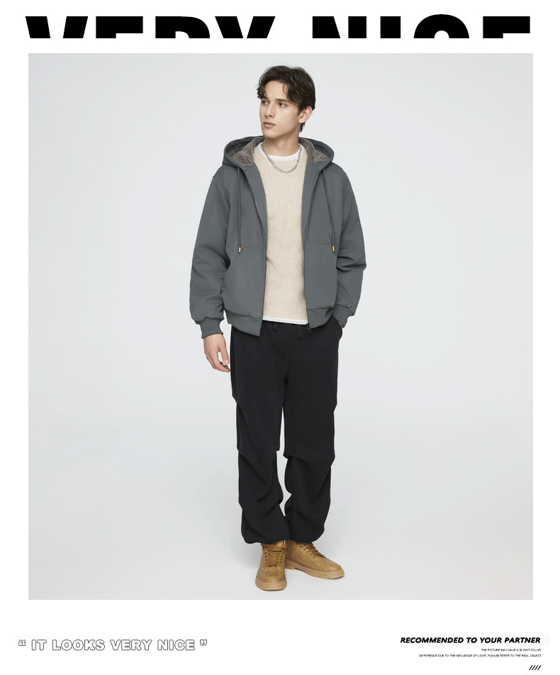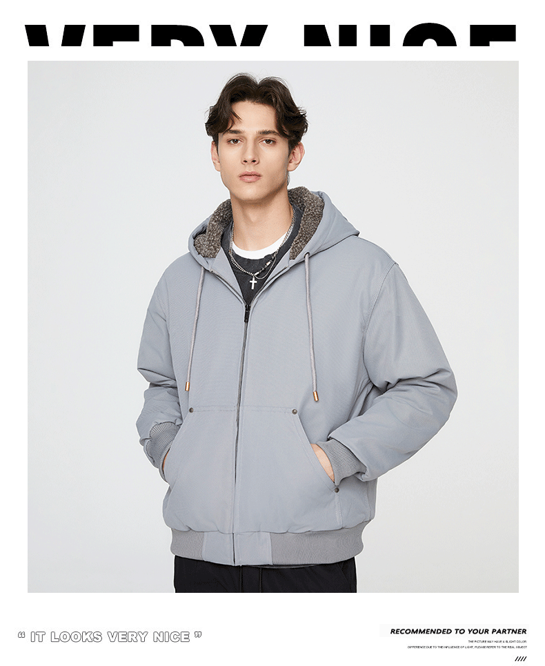 OLA 冬季新款男士加厚连帽开衫卫衣个性简约宽松外套时尚休闲