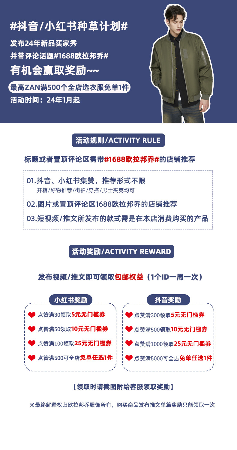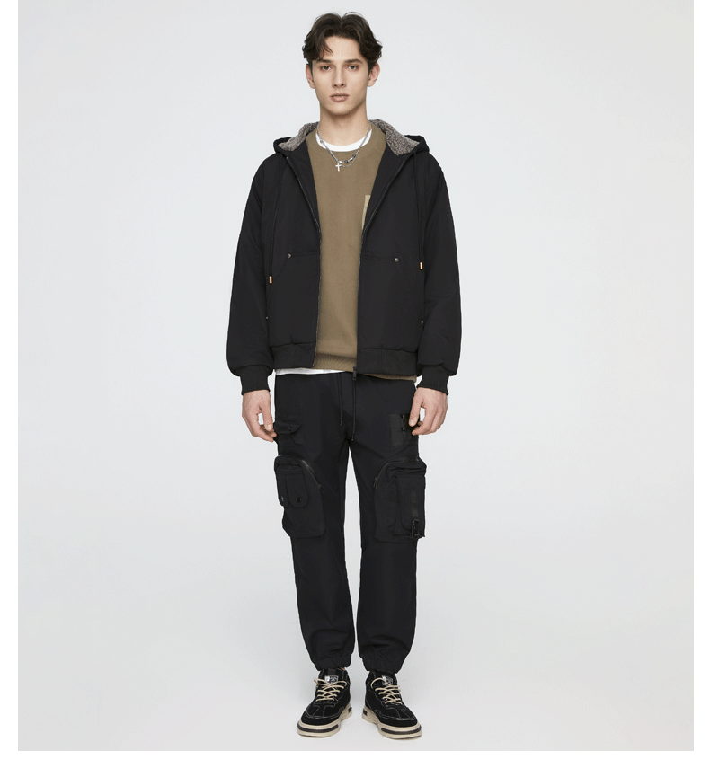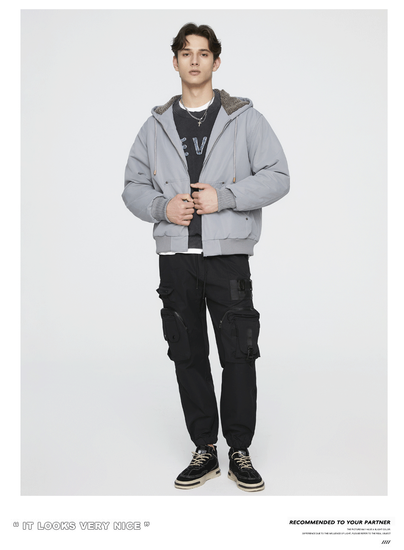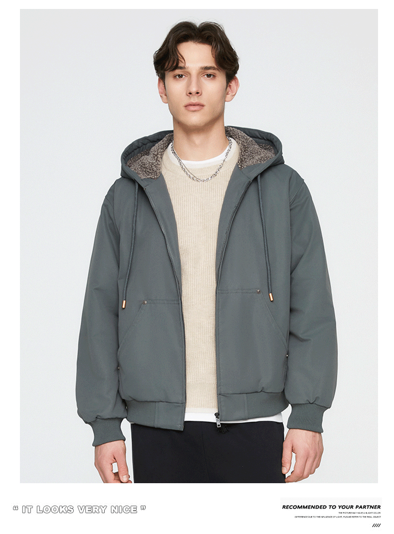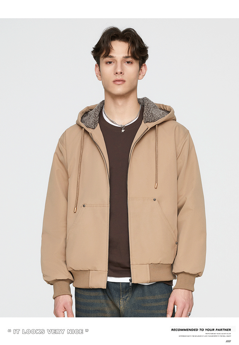 OLA 冬季新款男士加厚连帽开衫卫衣个性简约宽松外套时尚休闲