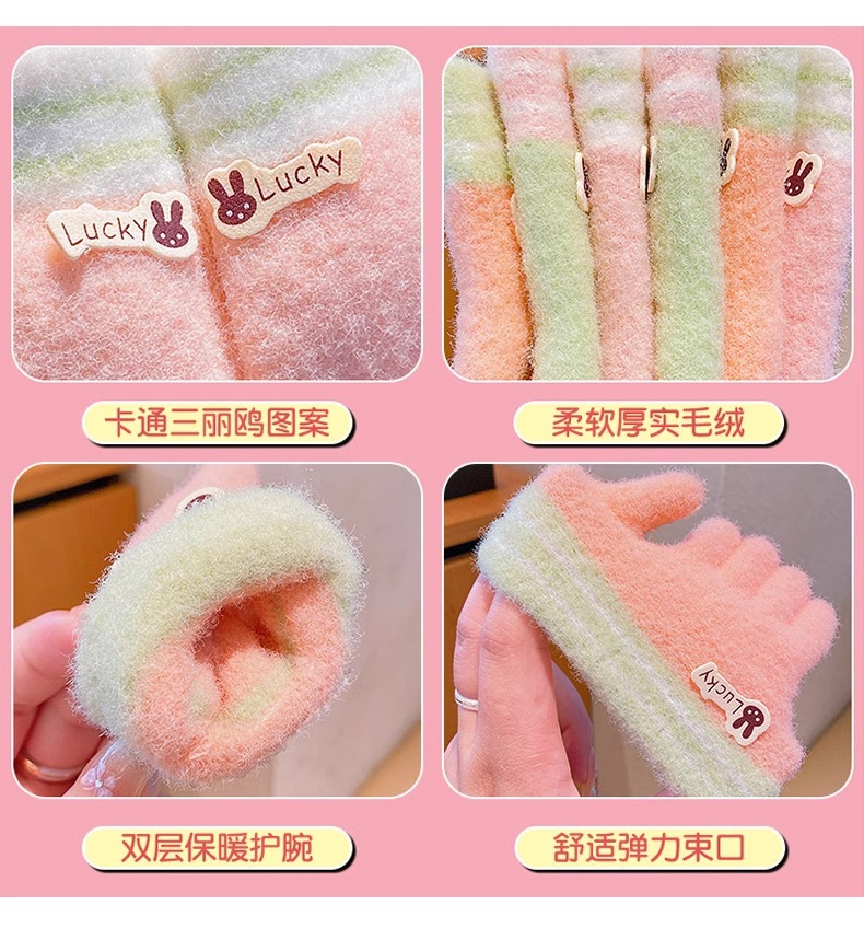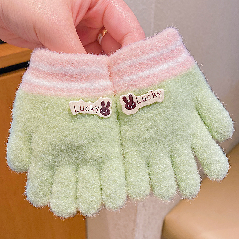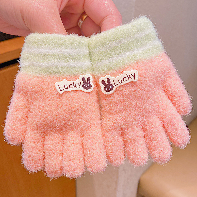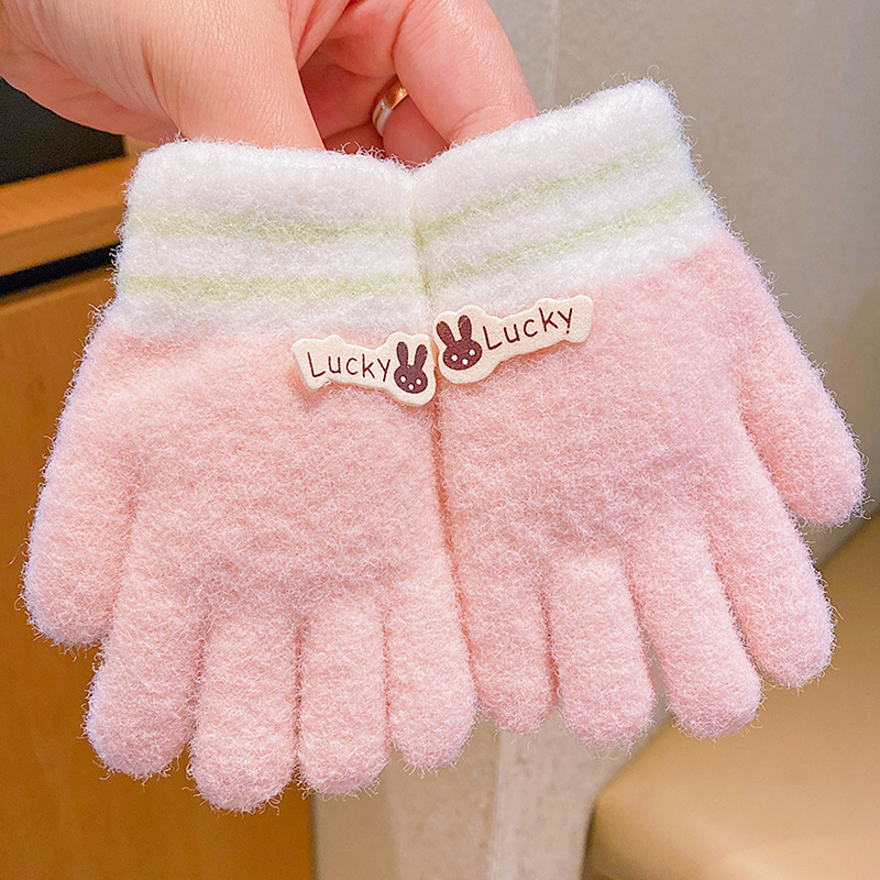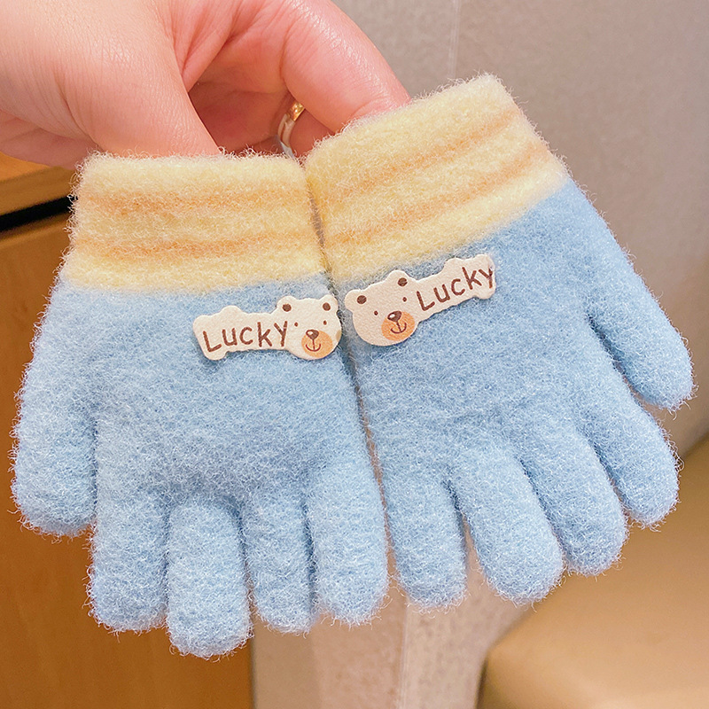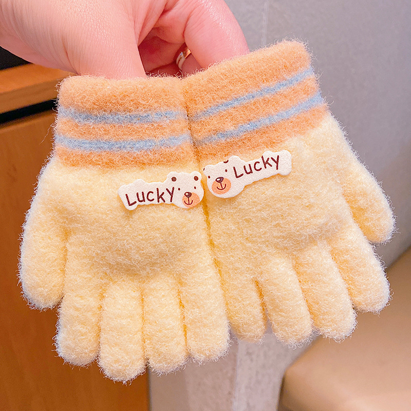 어린이 작은 토끼 장갑 손가락 아기 가을과 겨울 소년과 소녀 곰 다섯 손가락 두꺼운 0-3 세 따뜻한