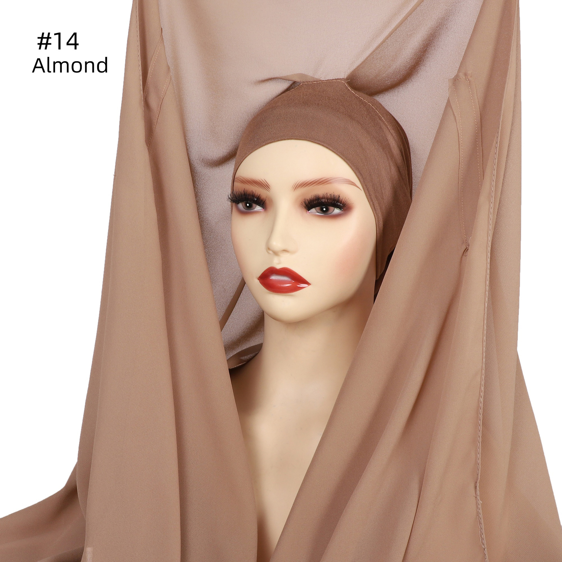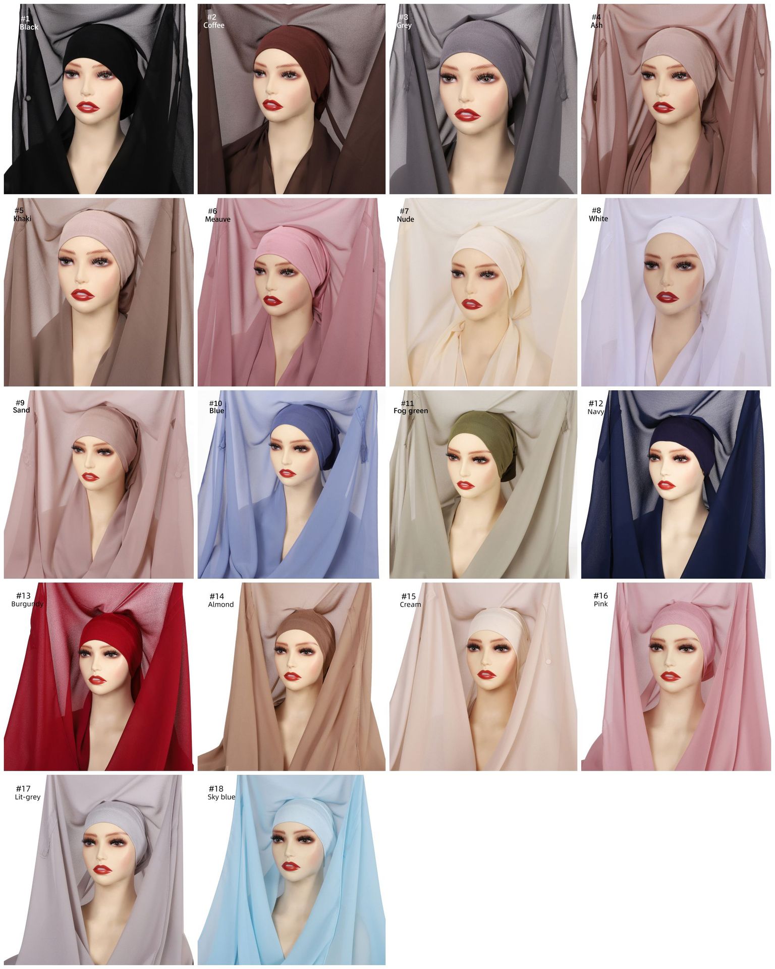注:打底帽是莫代尔材质,长巾是雪纺材质,2款材质不同,搭配起来也稍有色差的,围巾打底帽磁扣是一体的,不可拆卸。介意请勿拍。