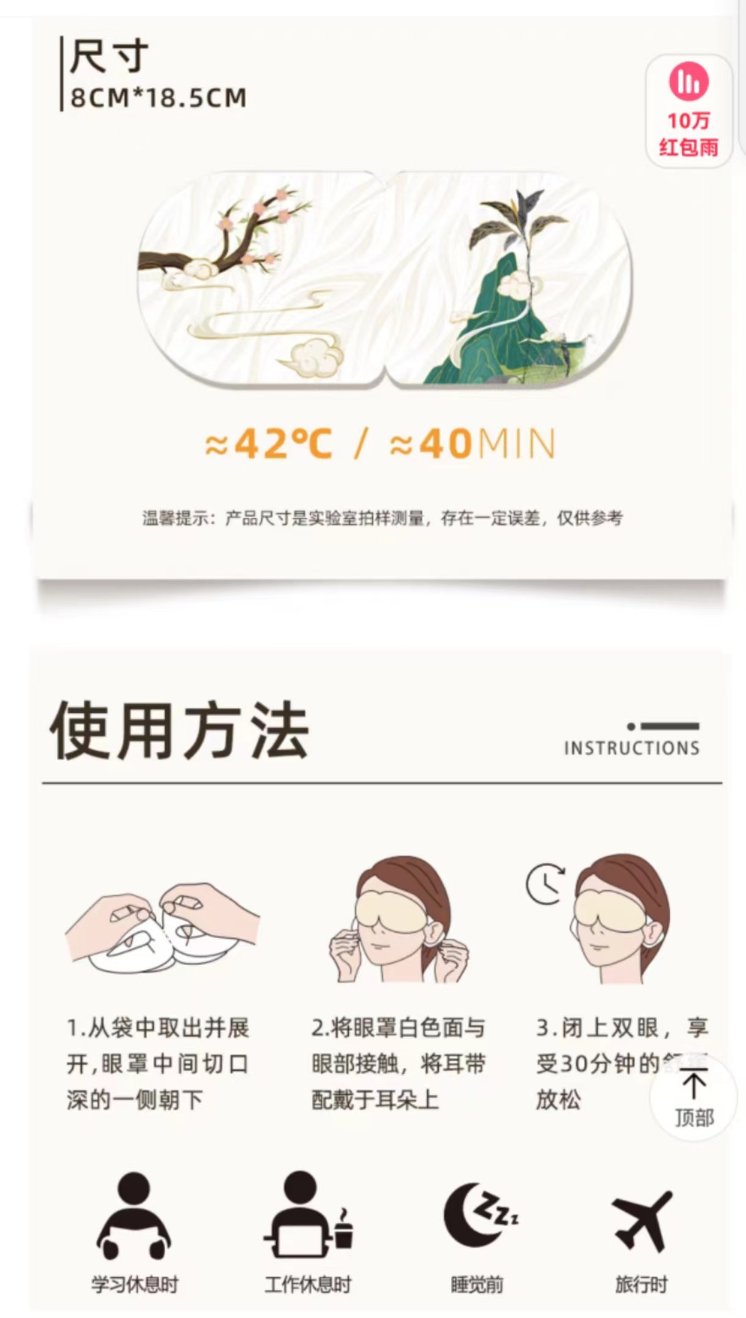 • Ai Nuan Liusha 스팀 아이 마스크 무향 10개/박스