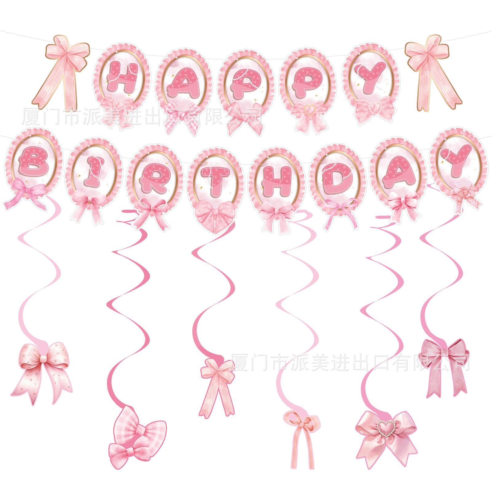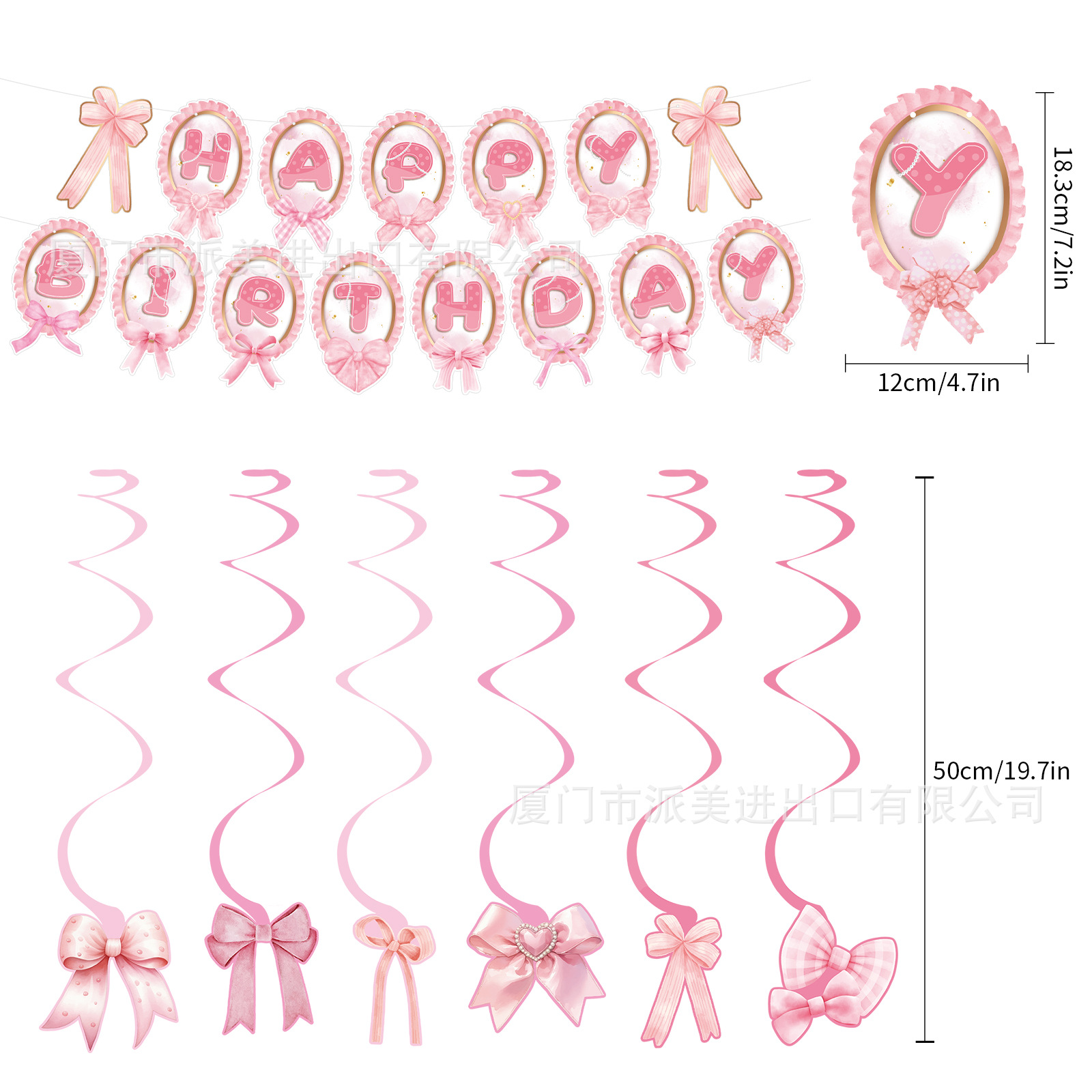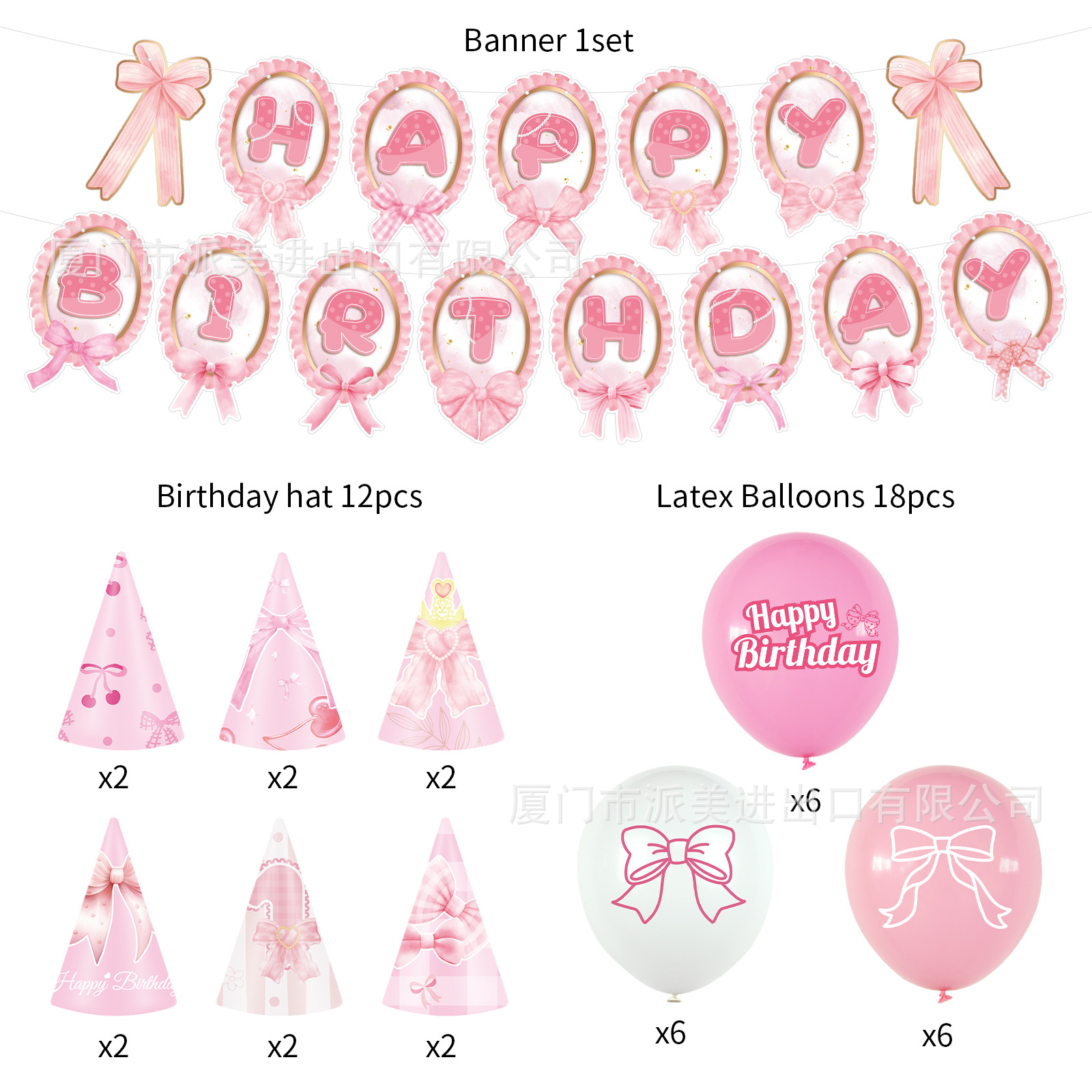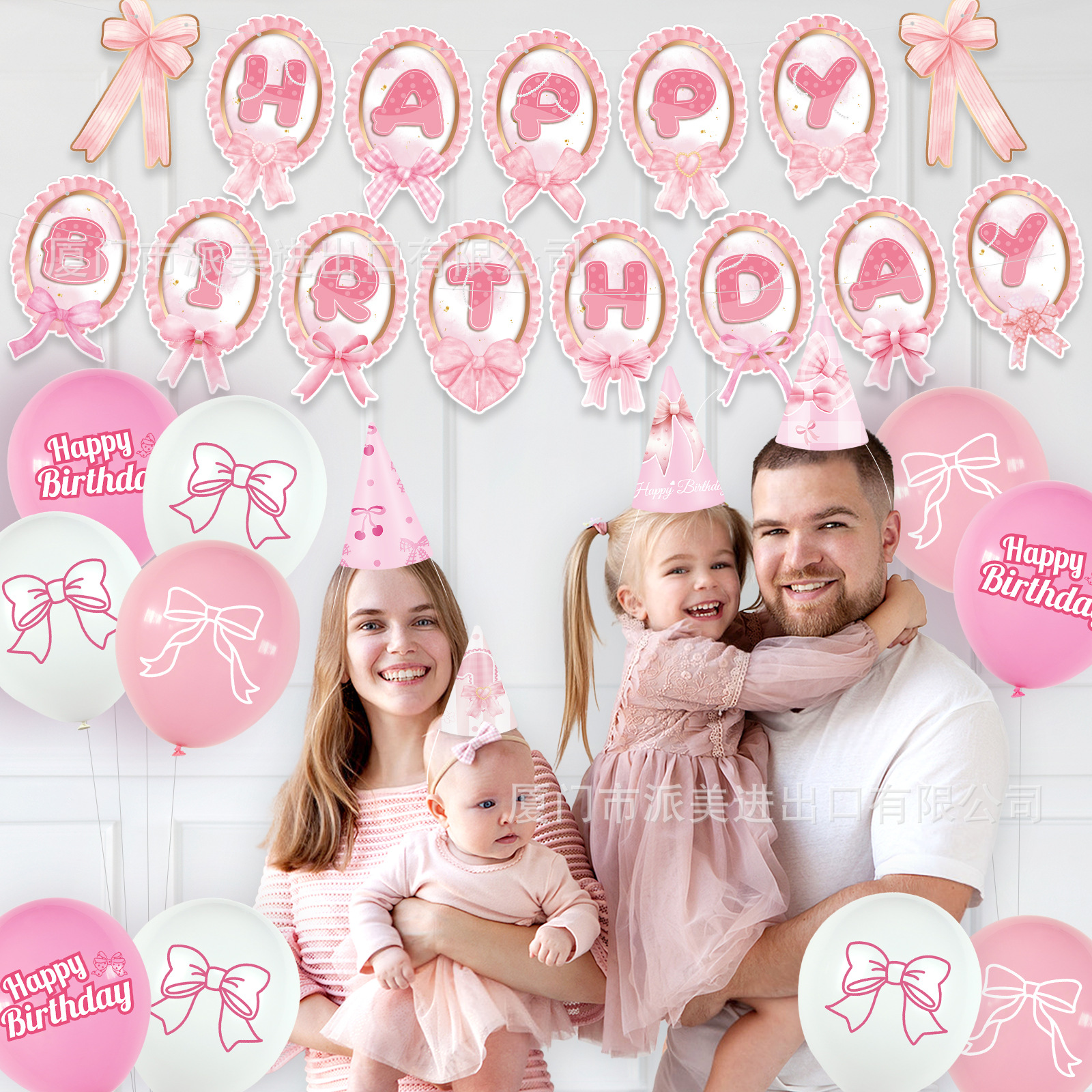 1 년 된 핑크 활 테마 파티 장식 핑크 공주 장면 레이아웃 선물 가방 풀 플래그 크기 삽입