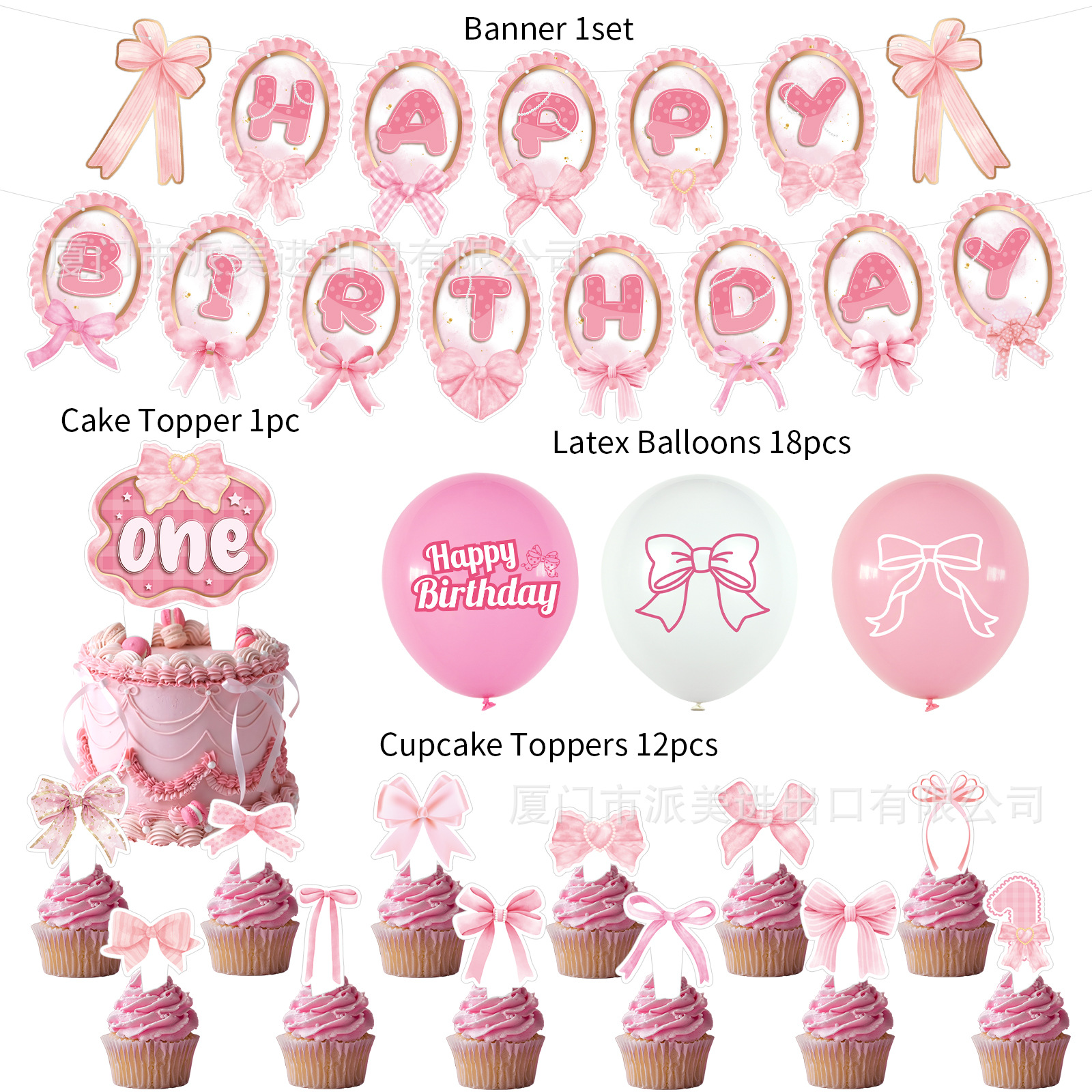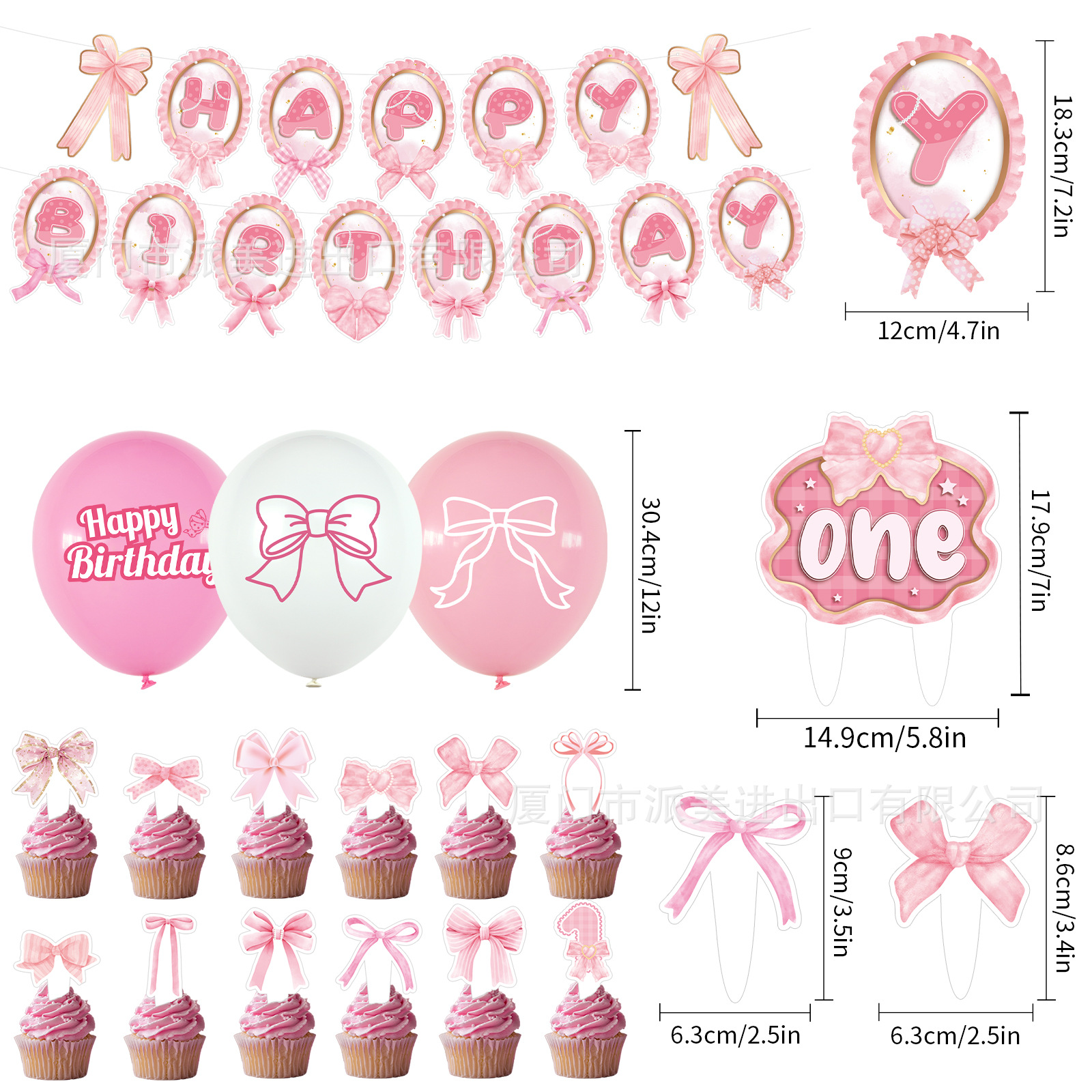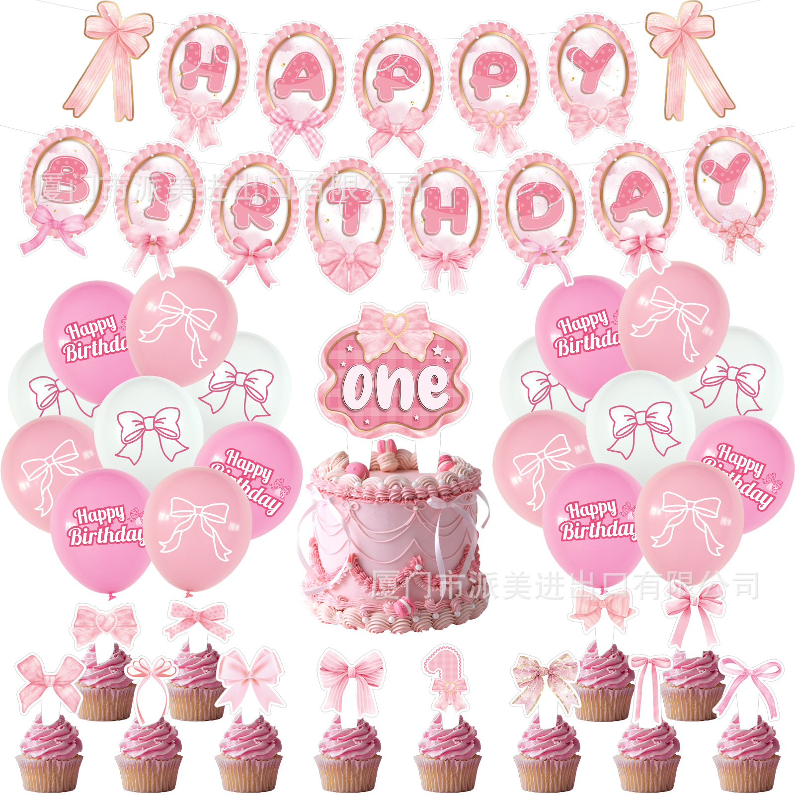 名称:1周岁粉色蝴蝶结主题装饰套装