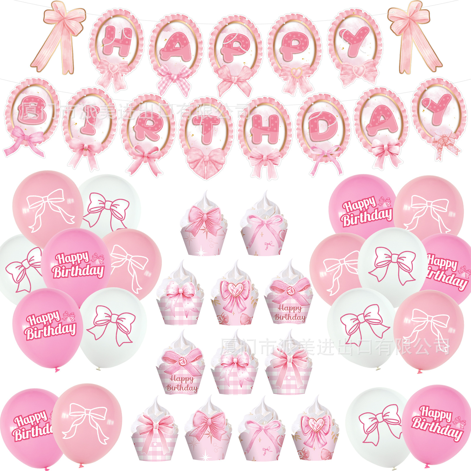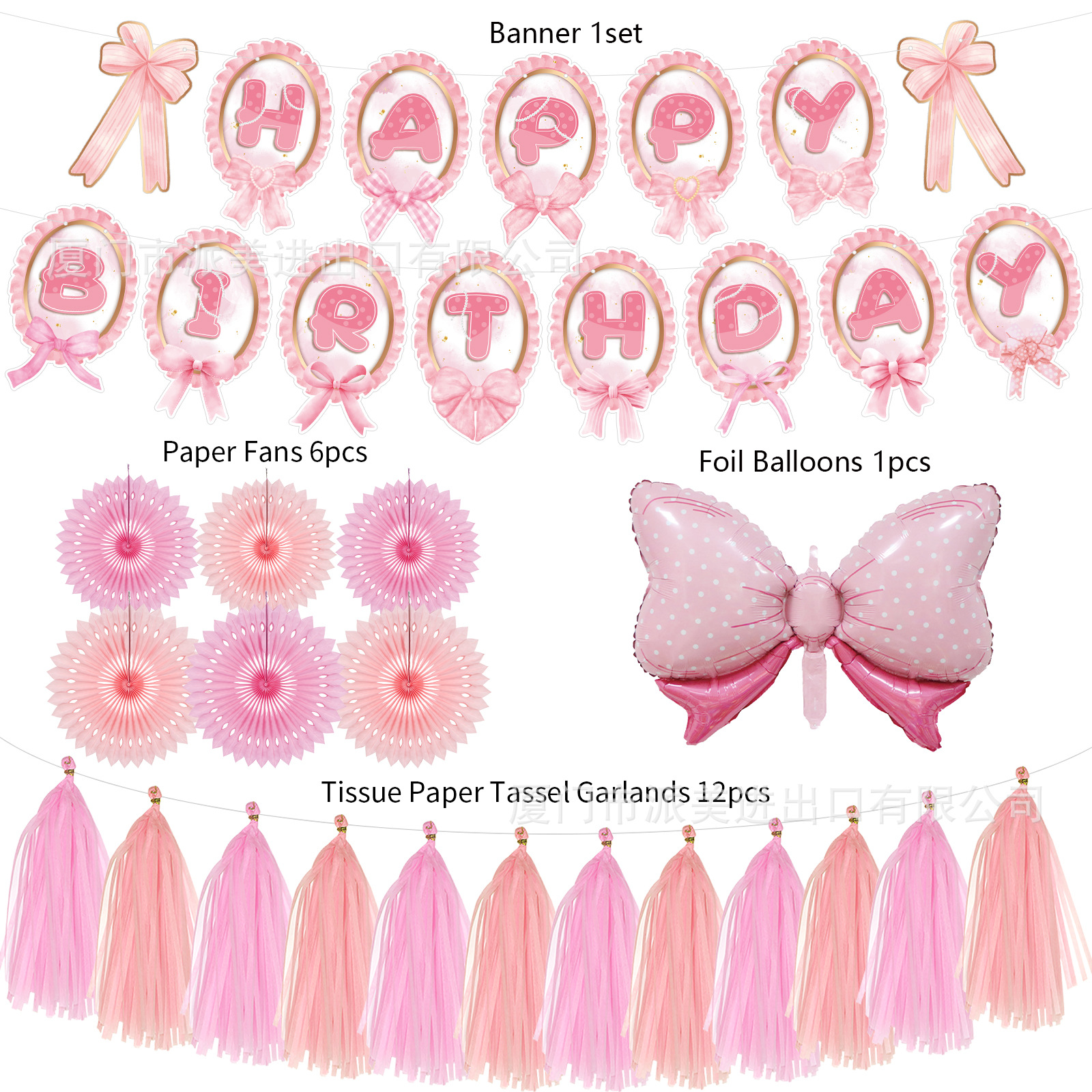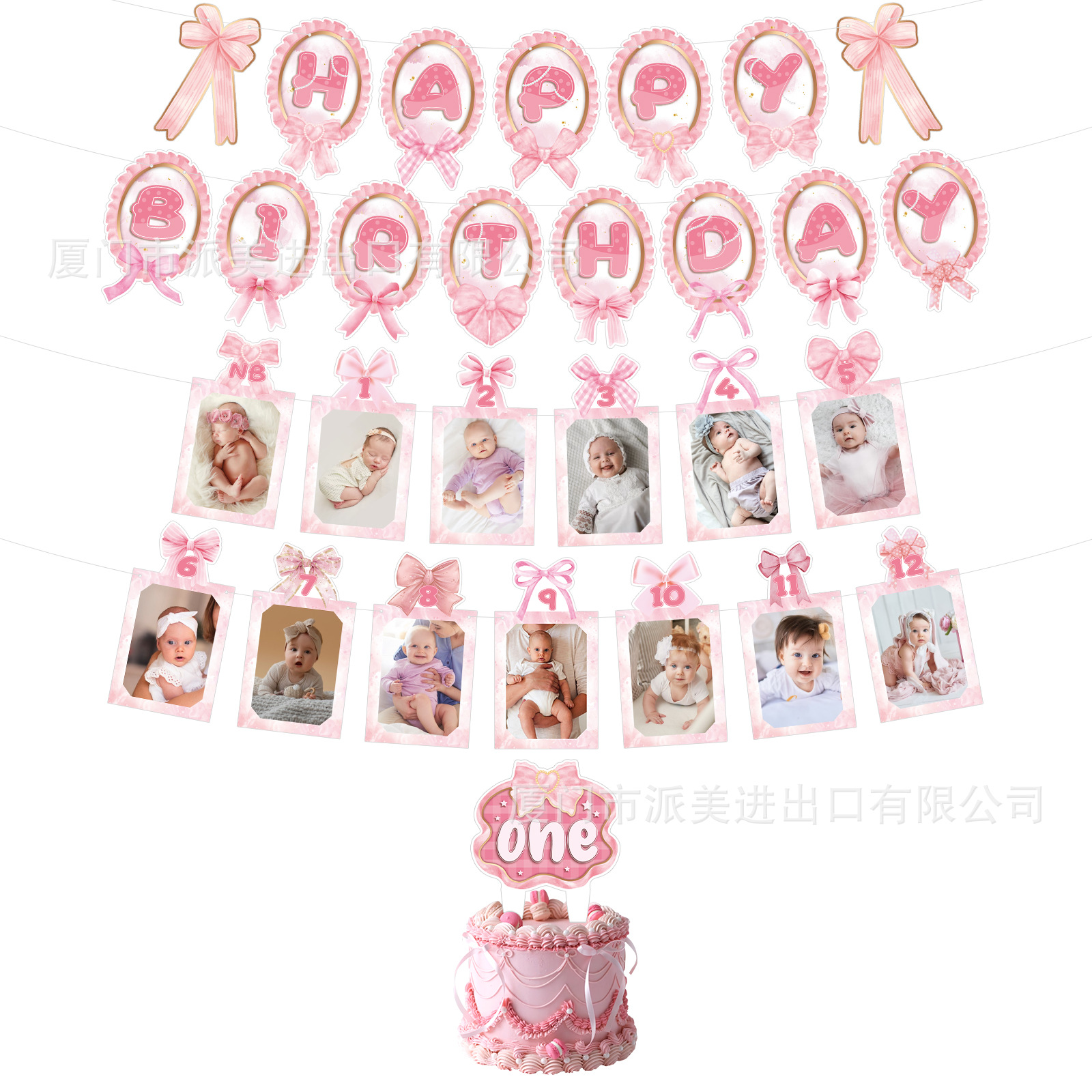 名称:1周岁粉色蝴蝶结主题装饰套装