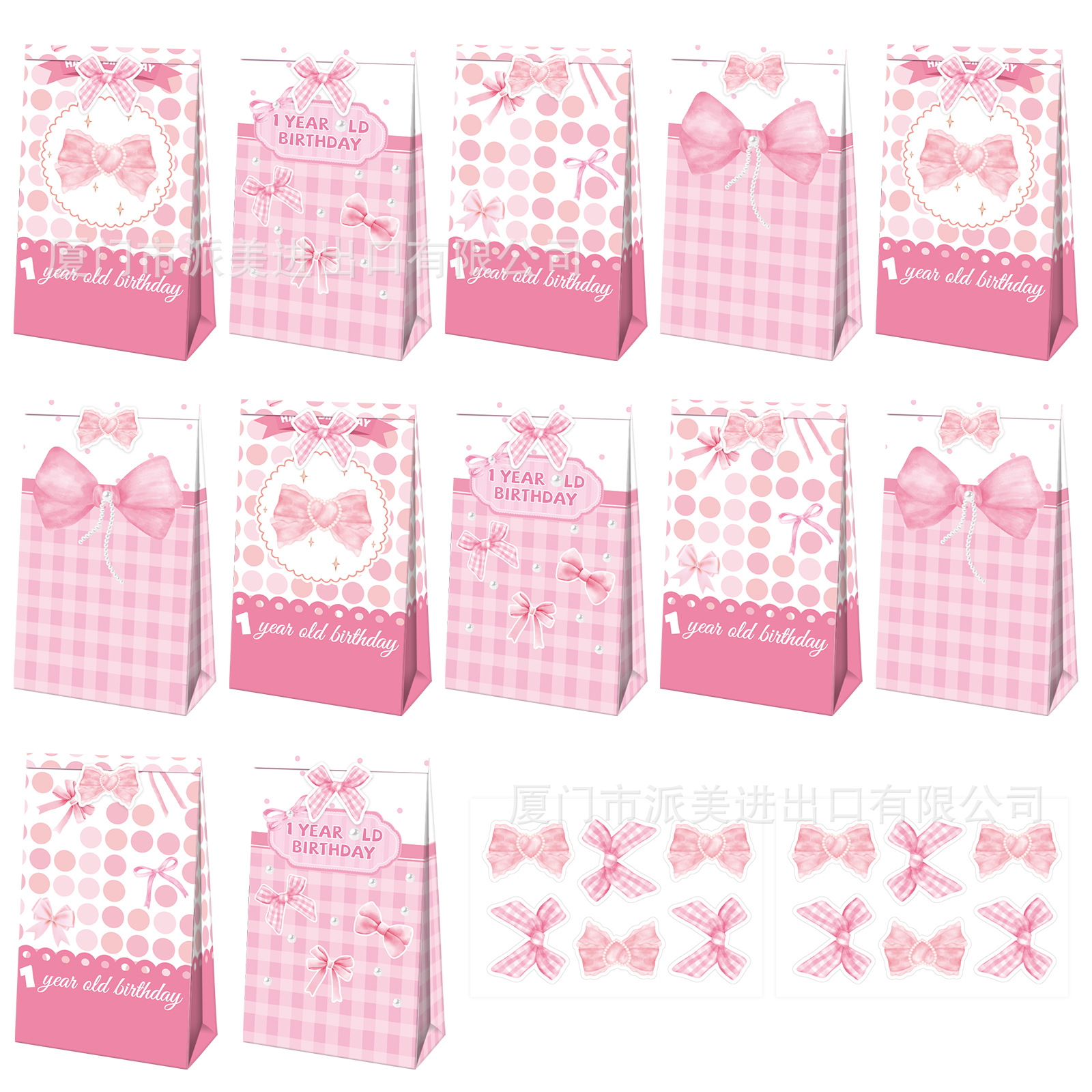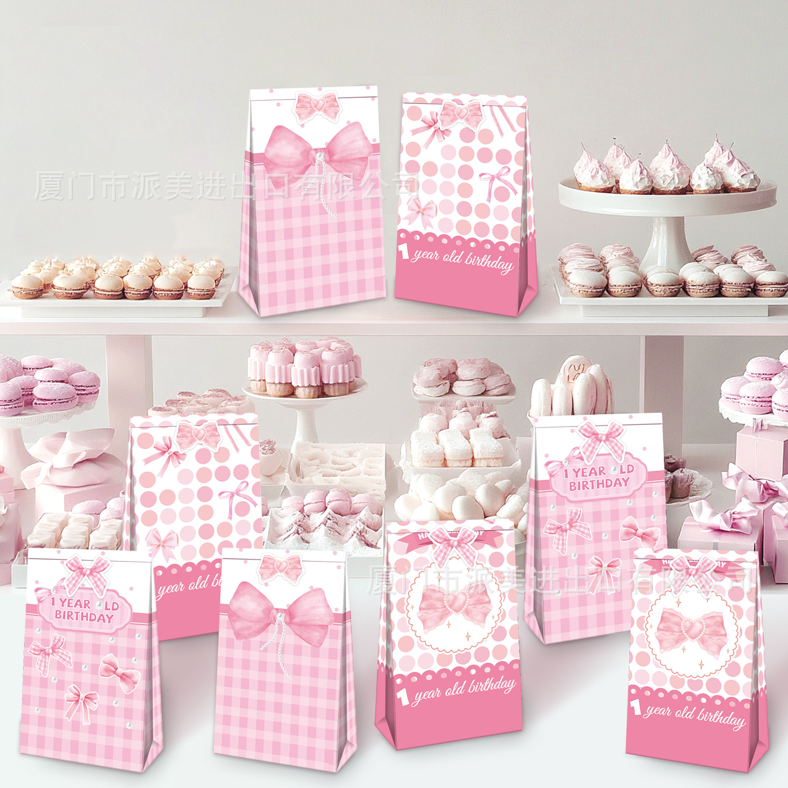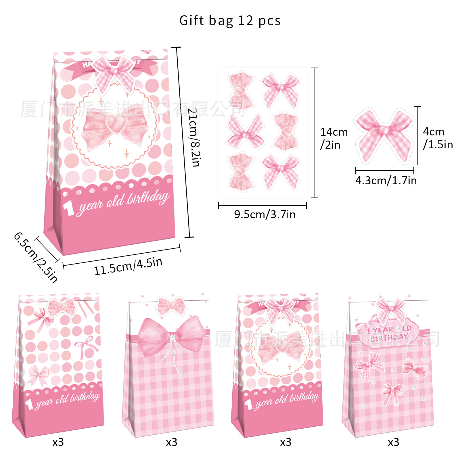 1 년 된 핑크 활 테마 파티 장식 핑크 공주 장면 레이아웃 선물 가방 풀 플래그 크기 삽입스토어 가기