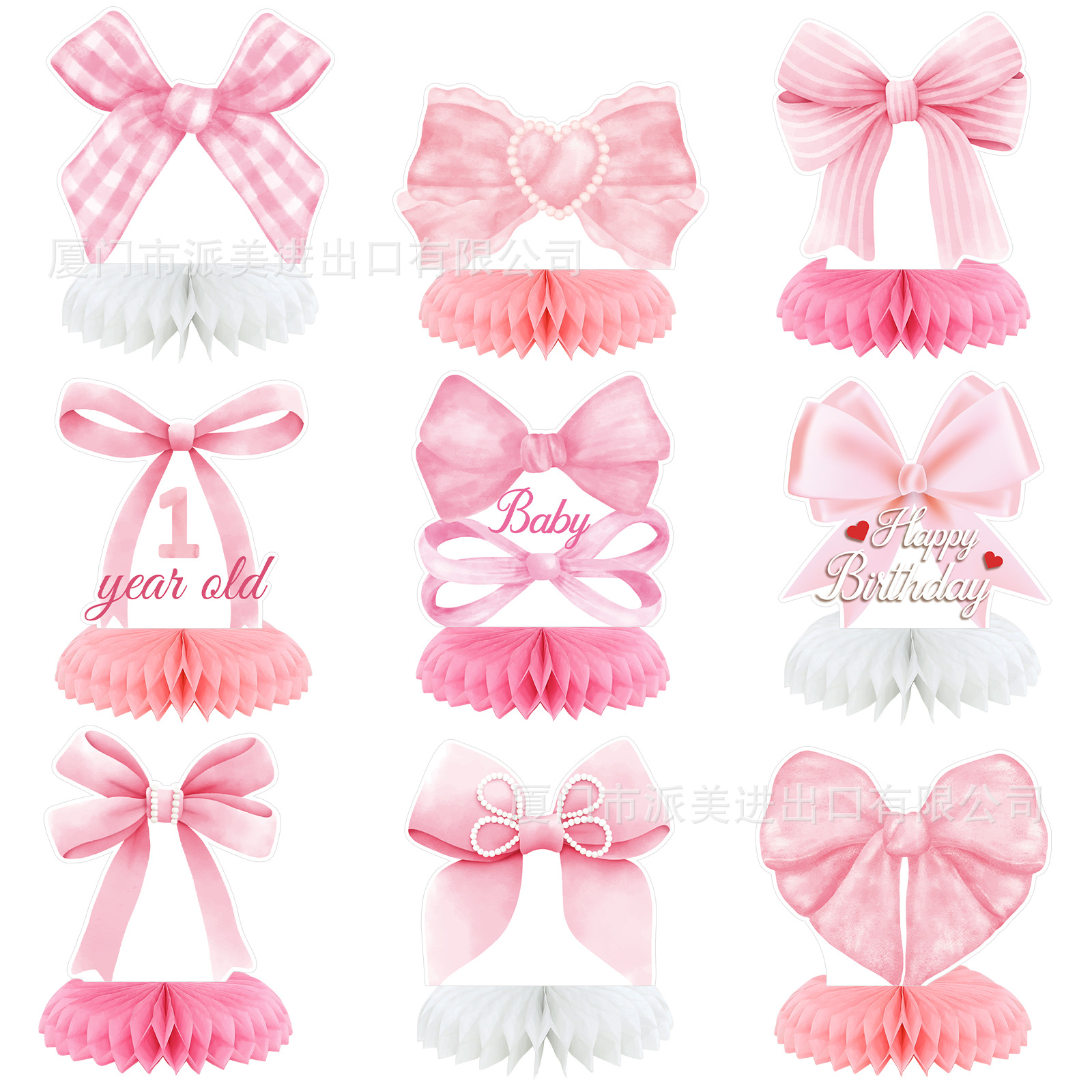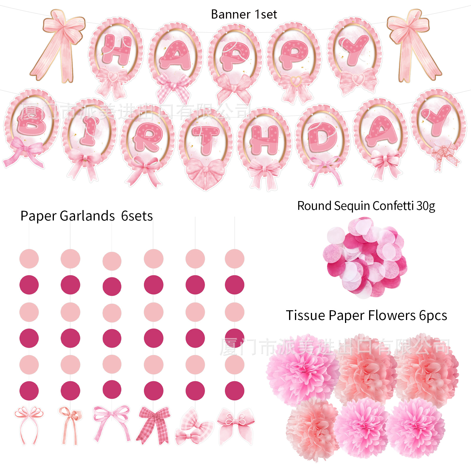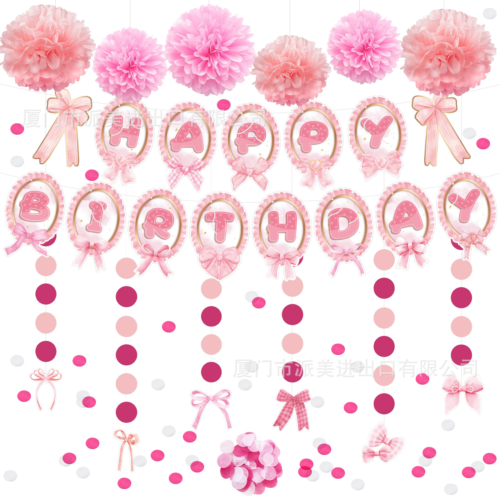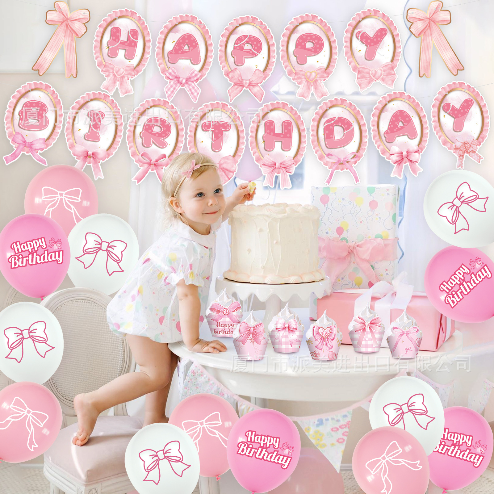 1 년 된 핑크 활 테마 파티 장식 핑크 공주 장면 레이아웃 선물 가방 풀 플래그 크기 삽입스토어 가기