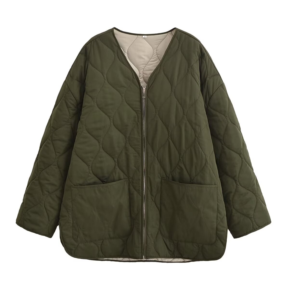 UC & ZA 국경 여성 의류 2024 가을과 겨울 새로운 V-목 느슨한 따뜻한 면화 패딩 재킷 코트 1255792