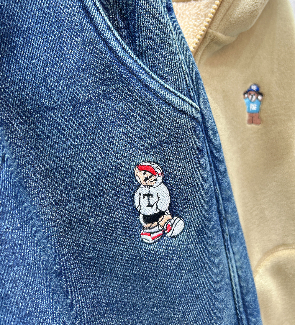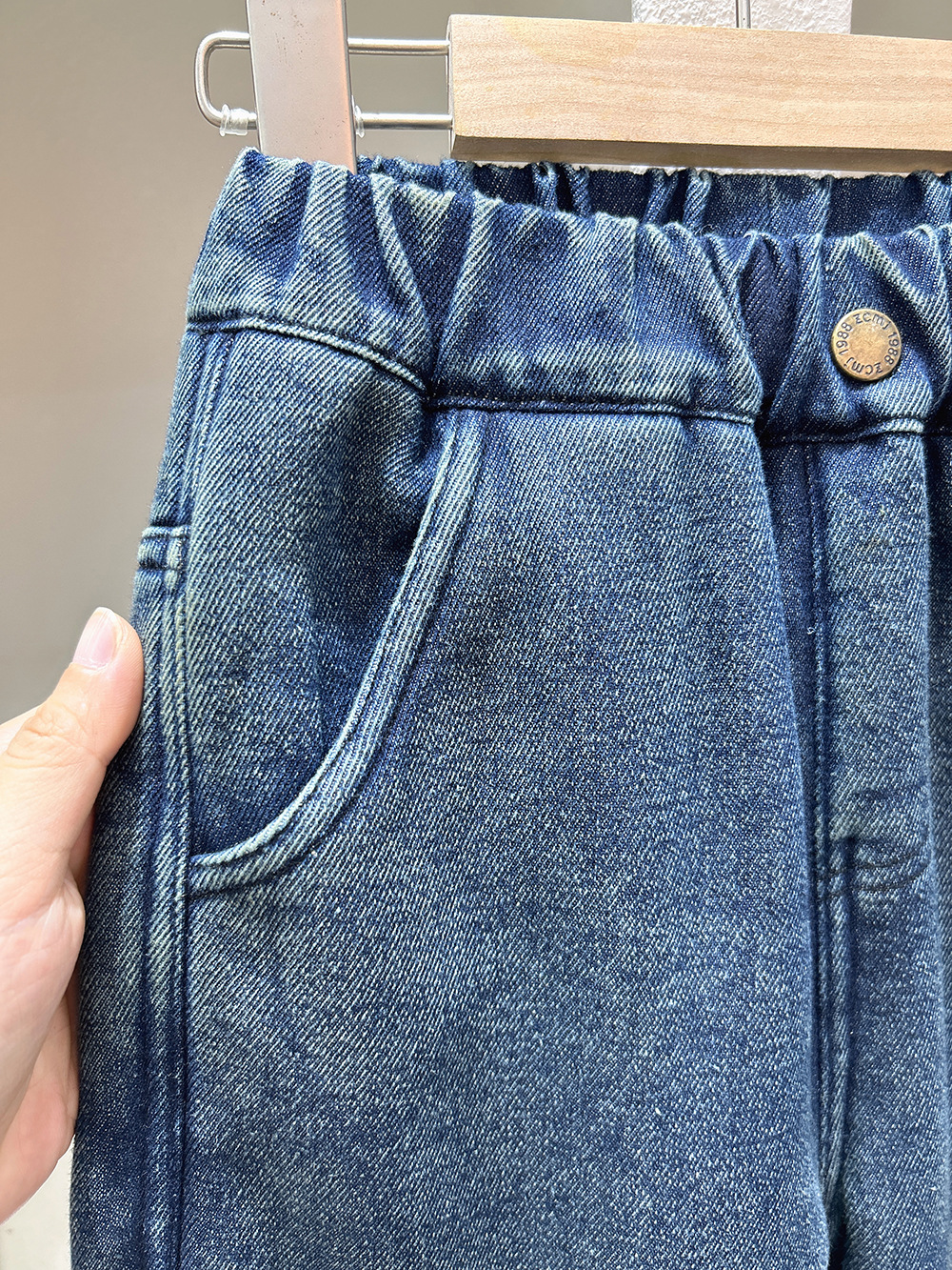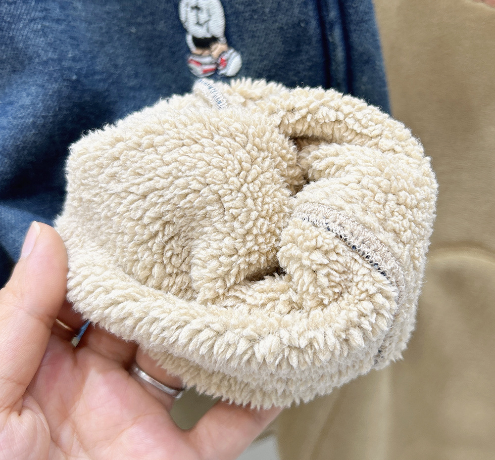 어린이 기모 청바지 2024 가을과 겨울 새로운 소년 두꺼운 따뜻한 바지 아기 만화 자수 바지 조수스토어 가기