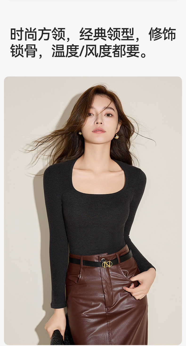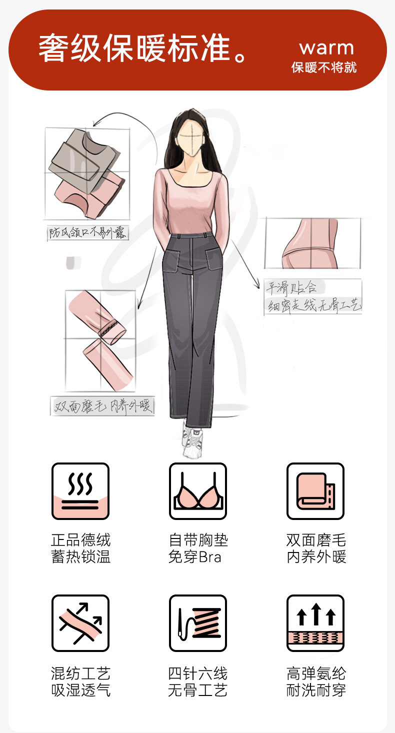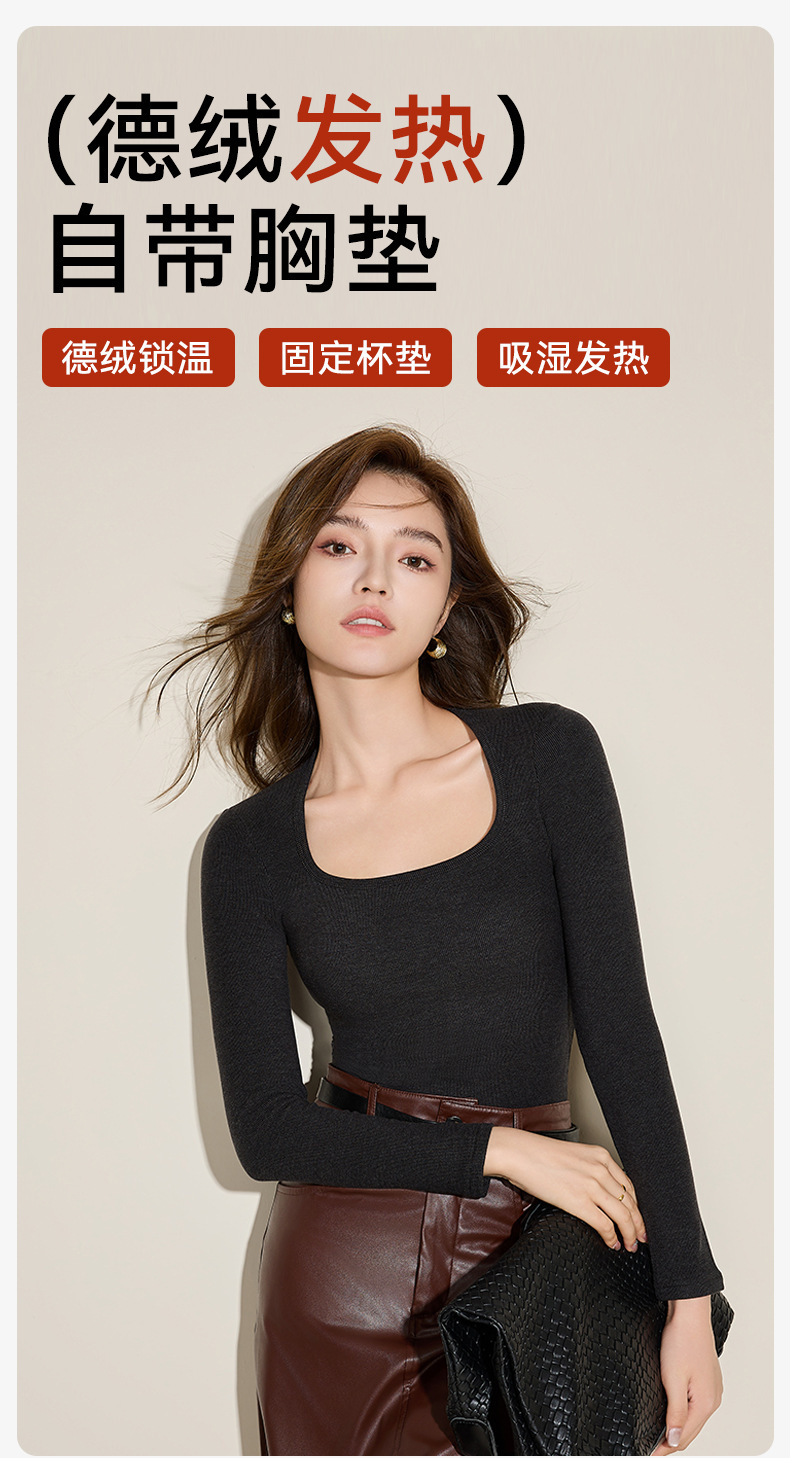 데롱 보온 긴팔 여성용 탑, 가슴 패드 내장, 기모 및 두꺼운 자가발열 이너웨어, 가을 겨울용스토어 가기