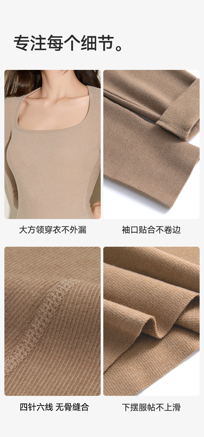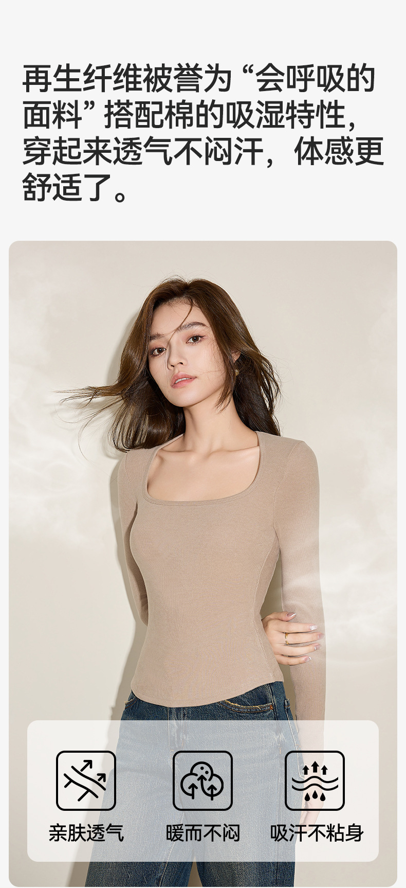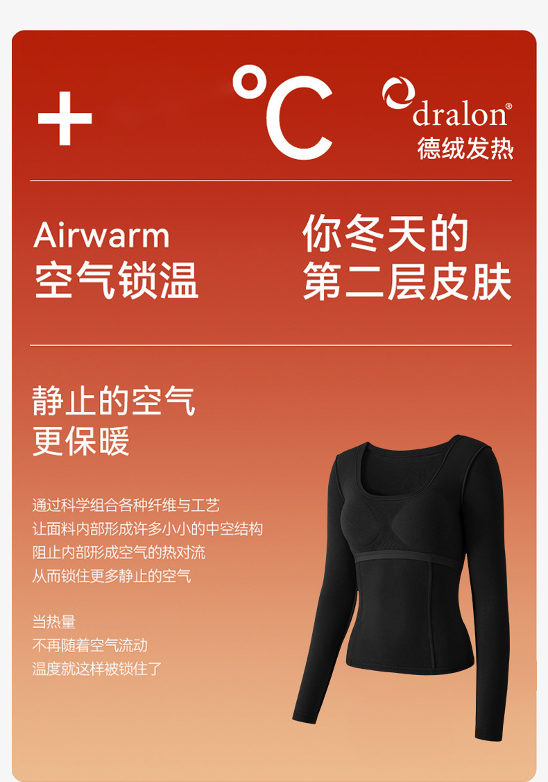 데롱 보온 긴팔 여성용 탑, 가슴 패드 내장, 기모 및 두꺼운 자가발열 이너웨어, 가을 겨울용스토어 가기