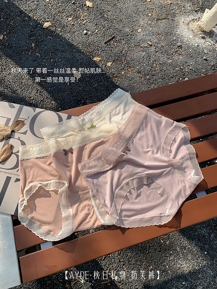 가을 개인 우유 피부 바지 뽕나무 실크 항균 속옷 여성의 편안한 누드 부드러운 엉덩이 허리 삼각형 반바지