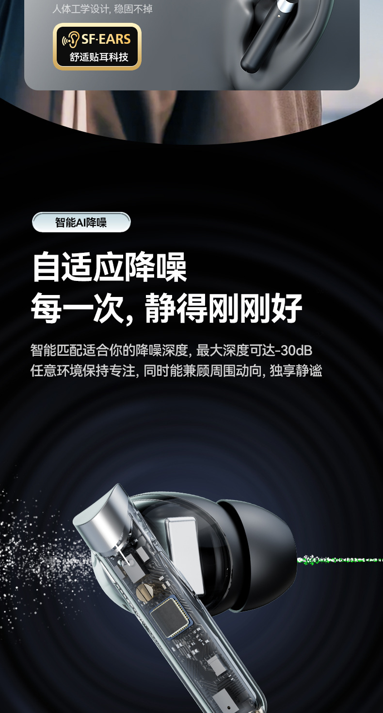 국경 간 새로운 ANC 능동 소음 감소 블루투스 헤드셋 귀 긴 내구성 방수 높은 음질 공장 도매 5