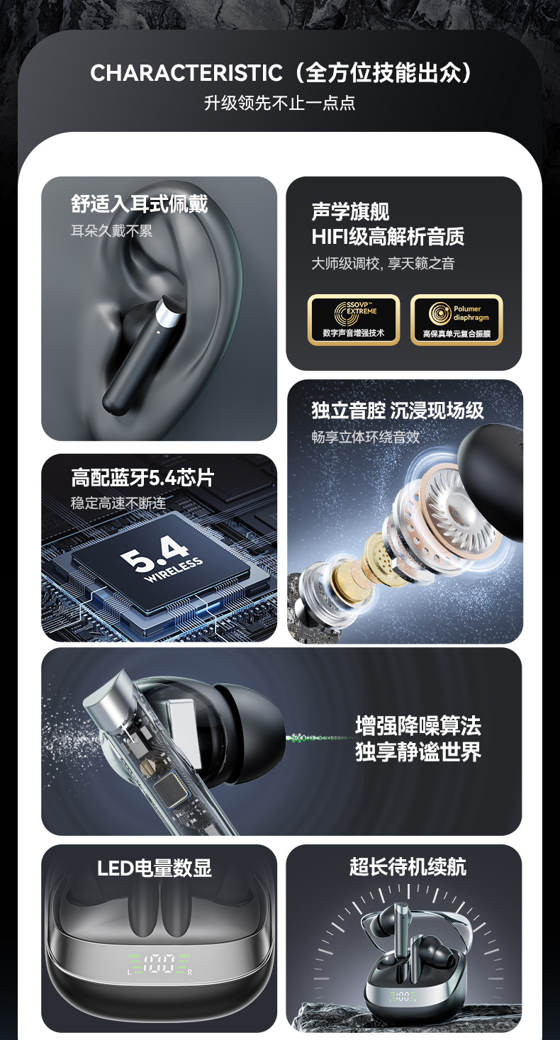 국경 간 새로운 ANC 능동 소음 감소 블루투스 헤드셋 귀 긴 내구성 방수 높은 음질 공장 도매 5스토어 가기