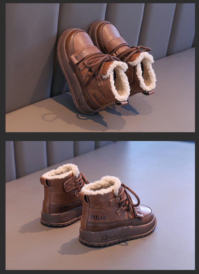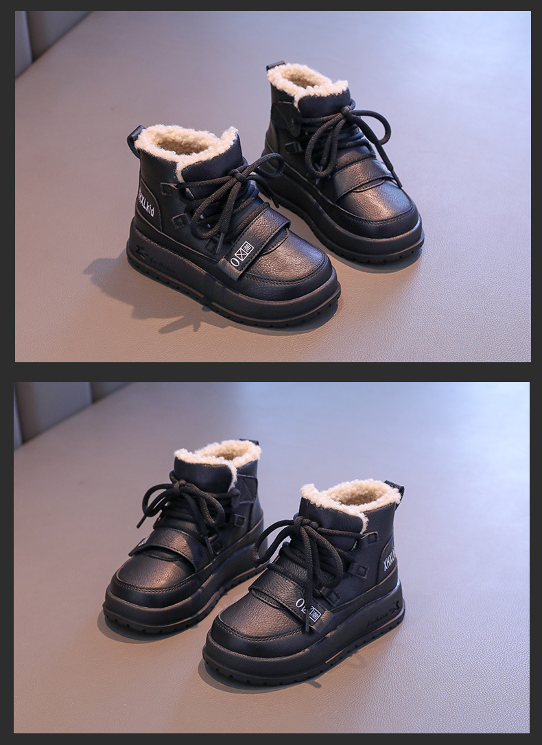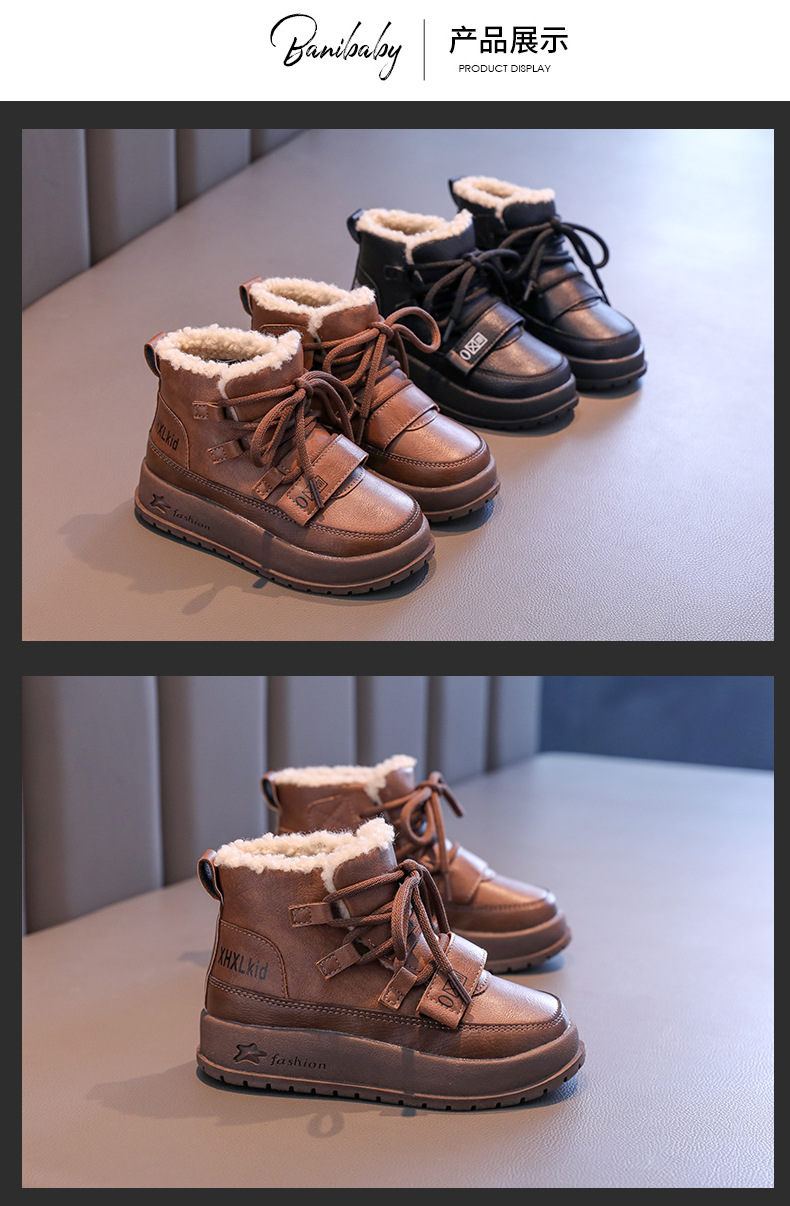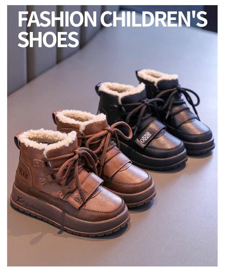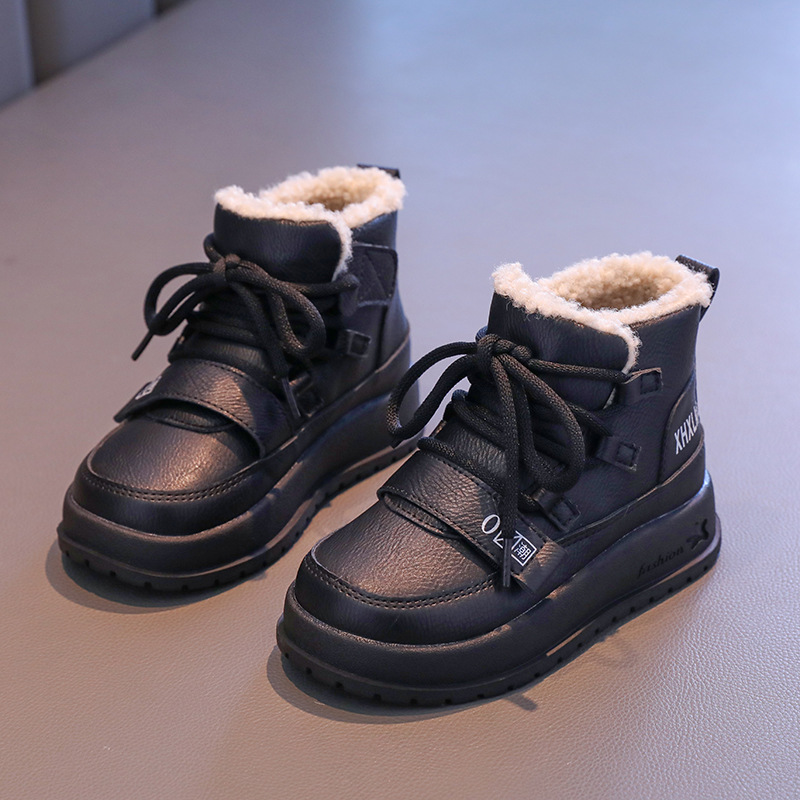 여자 코튼 부츠 2024 겨울 새 소년 레트로 기모 마틴 부츠 소프트 하단 미끄럼 방지 어린이 양모 발목 부츠스토어 가기