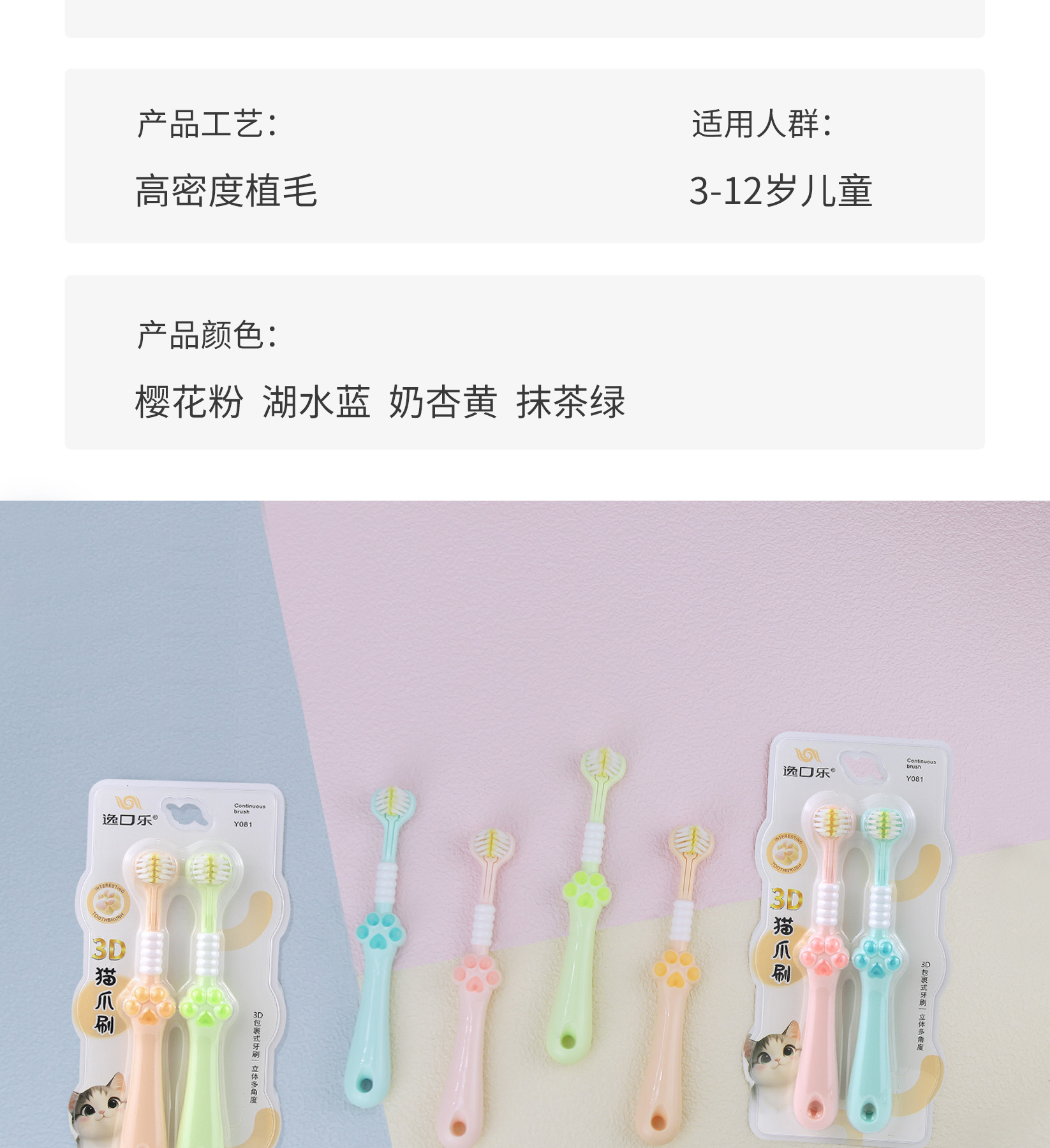 어린이용 칫솔 도매 2개입 부드러운 모 세면용 고양이 발톱 칫솔 잇몸 출혈 방지 다양한 사이즈 3-12세 유치 보호