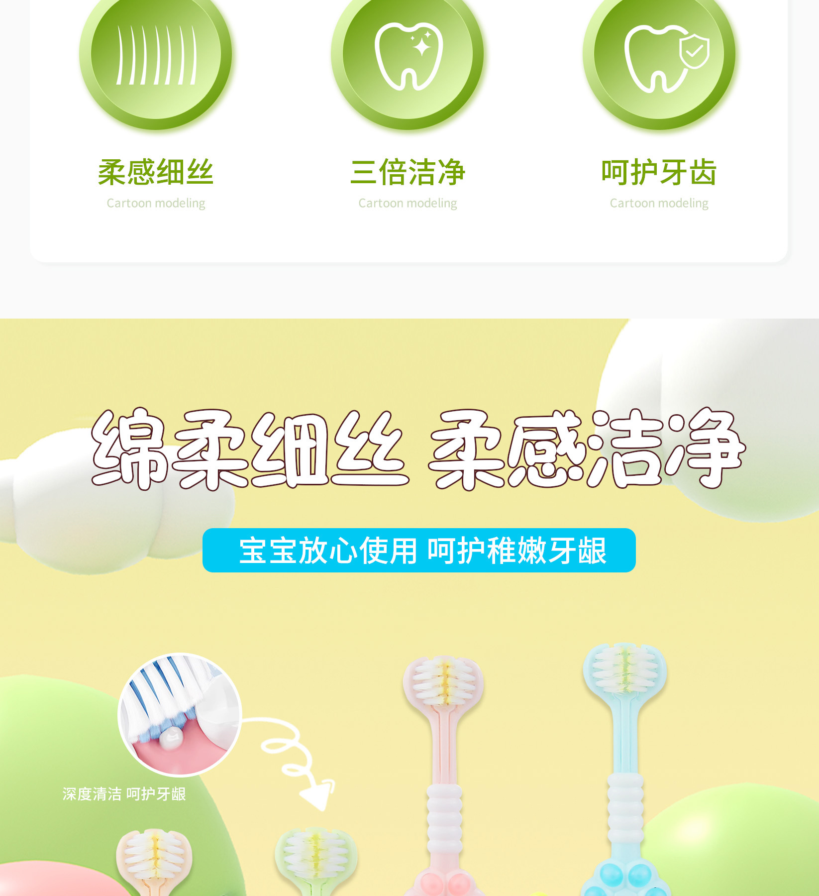 어린이용 칫솔 도매 2개입 부드러운 모 세면용 고양이 발톱 칫솔 잇몸 출혈 방지 다양한 사이즈 3-12세 유치 보호스토어 가기