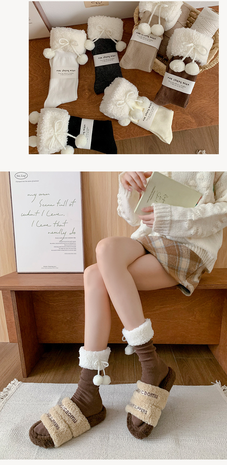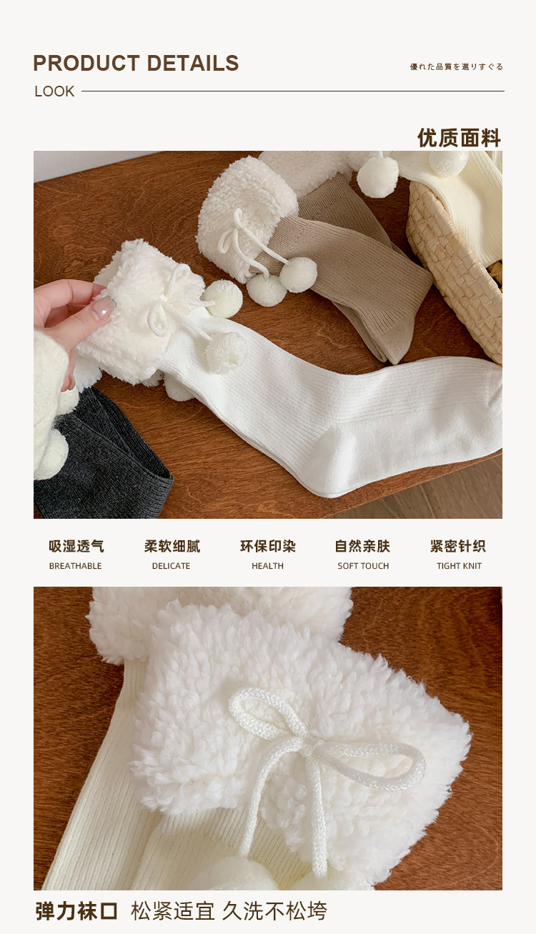 양말 여성의 가을과 겨울 새로운 양고기 모피 공 중간 길이 양말 일본 Jk 귀여운 단색 따뜻한 로리타 스타킹