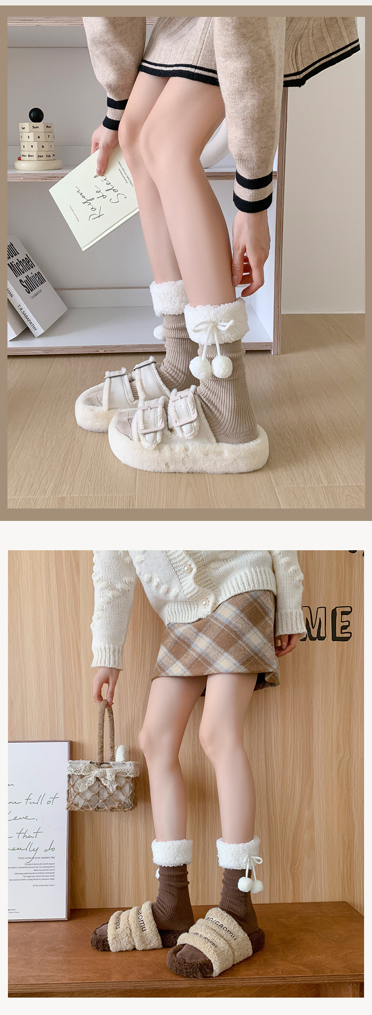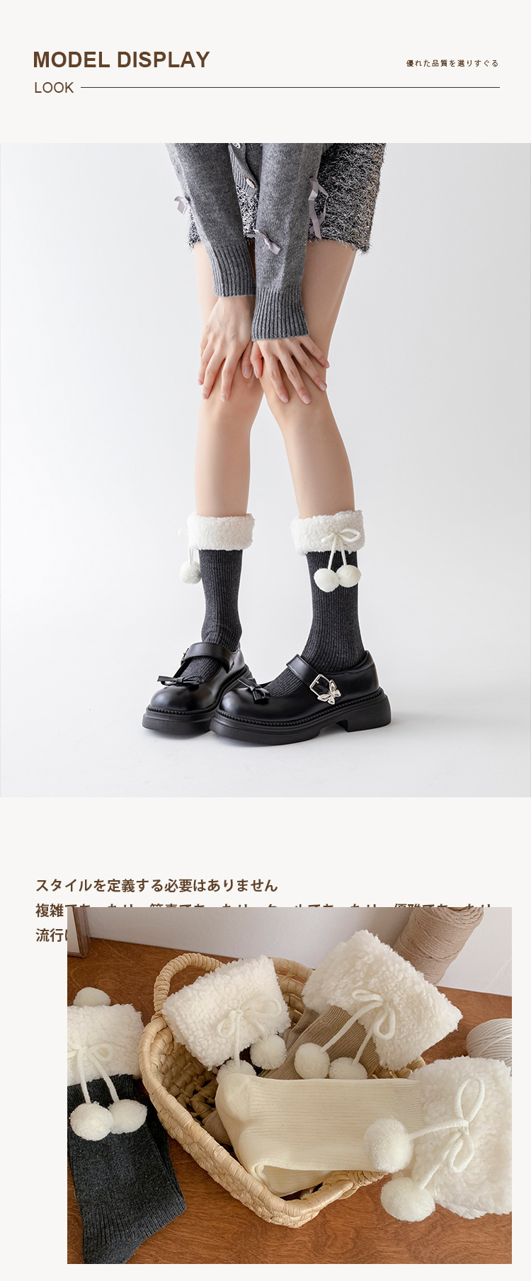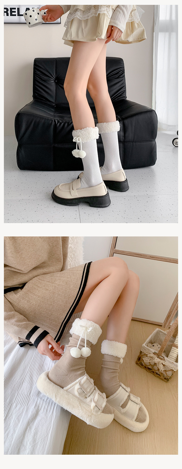 양말 여성의 가을과 겨울 새로운 양고기 모피 공 중간 길이 양말 일본 Jk 귀여운 단색 따뜻한 로리타 스타킹스토어 가기