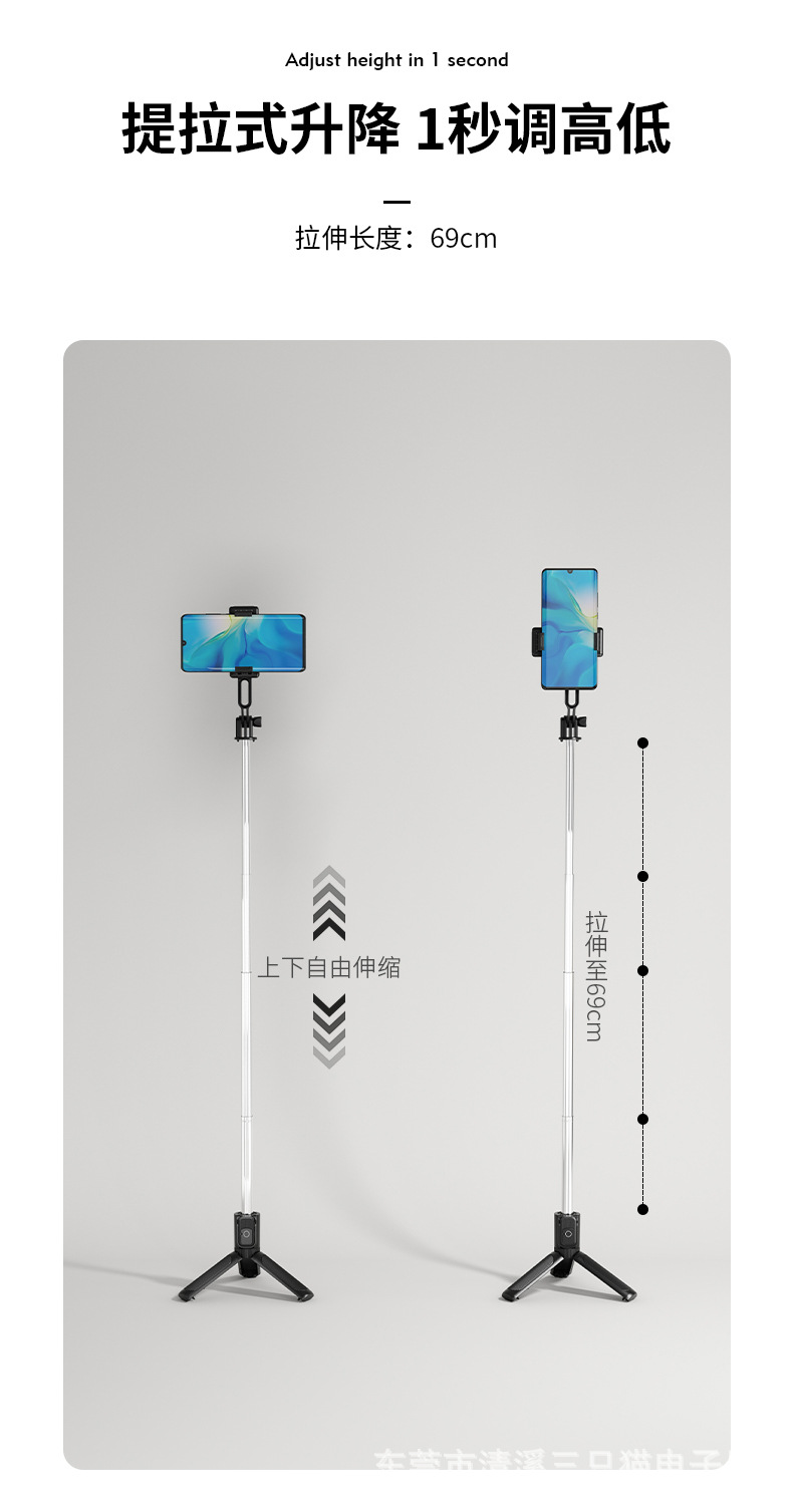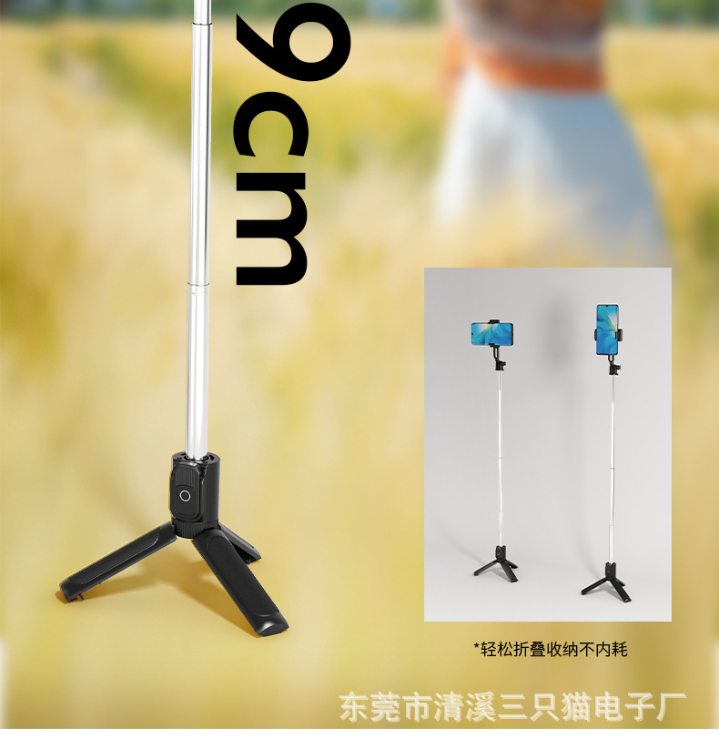 휴대용 미니 셀카 스틱 블루투스 조명 보충 여행 휴대용 휴대 전화 스탠드 카메라 아티팩트 바닥 삼각대 도매