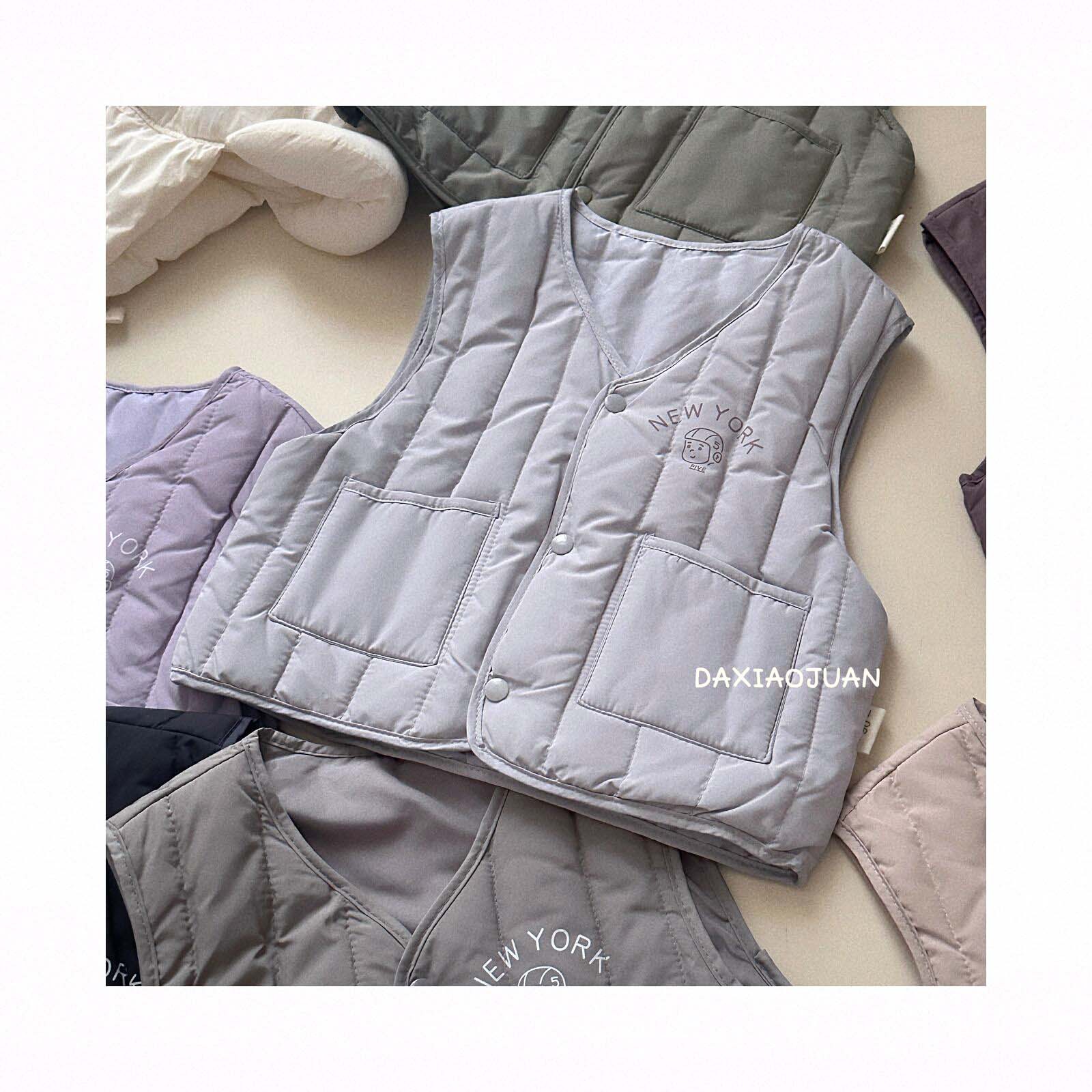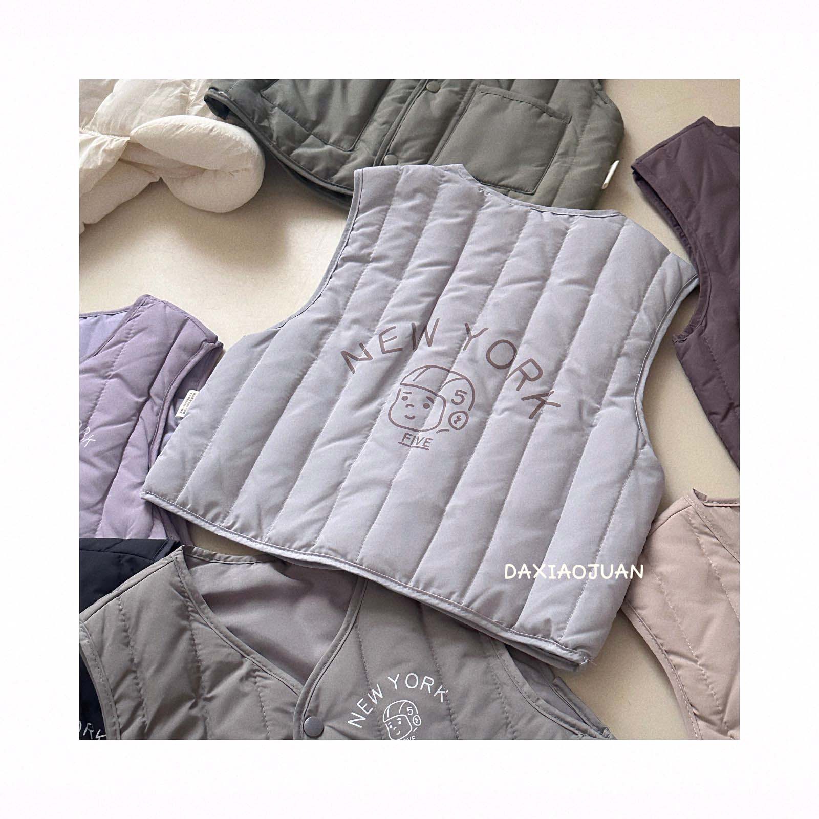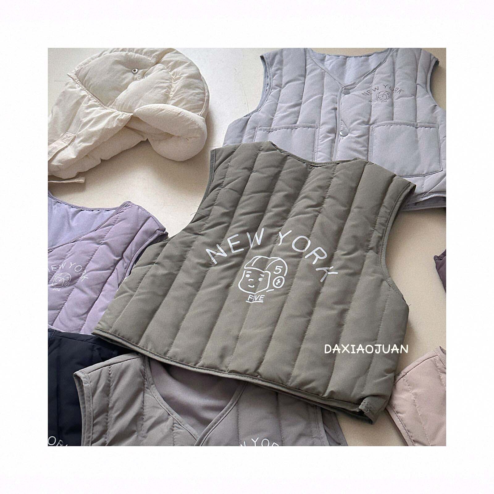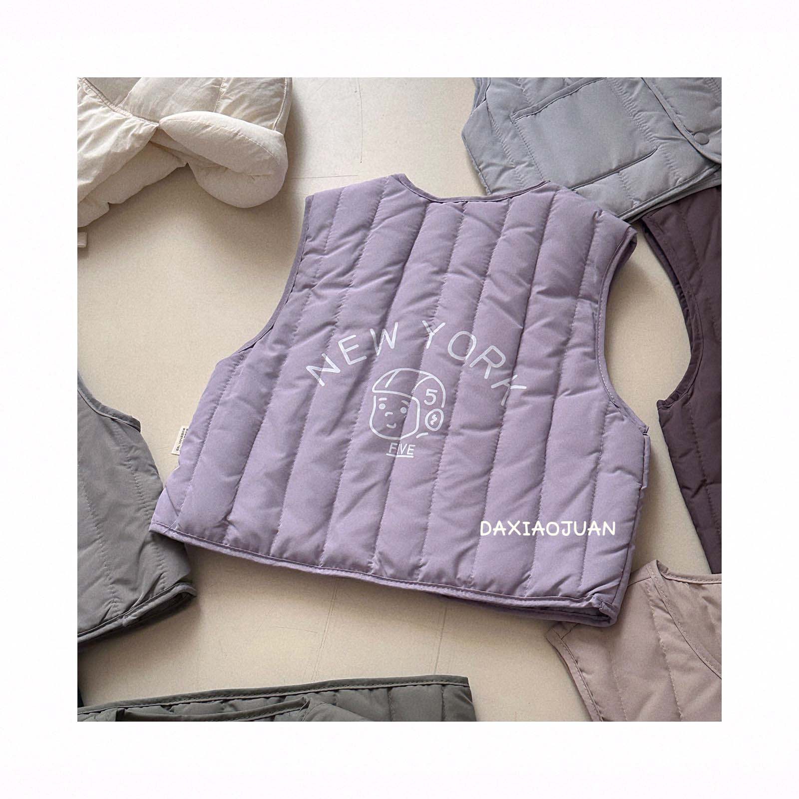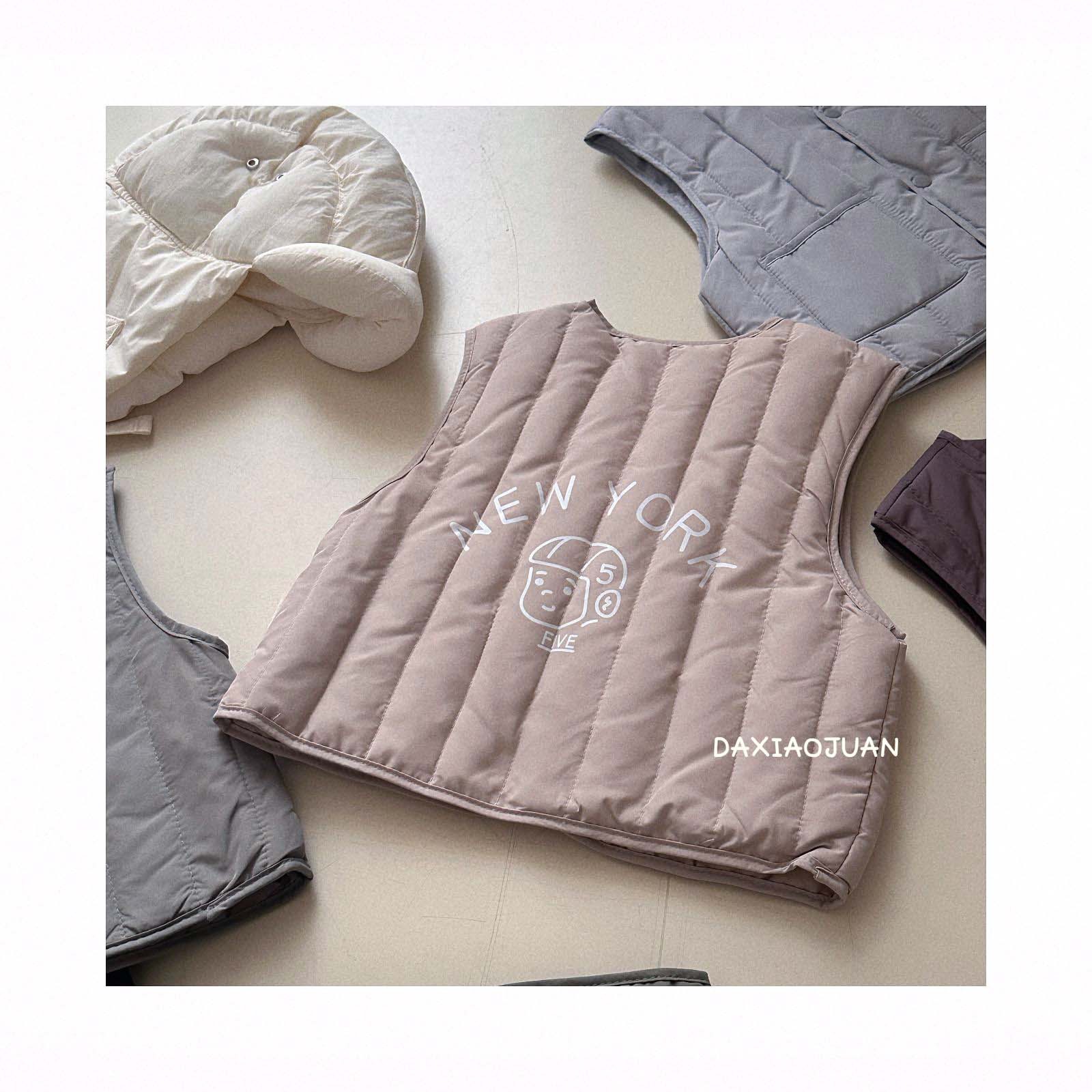 어린이용 다운 조끼, 남아 여아 겨울철 필수 보온 조끼, 단색 세로 줄무늬, 중소형 어린이용, 외투로도 착용 가능